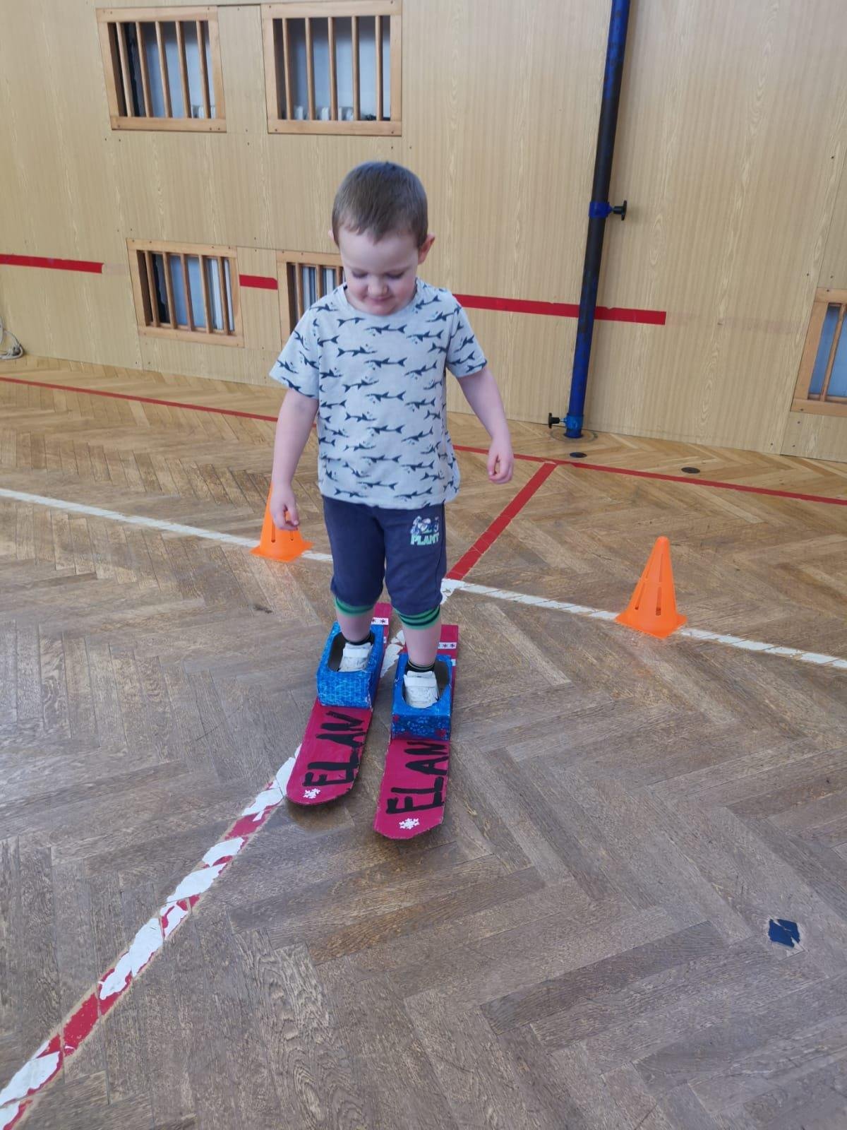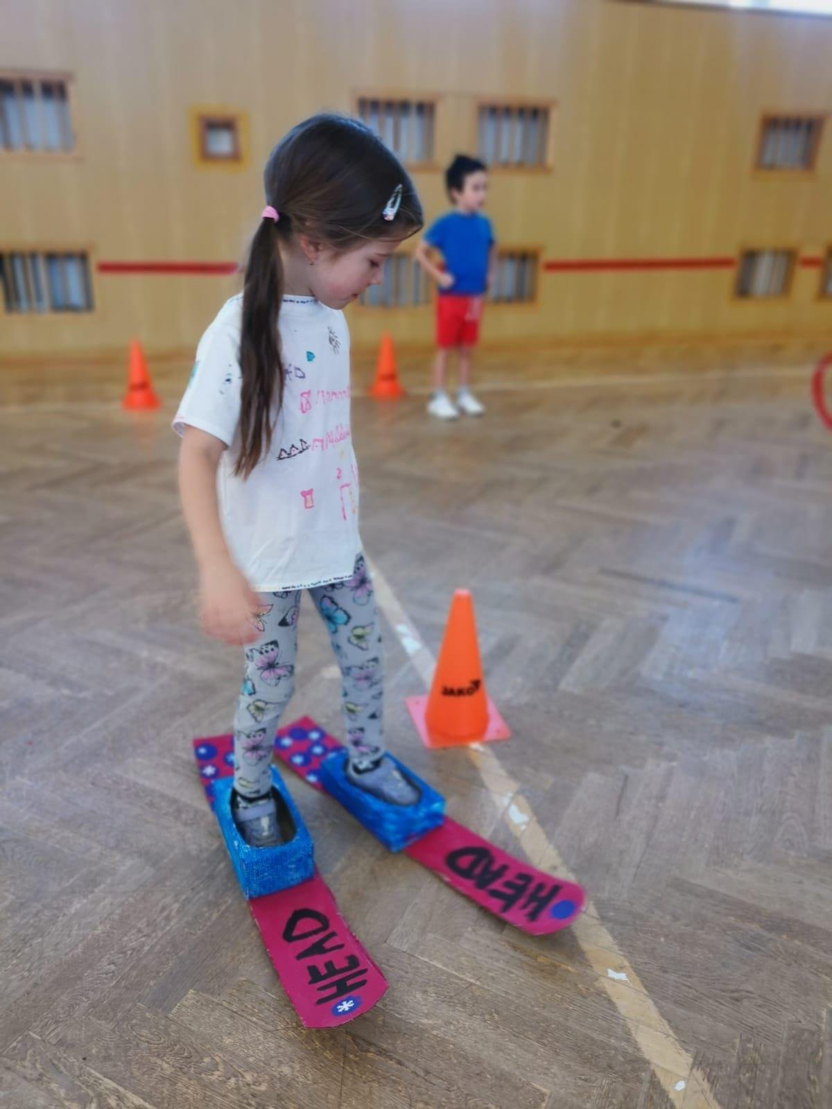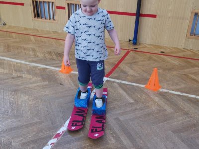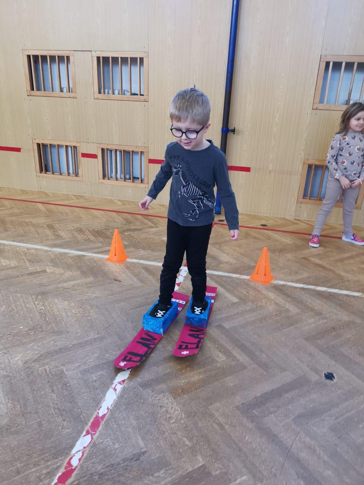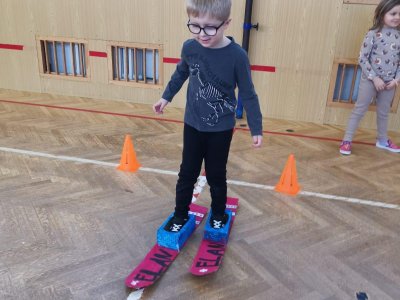 Dnešní cvičení v tělocvičně proběhlo v duchu zimních sportů