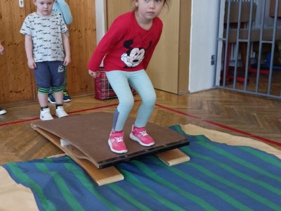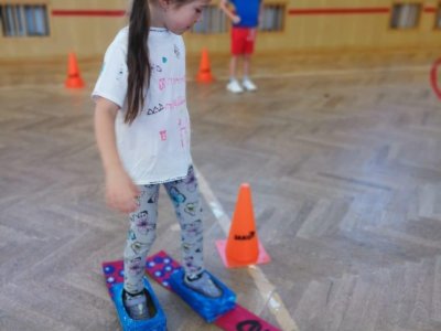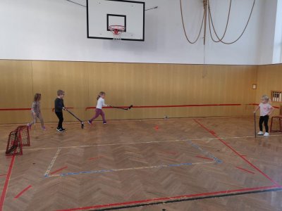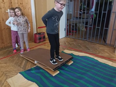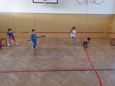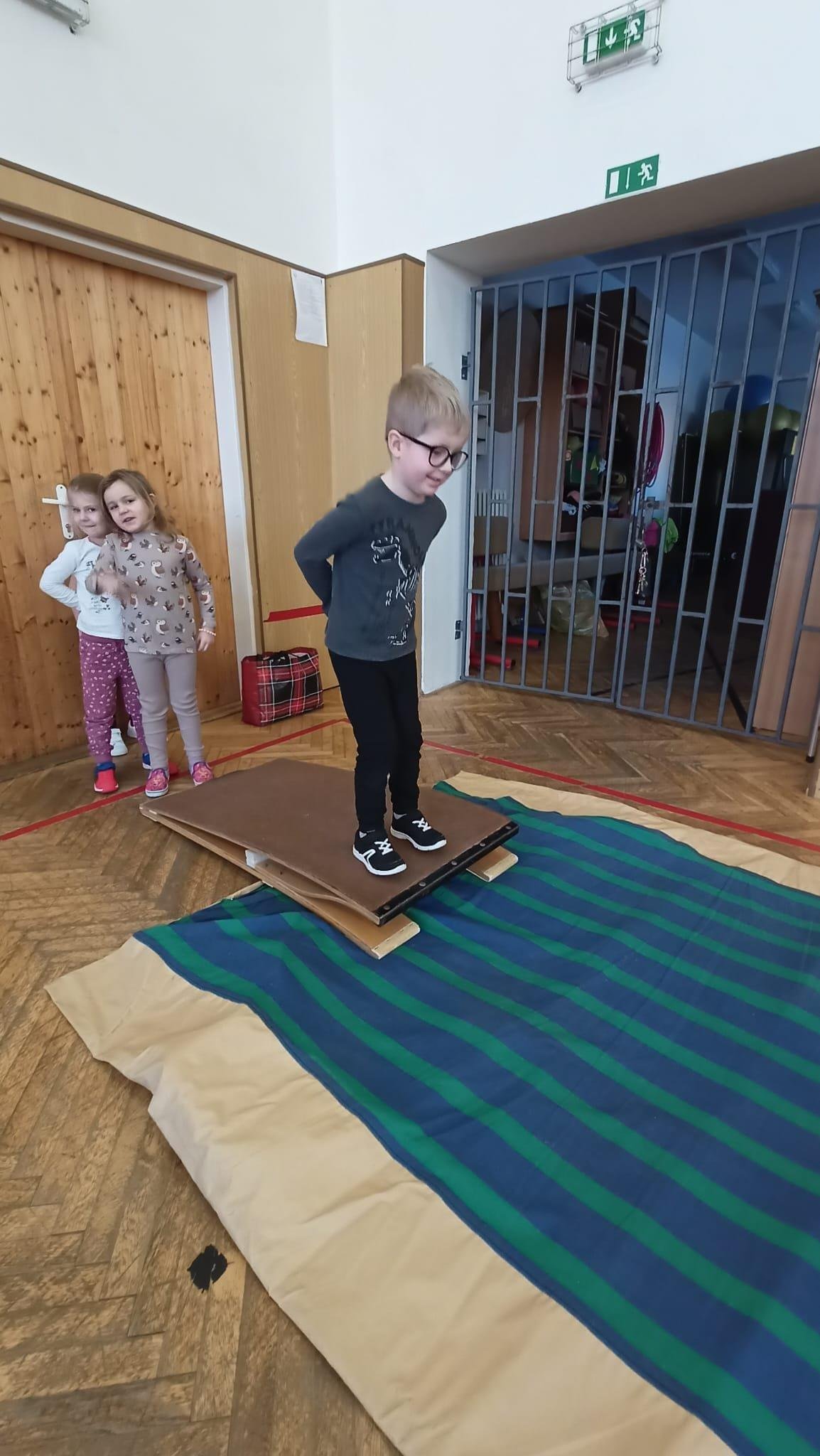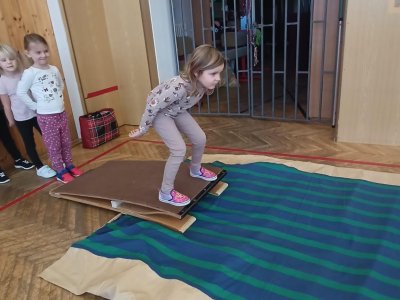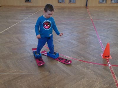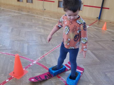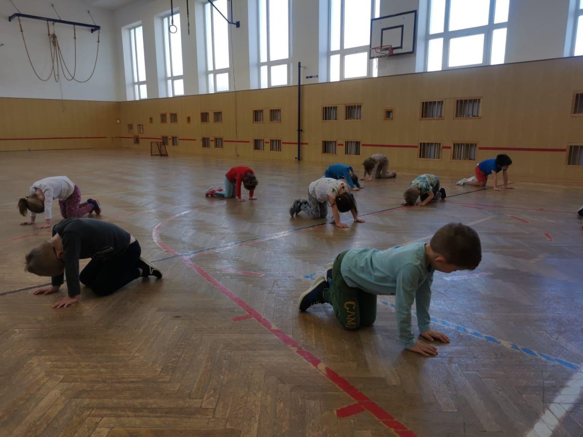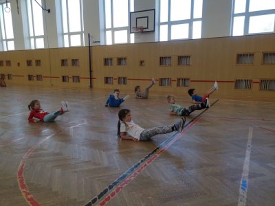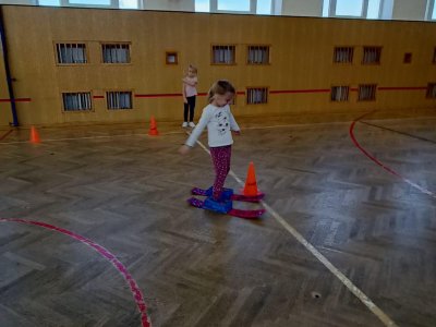 Dnešní cvičení v tělocvičně proběhlo v duchu zimních sportů