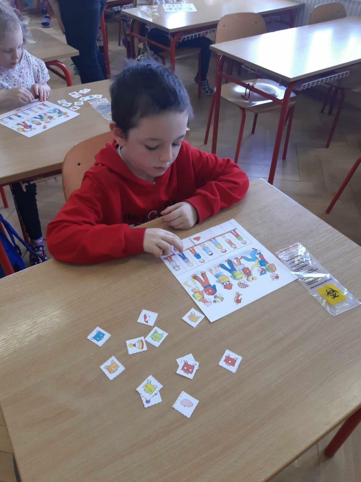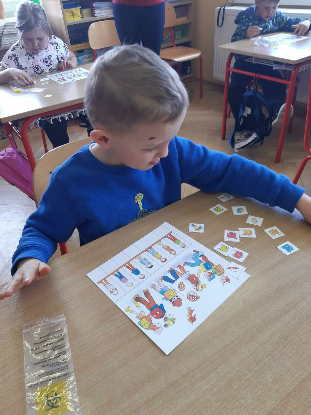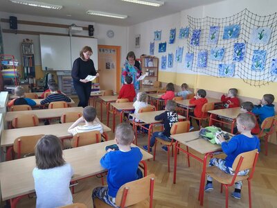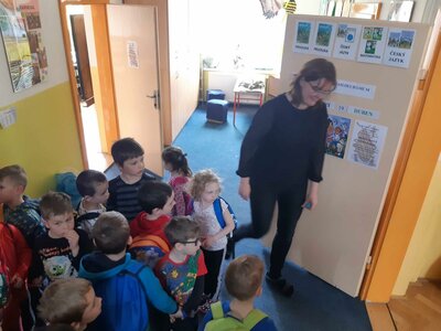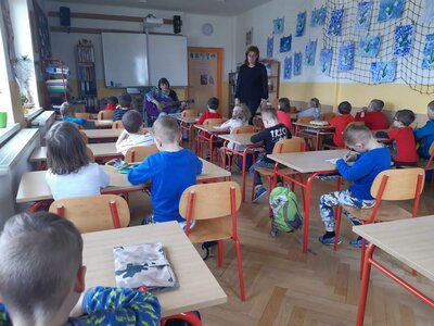 Dnes jsme se byli poprvé podívat na základní školu. Seznámili jsme se s paní učitelkou a paní vychovatelkou budoucich prvňáčků. Zahráli jsme si hry, zkusili první úkoly a zazpívali jsme si. Těšíme se opět za týden...hurá do školy!