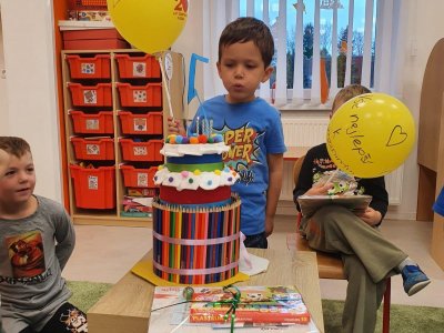 Filípek a Tomášek oslavili narozeniny s kamarády ve školce.