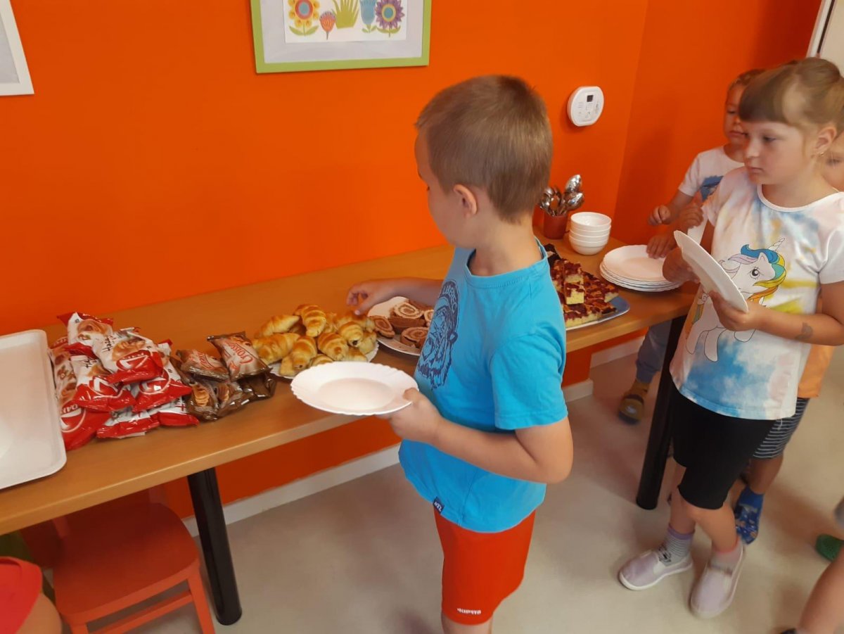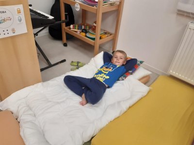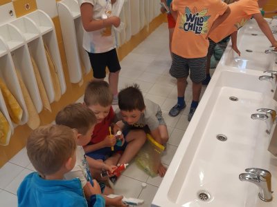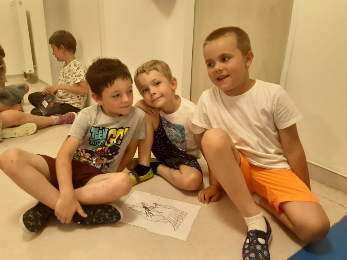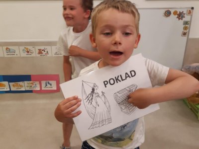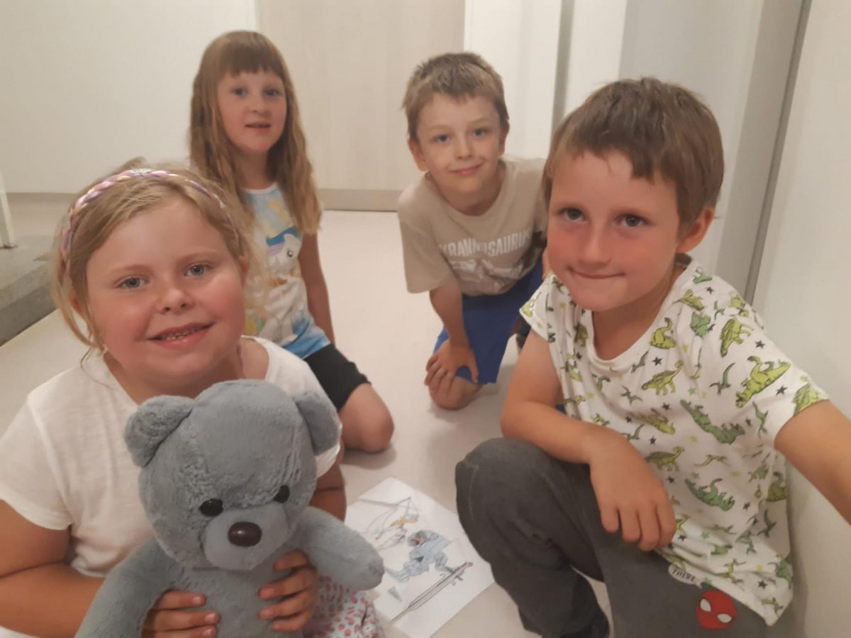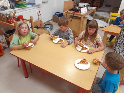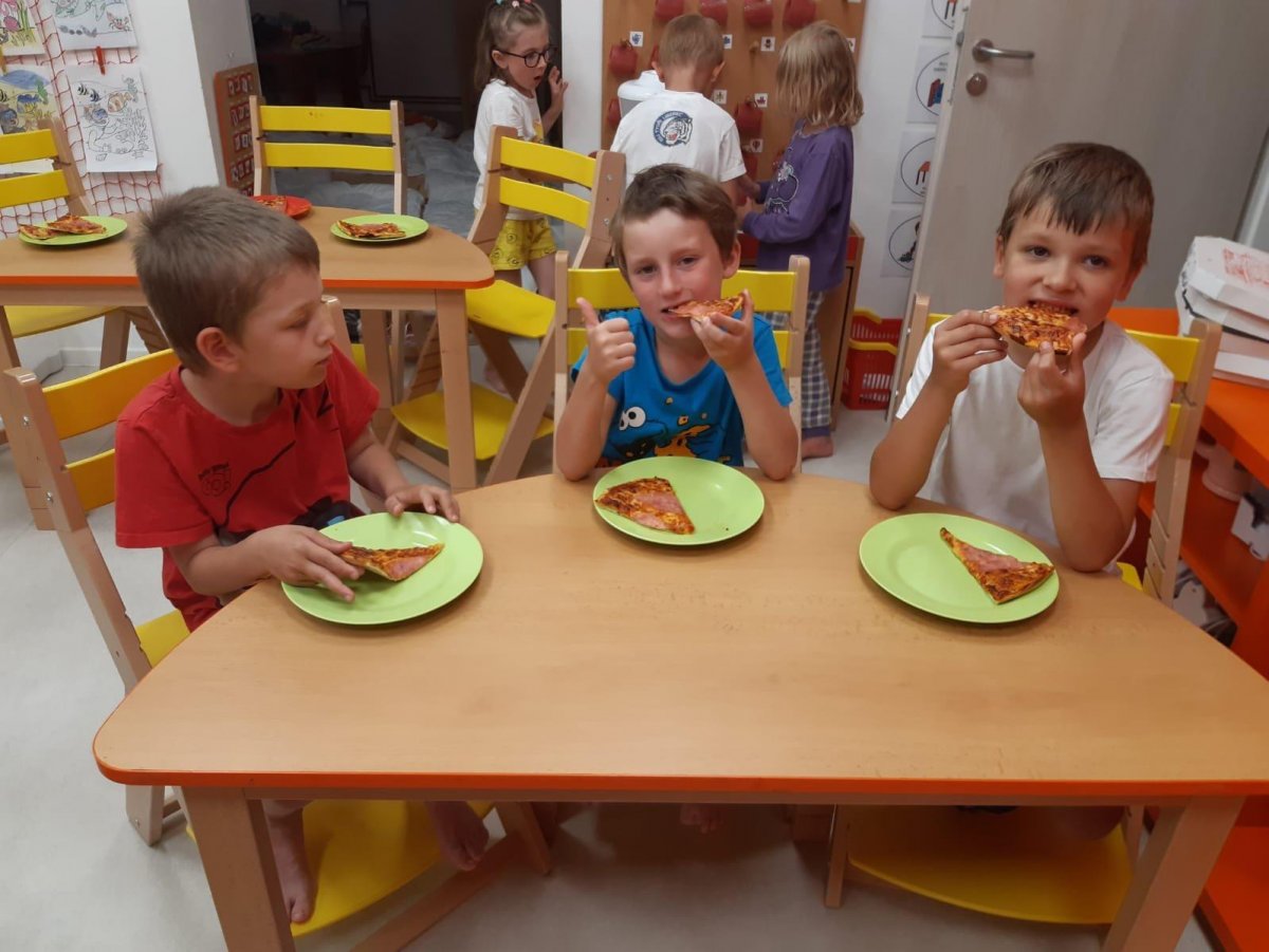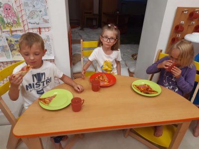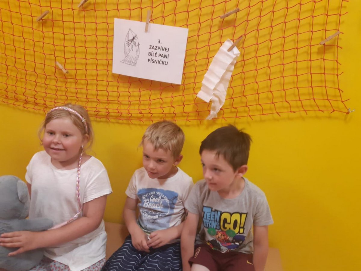 Když odešli rodiče, čekala na děti "Stezka s Bílou paní" - děti plnily úkoly a nakonec našly poklad. K večeři jsme si objednali pizzu a pustili si k tomu "Harryho Pottera".Všechny děti se vyspinkaly do růžova a ráno po vydatné snídani si je odvedli rodiče.