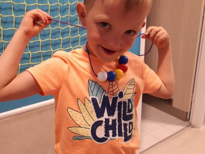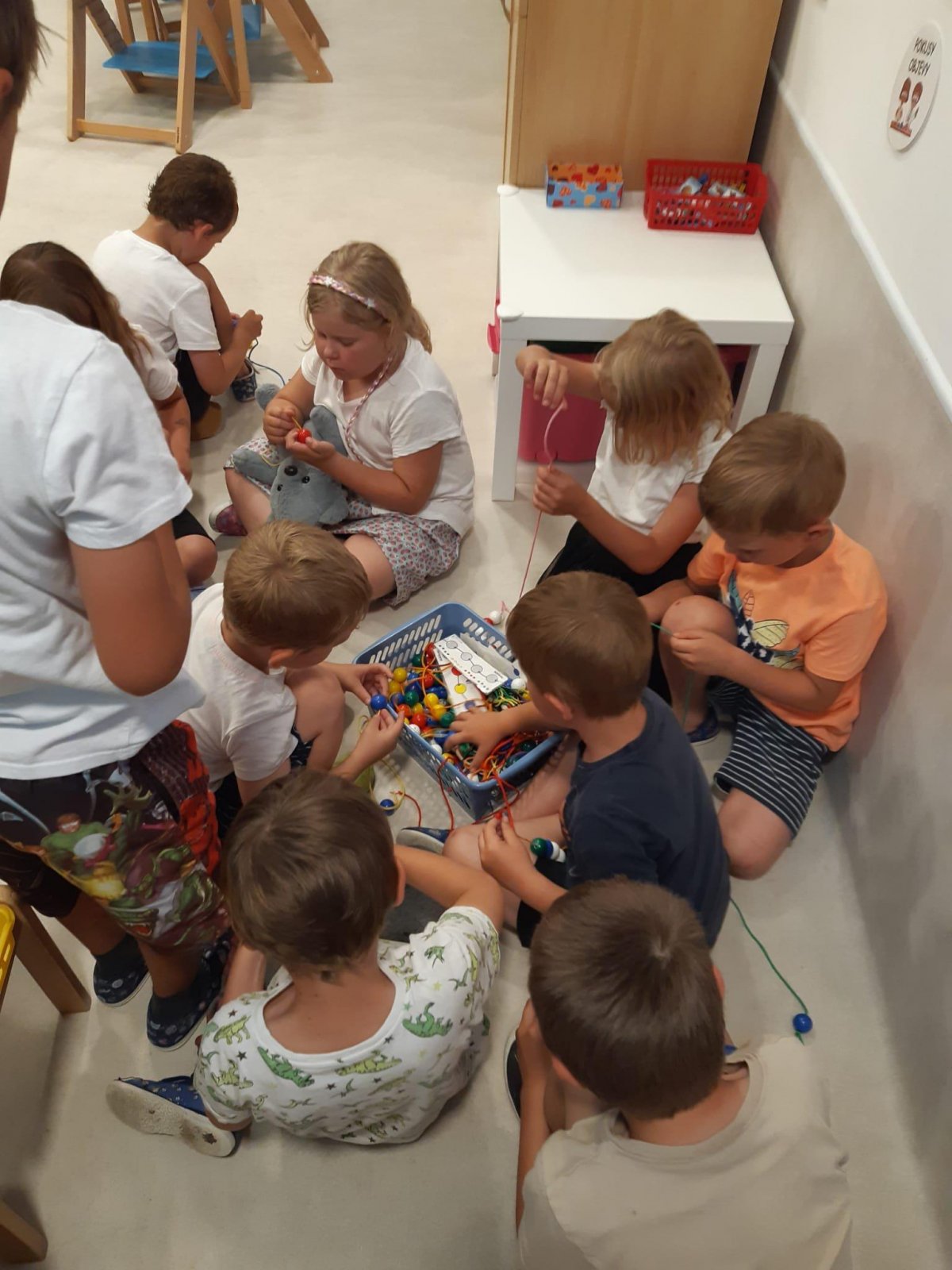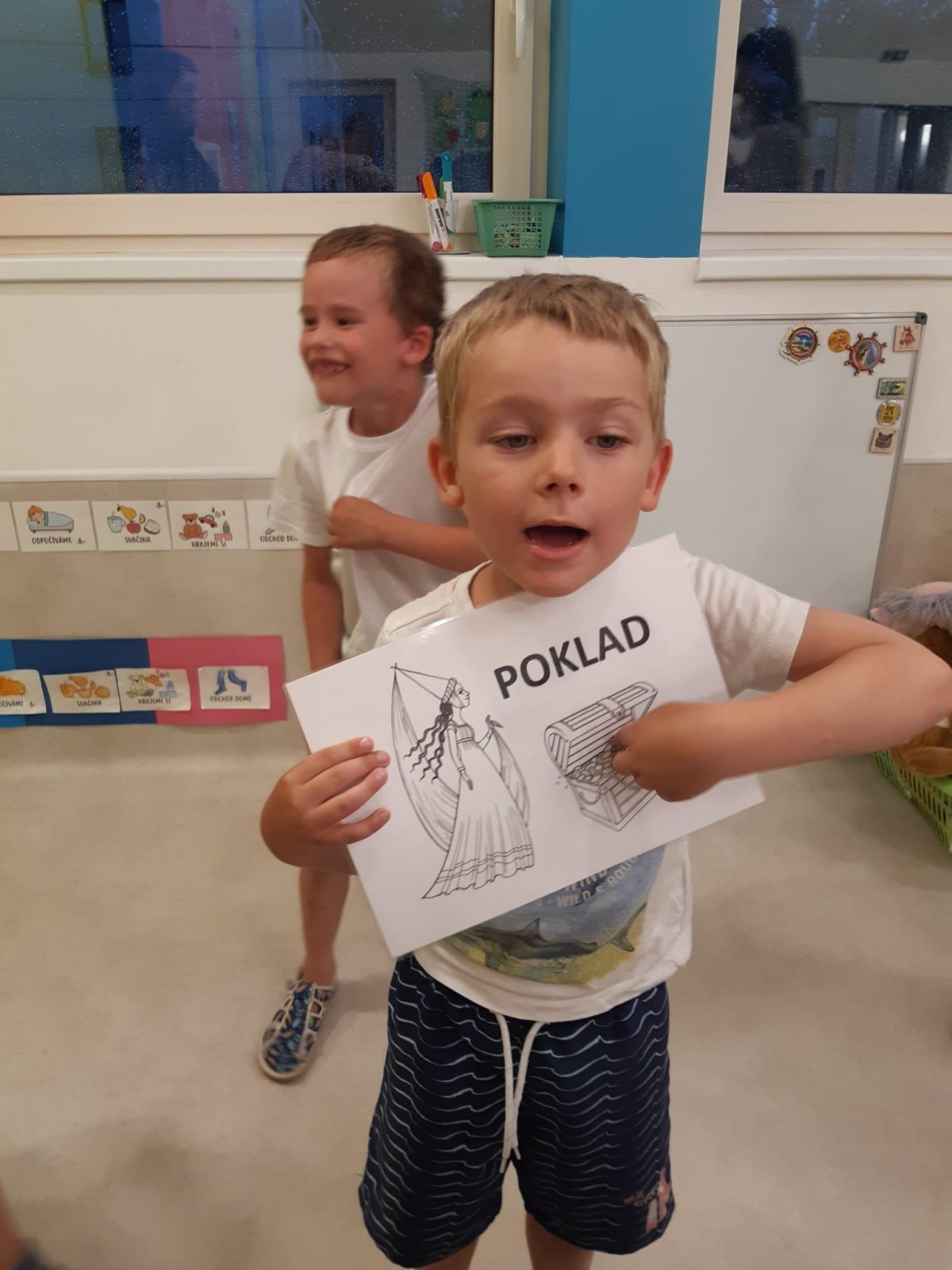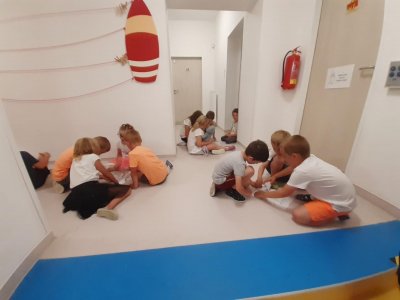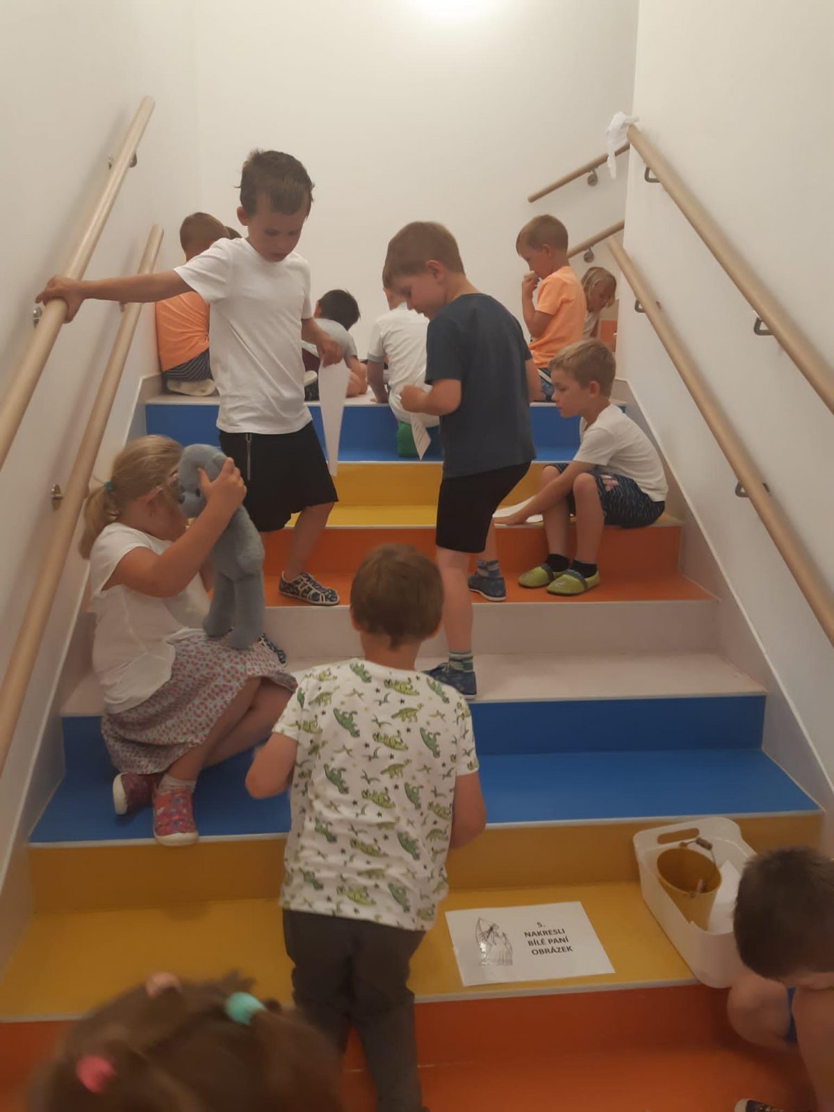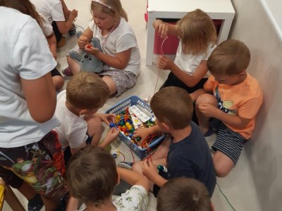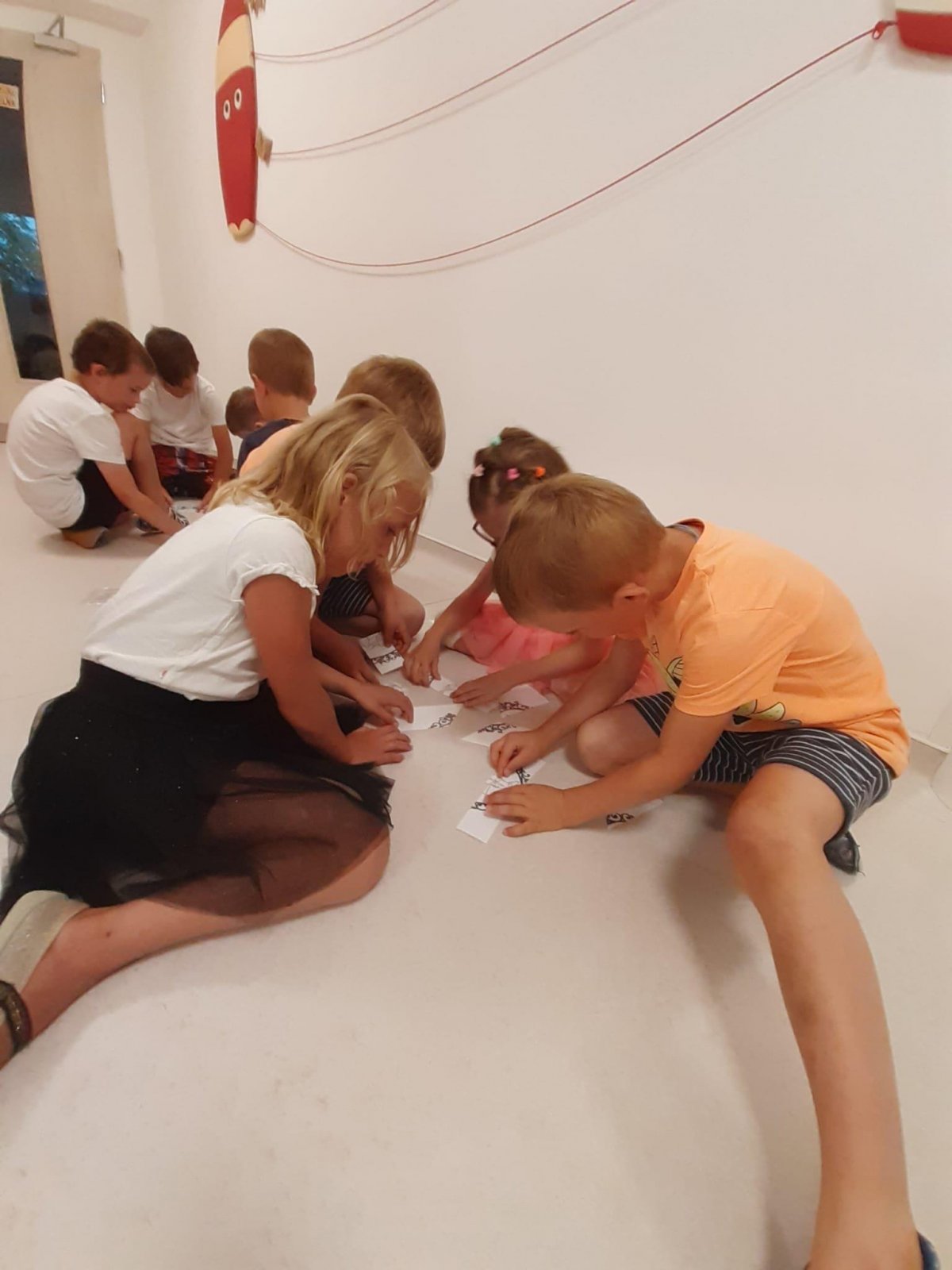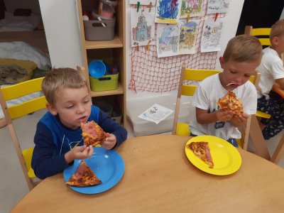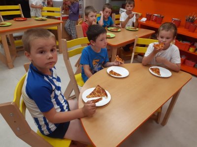 Když odešli rodiče, čekala na děti "Stezka s Bílou paní" - děti plnily úkoly a nakonec našly poklad. K večeři jsme si objednali pizzu a pustili si k tomu "Harryho Pottera".Všechny děti se vyspinkaly do růžova a ráno po vydatné snídani si je odvedli rodiče.