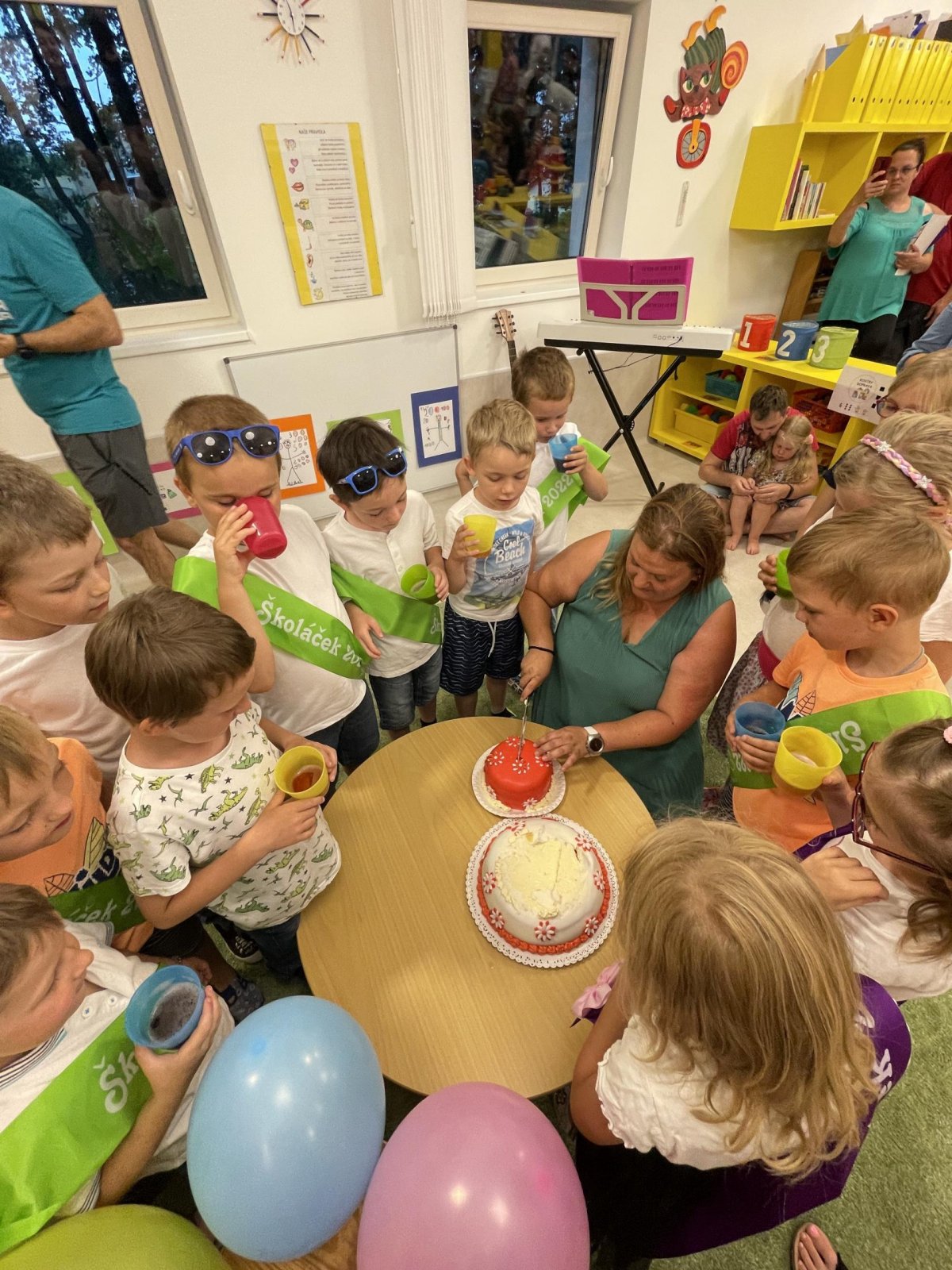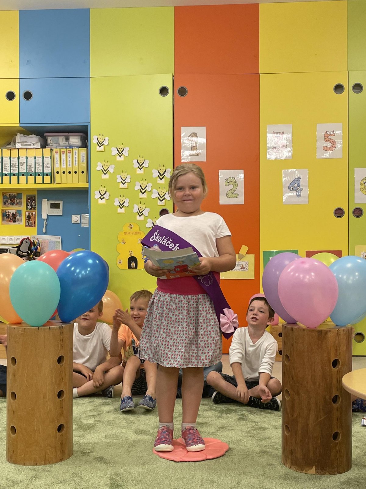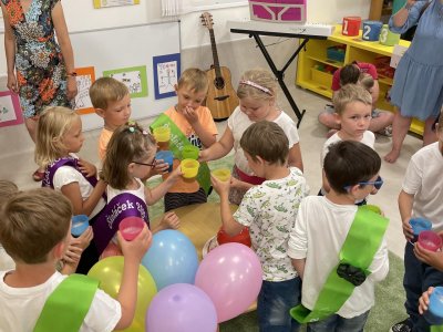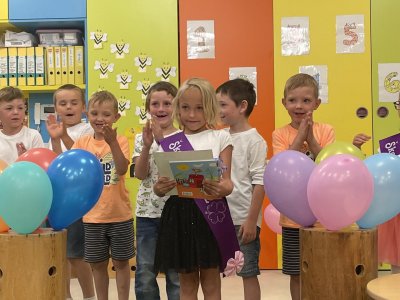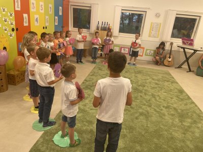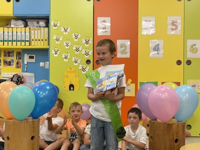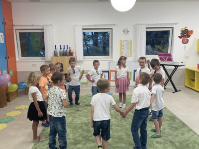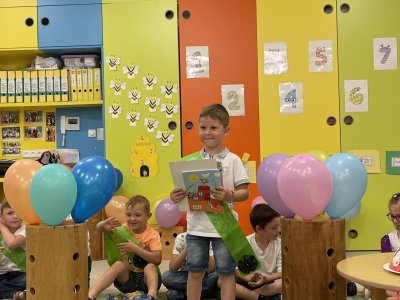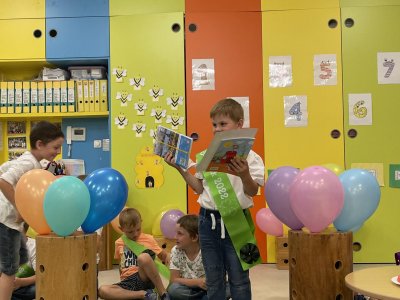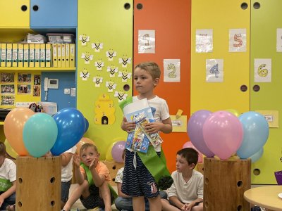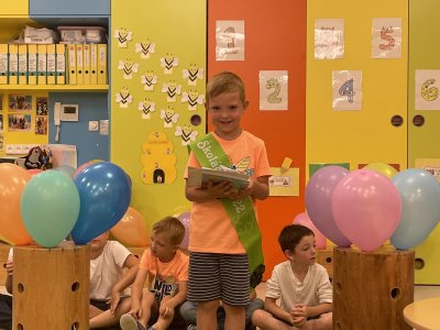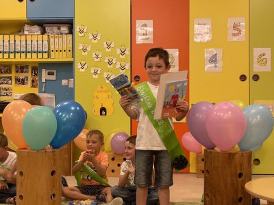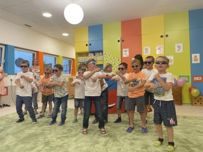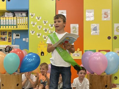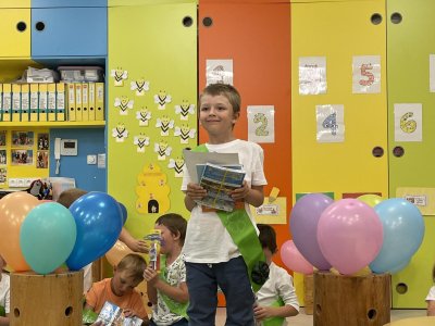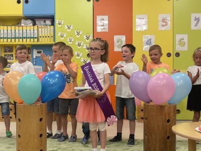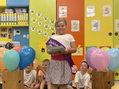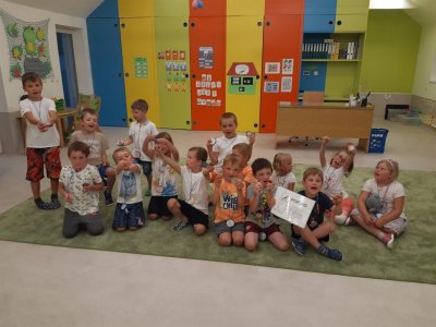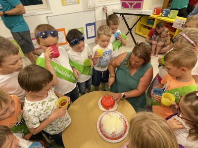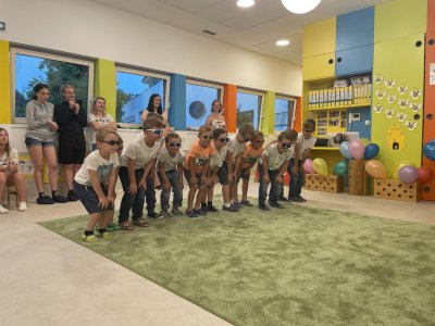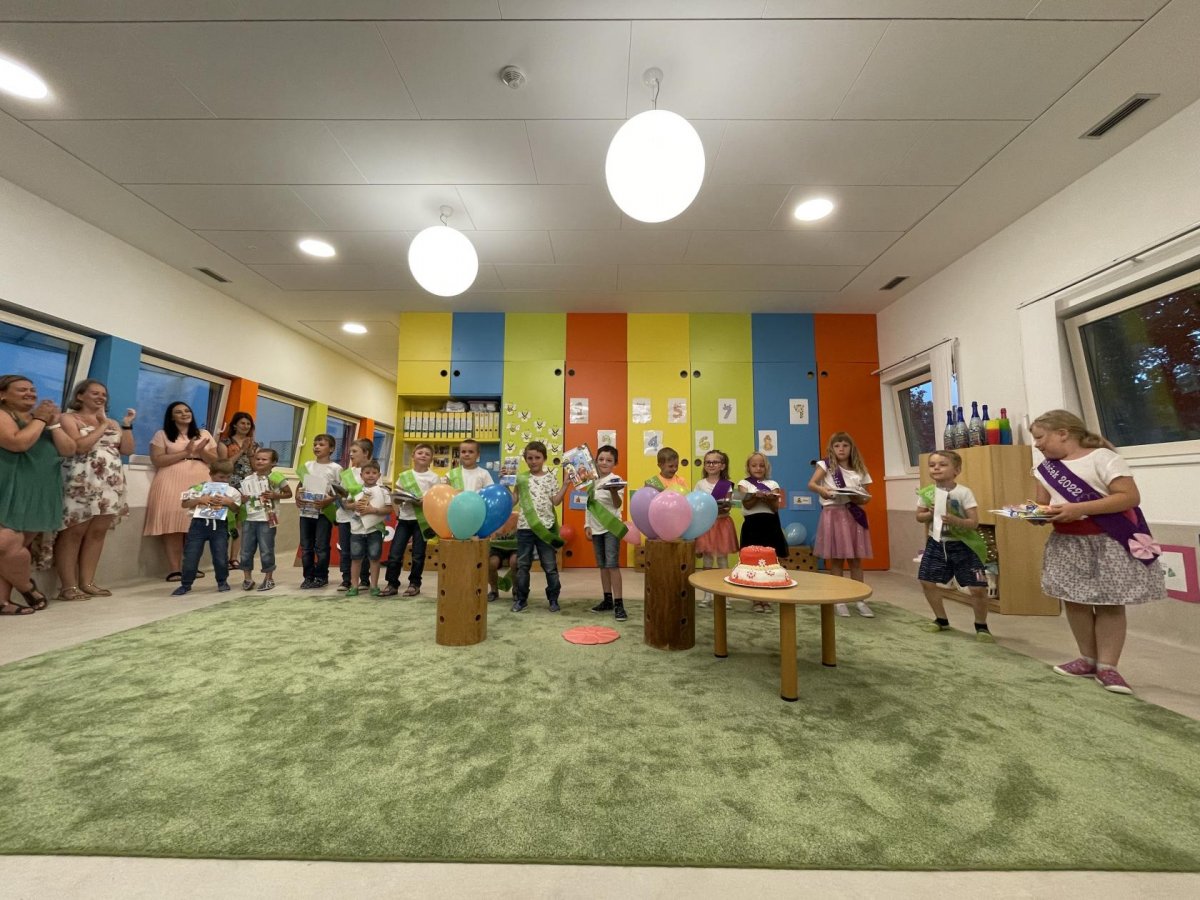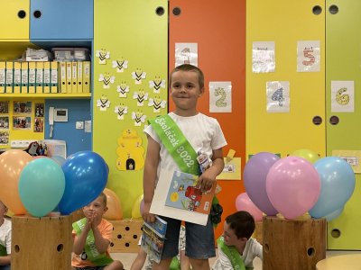 Netradičně v 17 hod. se otevřela školka pro všechny budoucí prvňáčky a jejich rodiče - čekalo nás rozloučení s MŠ. Na úvod děti vystoupily s pásmem básniček, písniček a tanečkem. Poté následovalo šerpování předškoláků, každý si na památku odnesl knihu, šerpu a dárek.