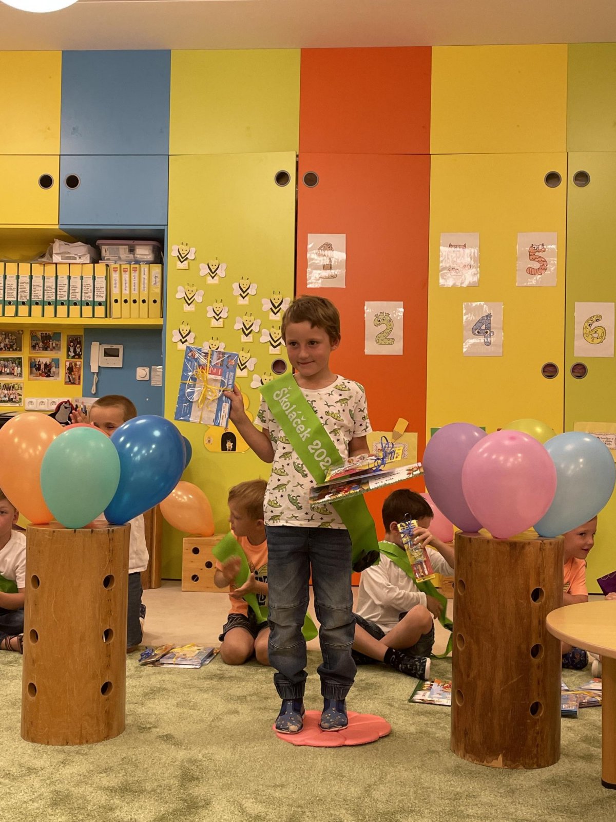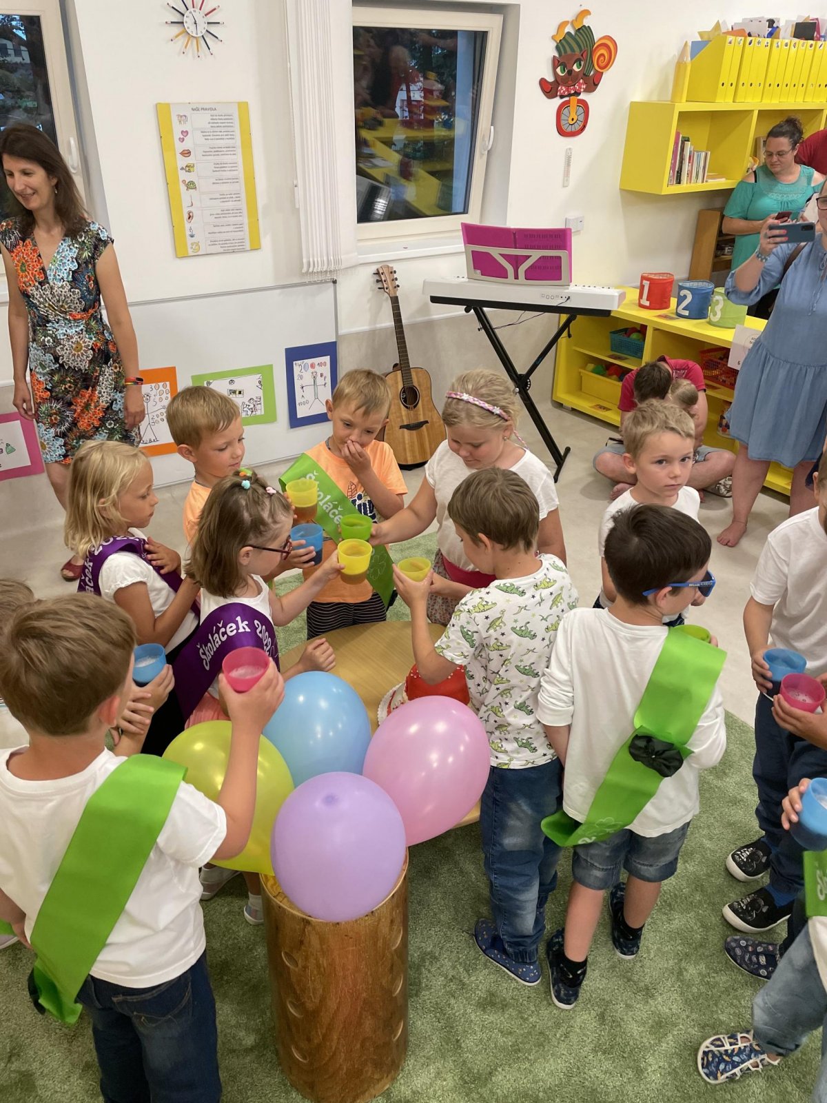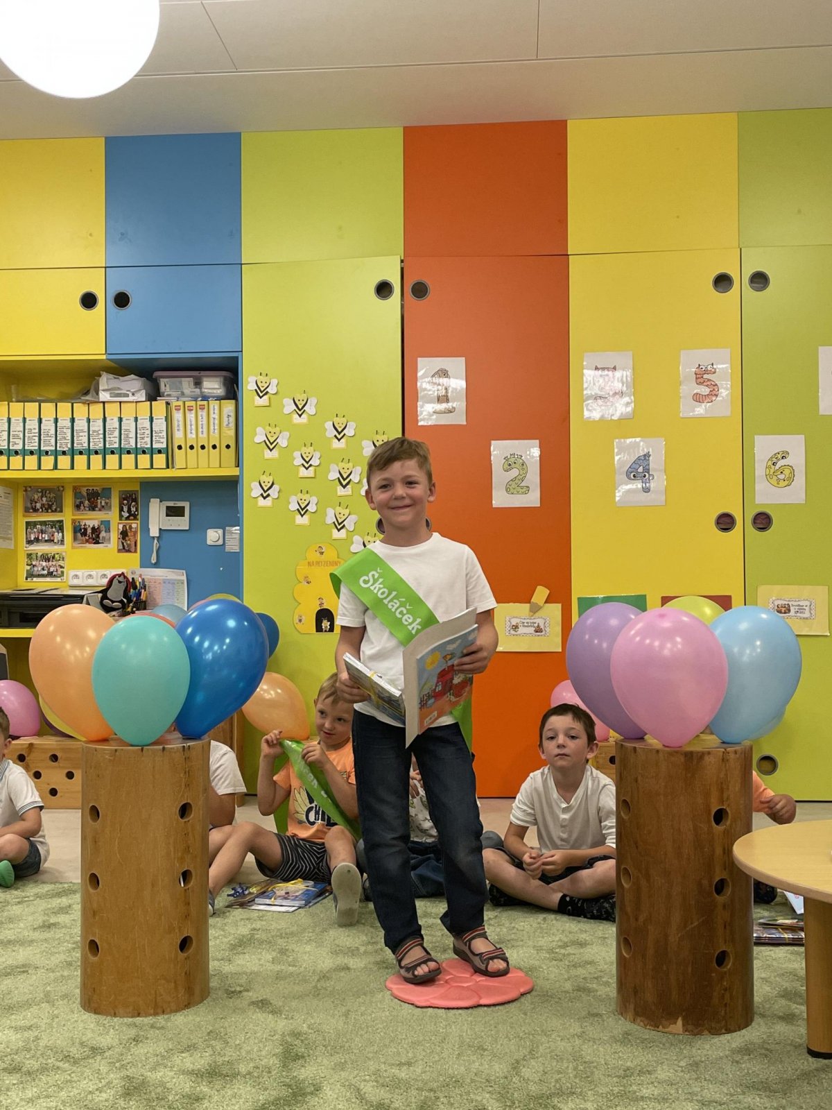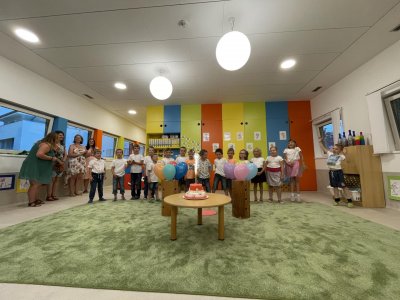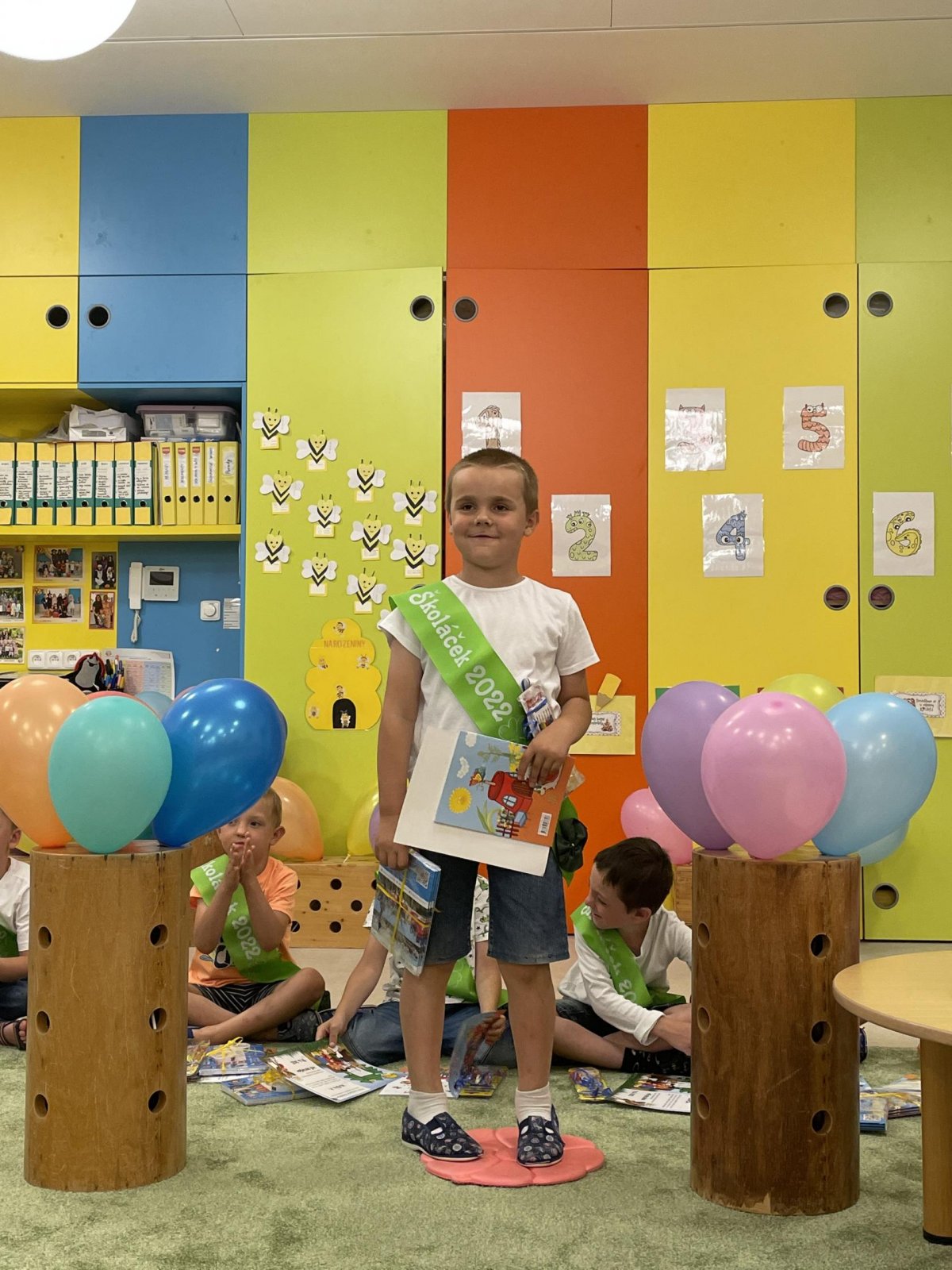 Netradičně v 17 hod. se otevřela školka pro všechny budoucí prvňáčky a jejich rodiče - čekalo nás rozloučení s MŠ. Na úvod děti vystoupily s pásmem básniček, písniček a tanečkem. Poté následovalo šerpování předškoláků, každý si na památku odnesl knihu, šerpu a dárek.