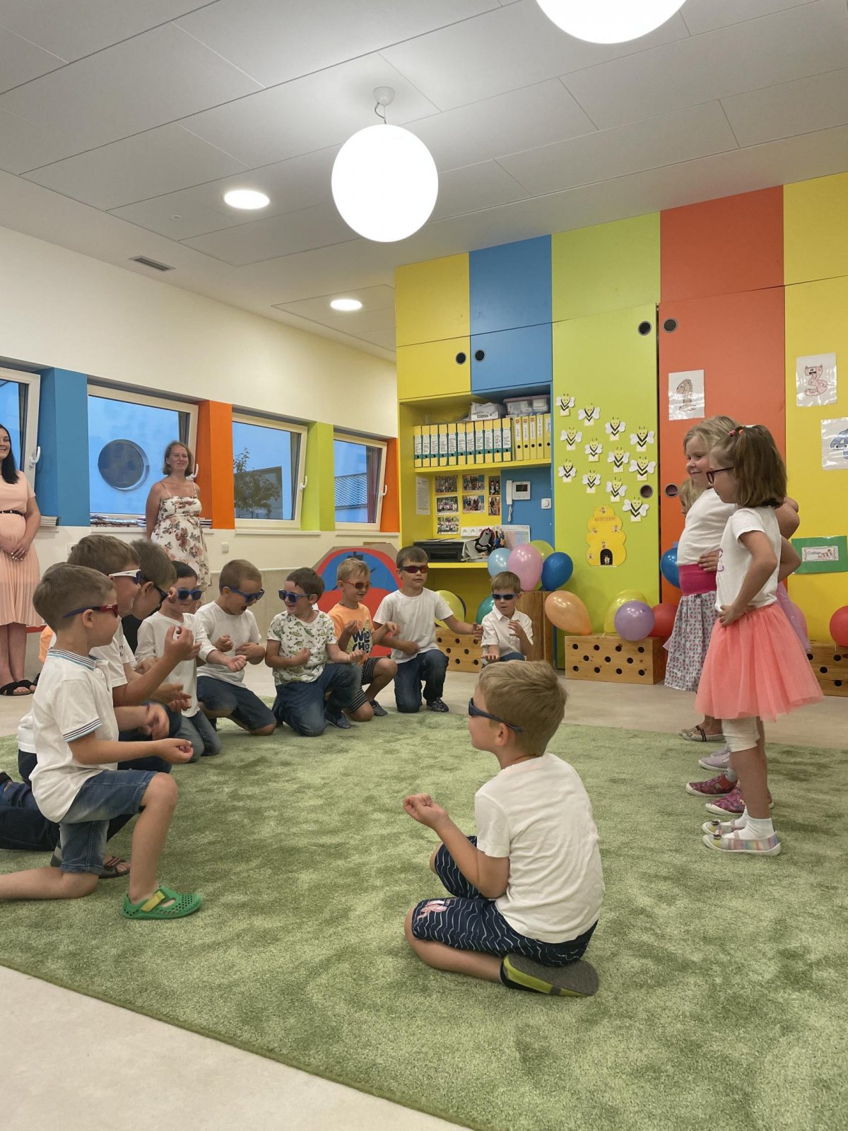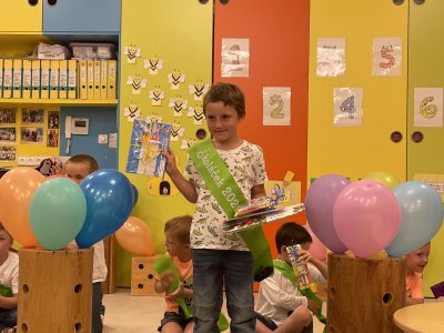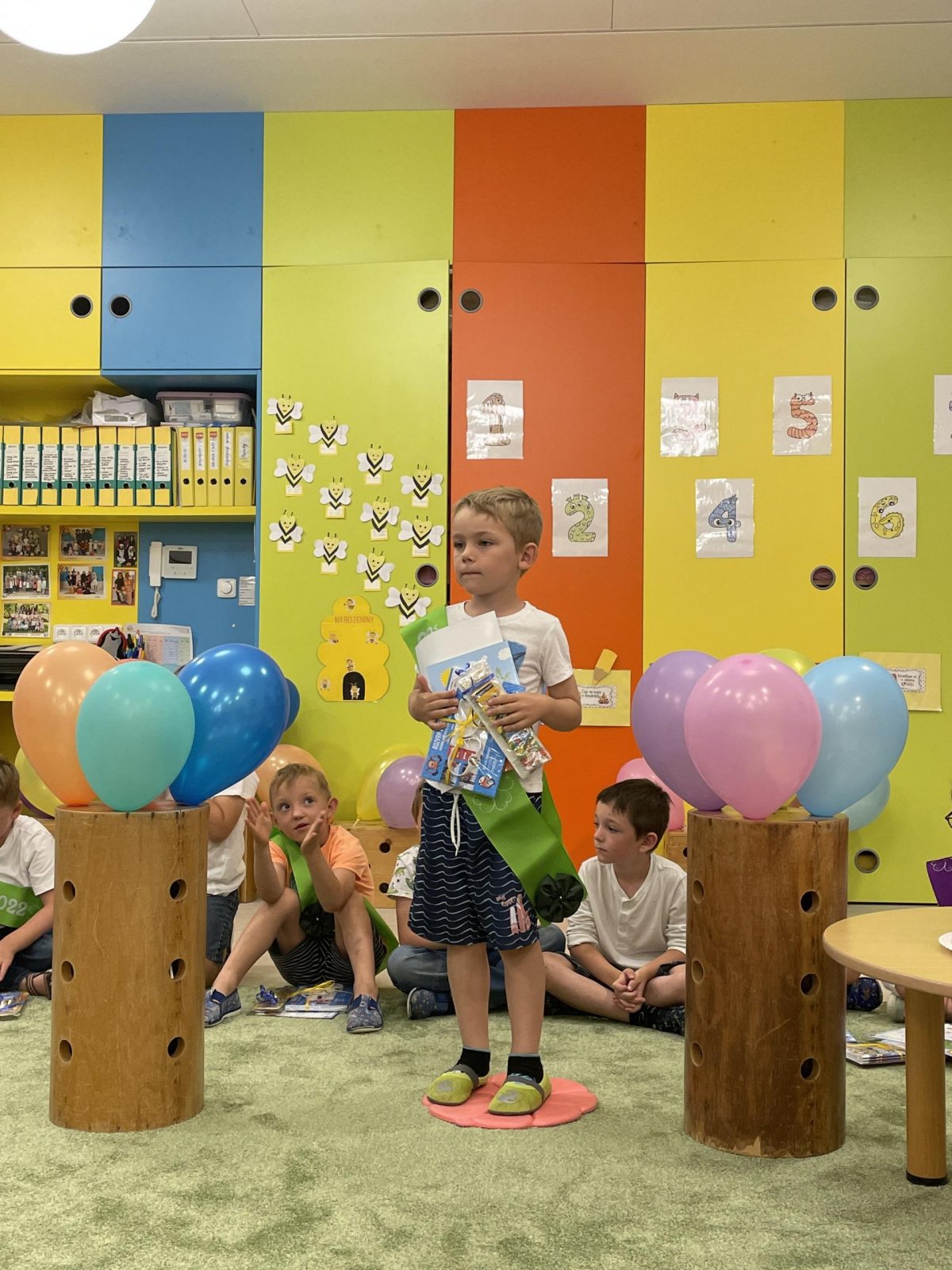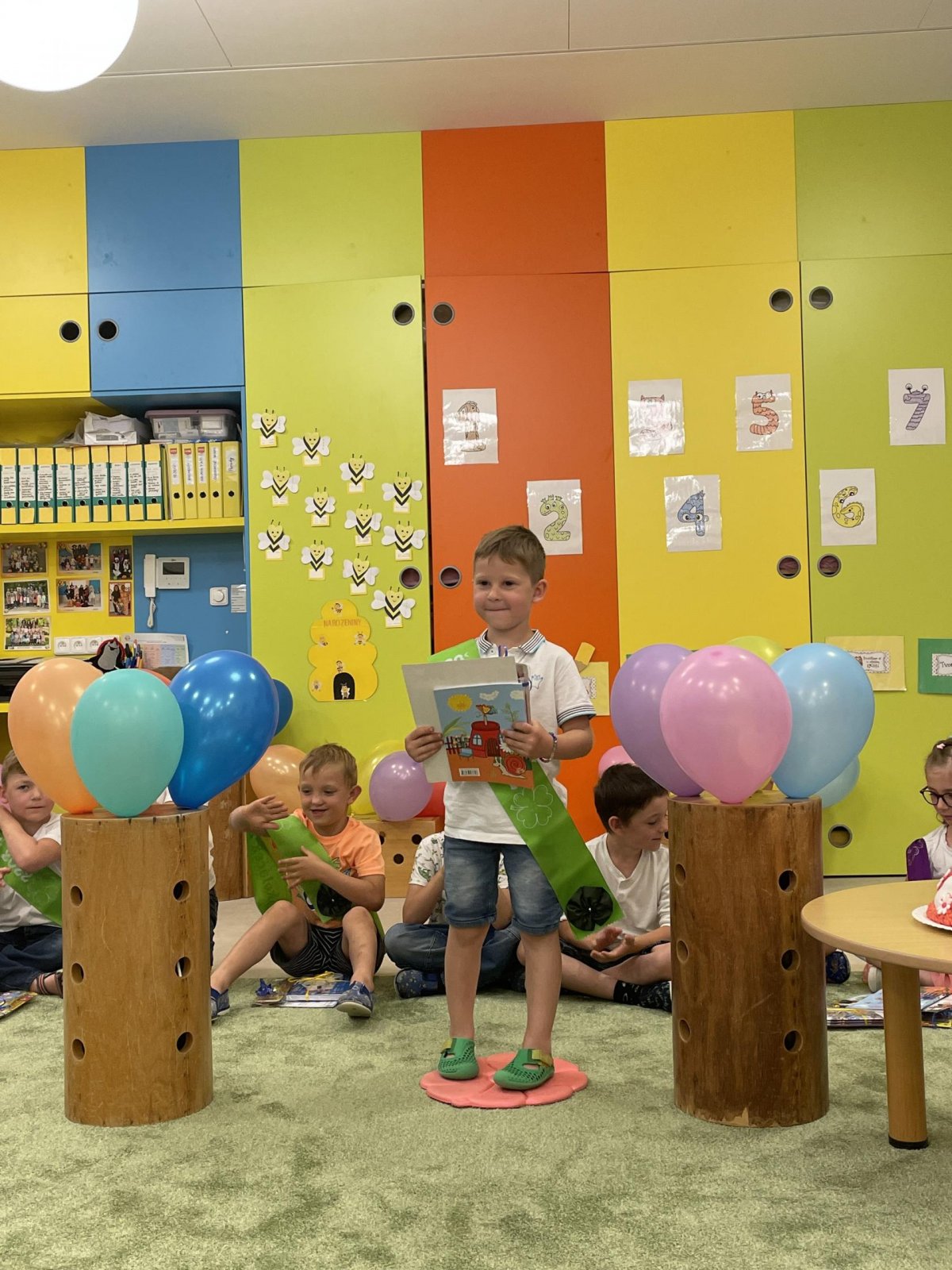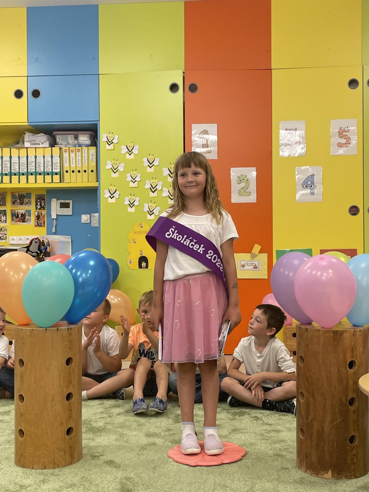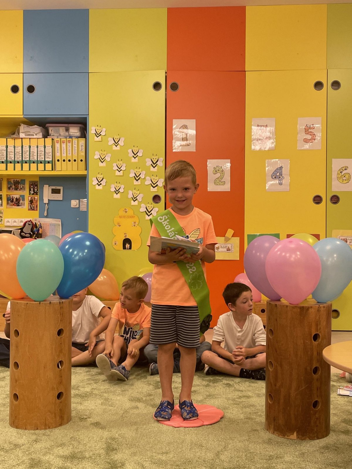 Netradičně v 17 hod. se otevřela školka pro všechny budoucí prvňáčky a jejich rodiče - čekalo nás rozloučení s MŠ. Na úvod děti vystoupily s pásmem básniček, písniček a tanečkem. Poté následovalo šerpování předškoláků, každý si na památku odnesl knihu, šerpu a dárek.