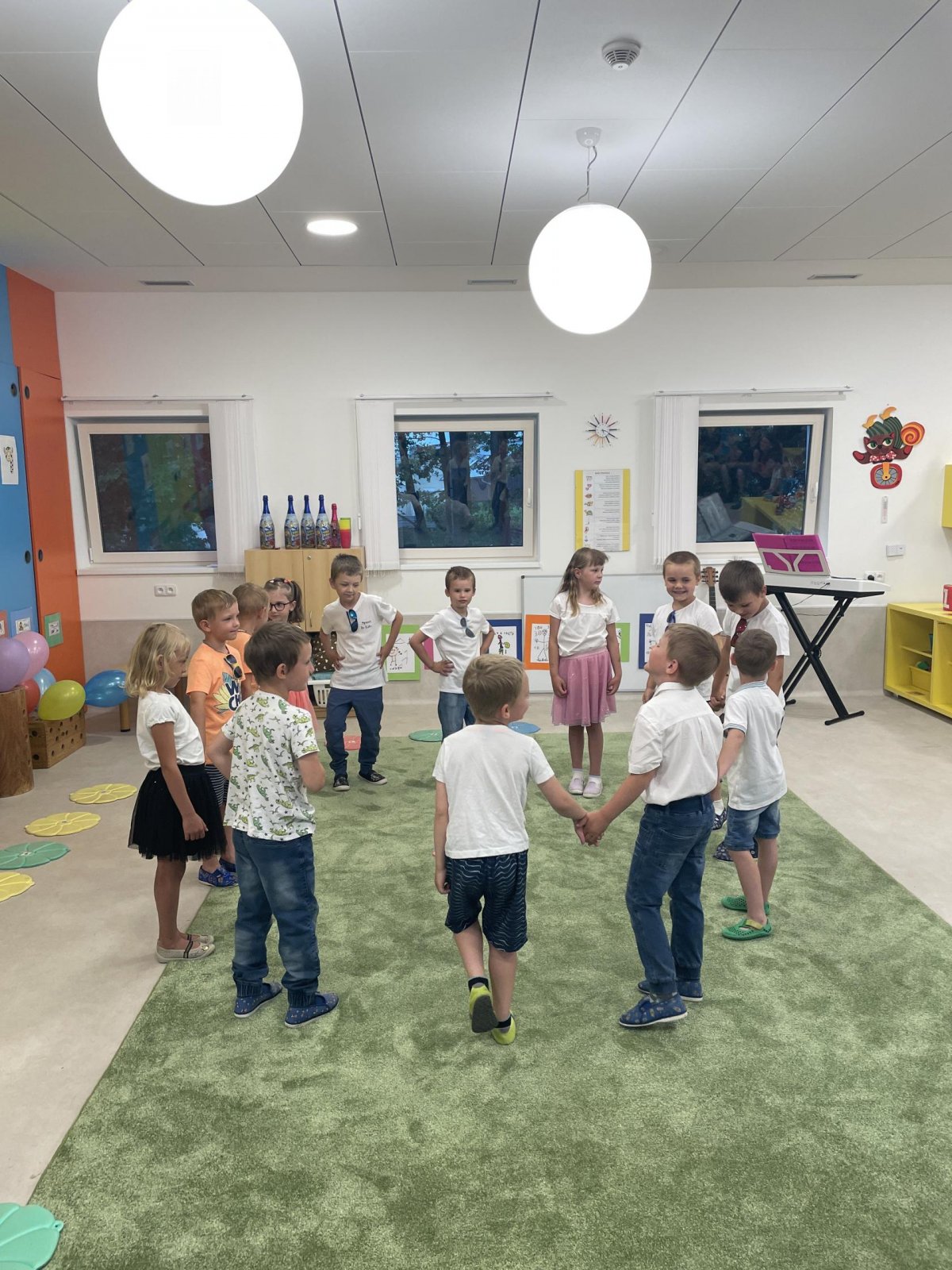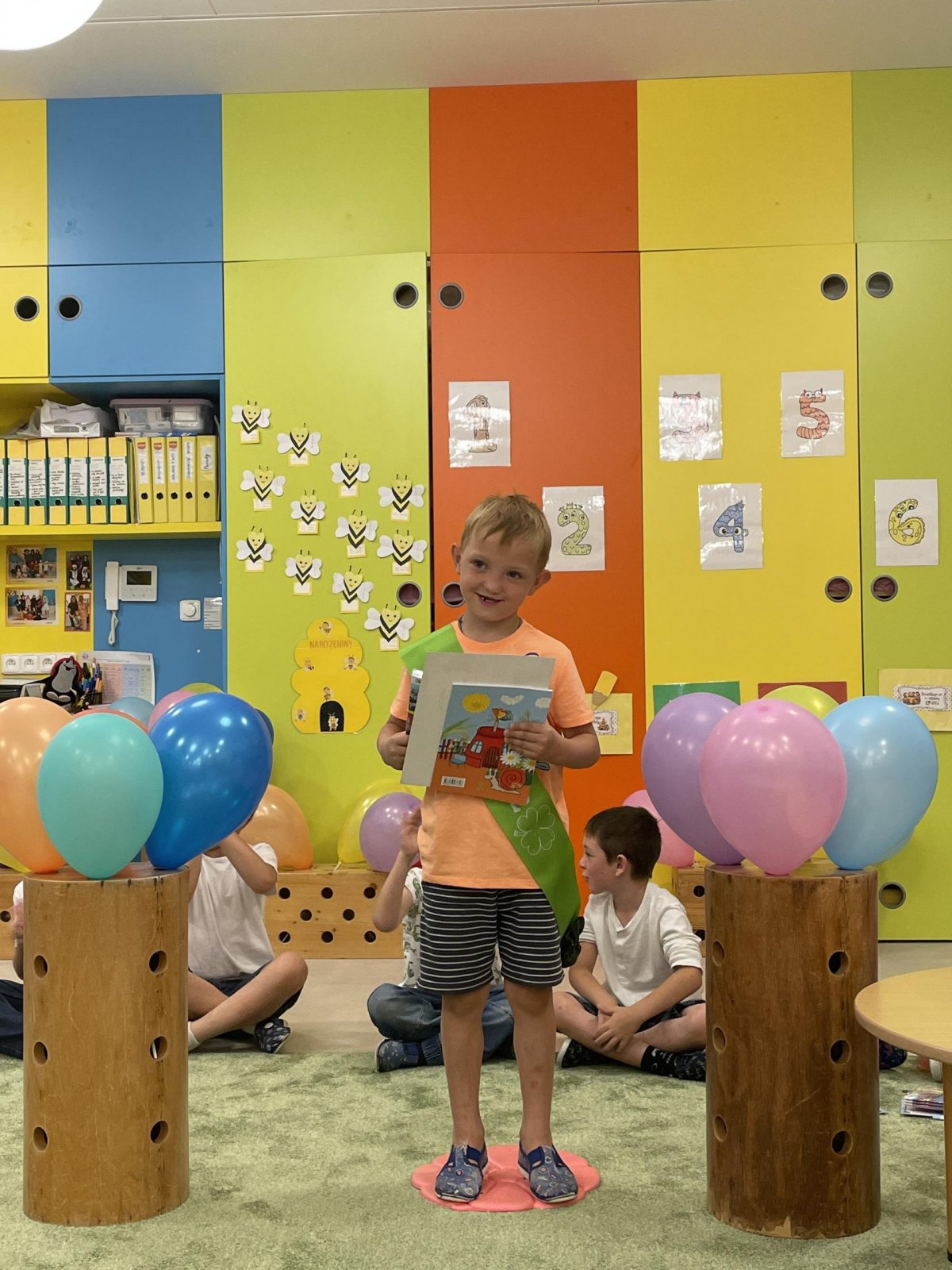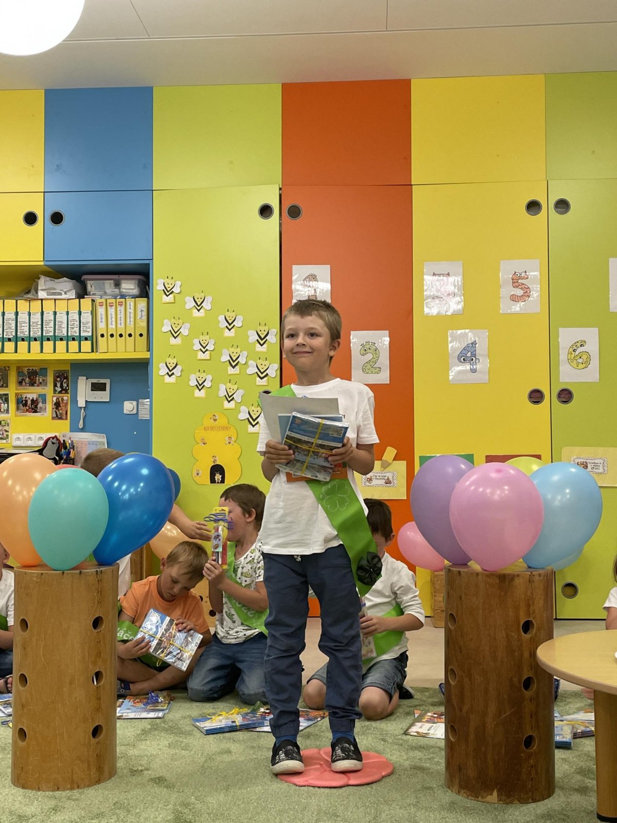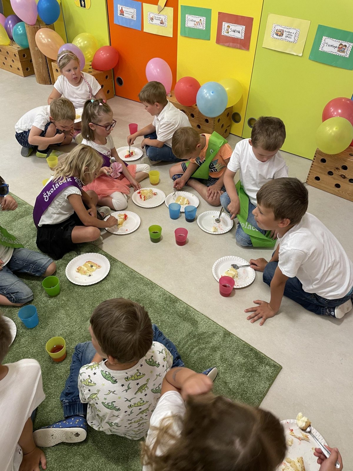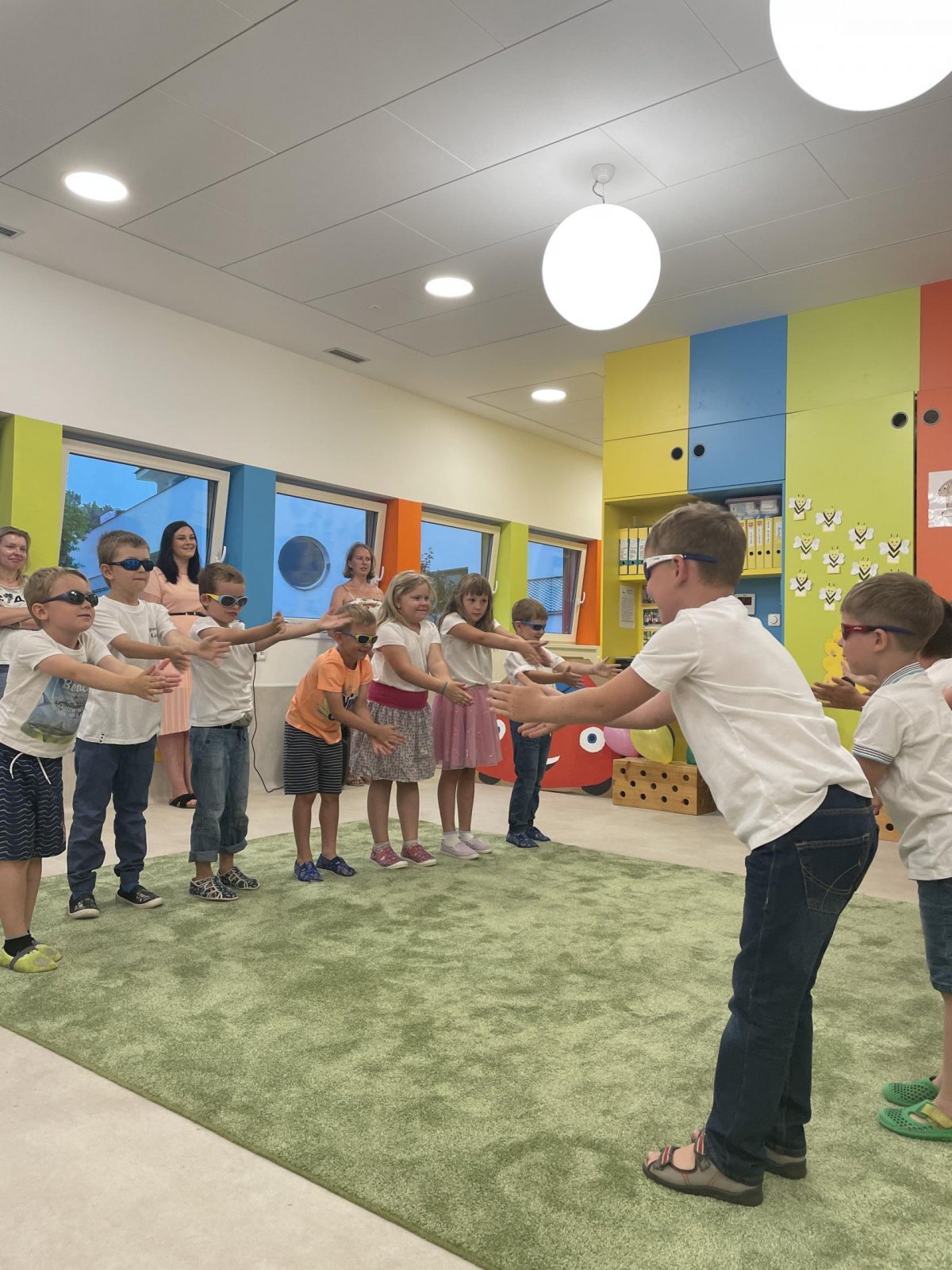 Netradičně v 17 hod. se otevřela školka pro všechny budoucí prvňáčky a jejich rodiče - čekalo nás rozloučení s MŠ. Na úvod děti vystoupily s pásmem básniček, písniček a tanečkem. Poté následovalo šerpování předškoláků, každý si na památku odnesl knihu, šerpu a dárek.