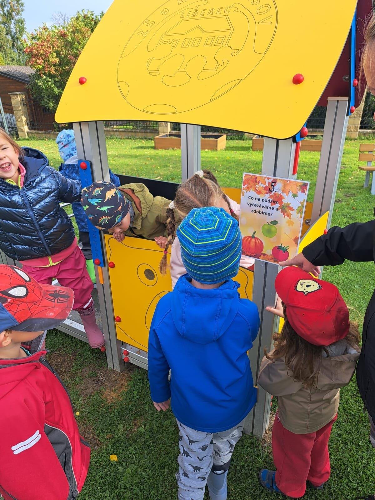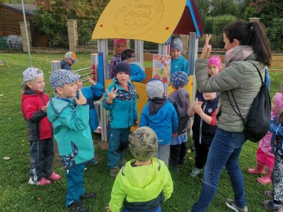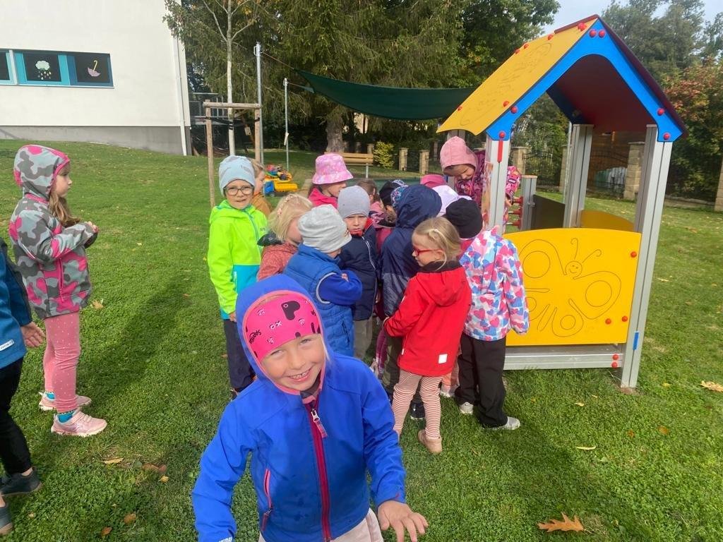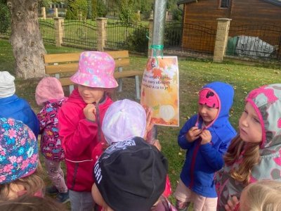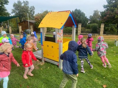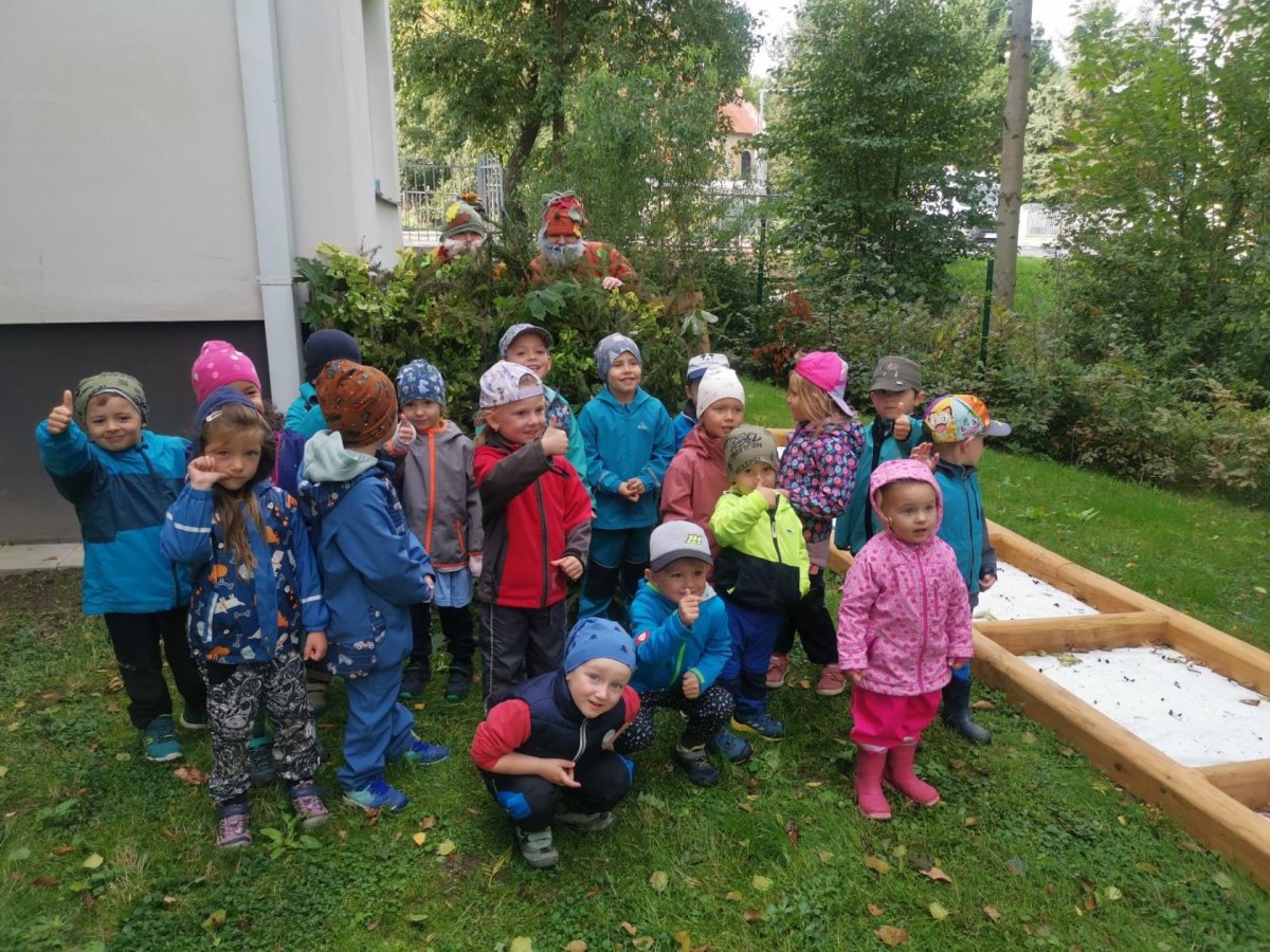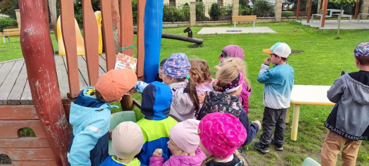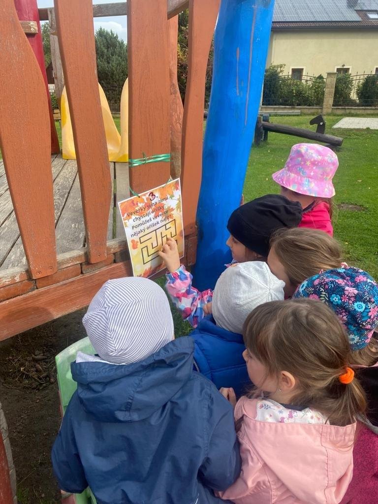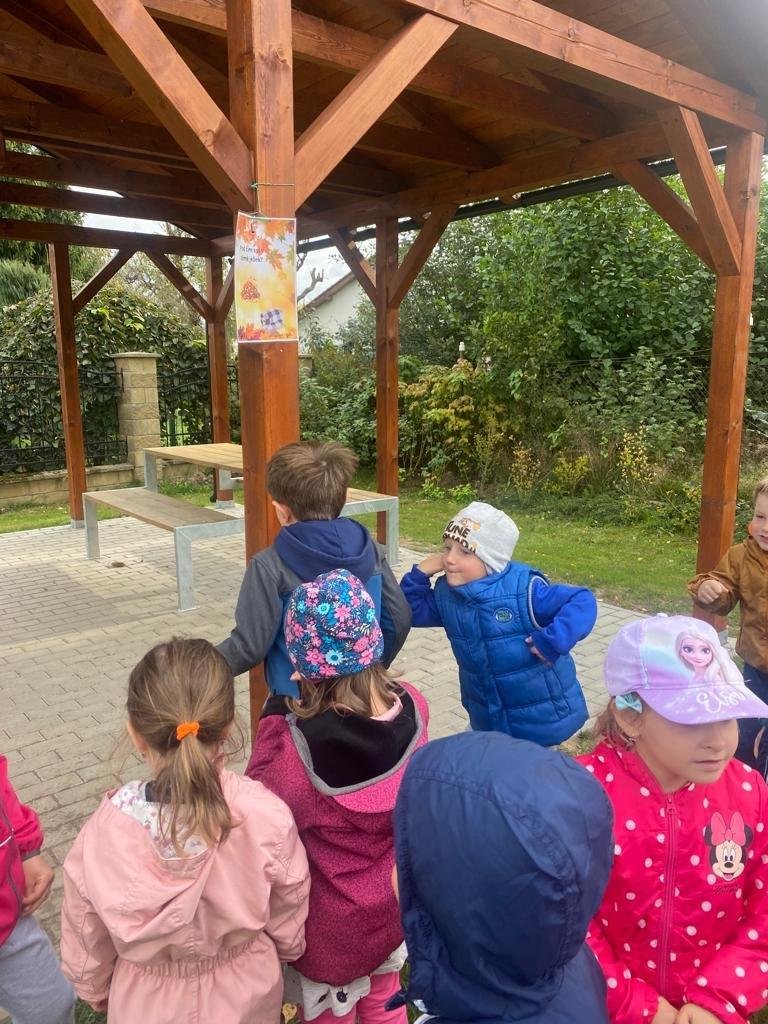Dnes jsme s dětmi vítali podzim. Na zahradě pro nás byla připravena stezka s úkoly. Po jejich splnění jsme našli domeček se skřítky Podzimníčky. Za podzimní písničku či básničku nás odměnili.