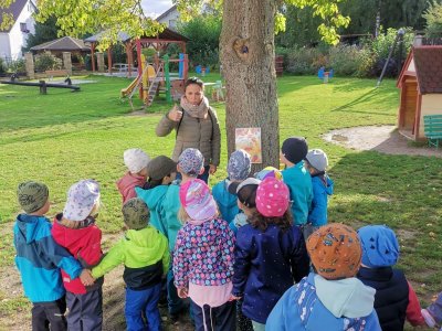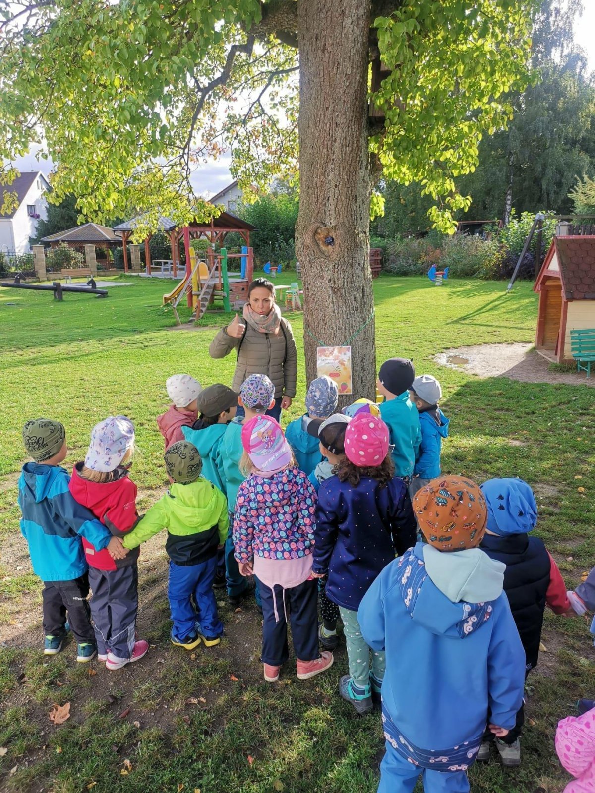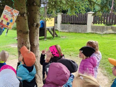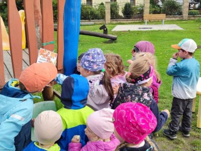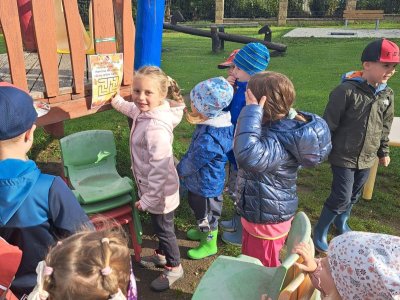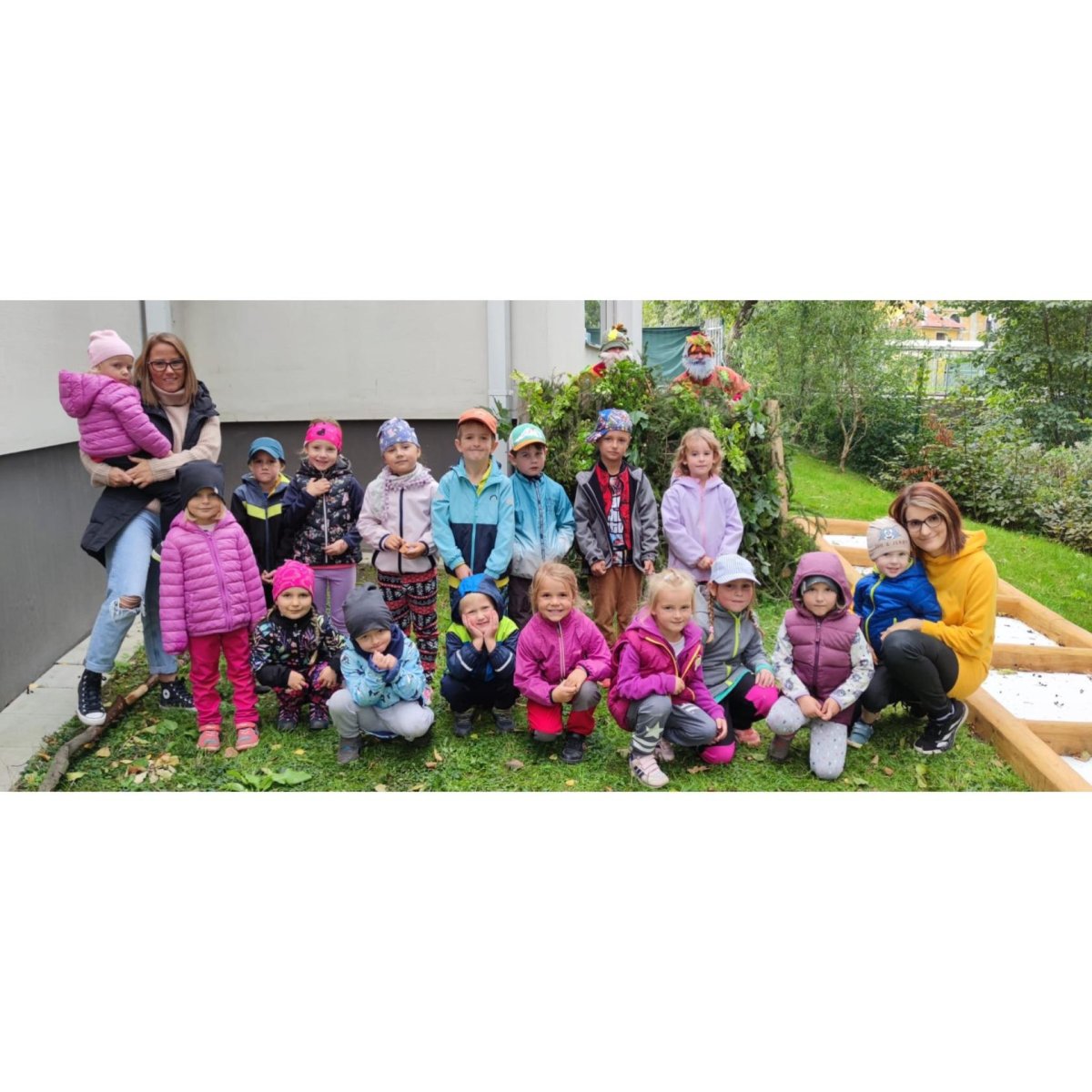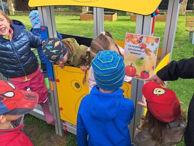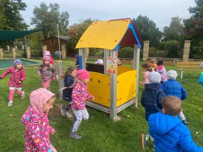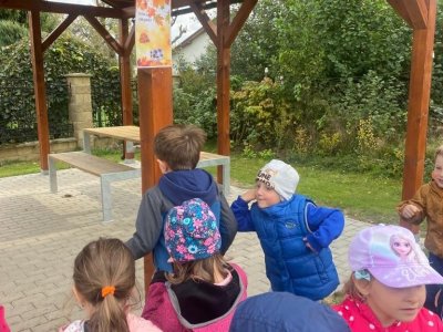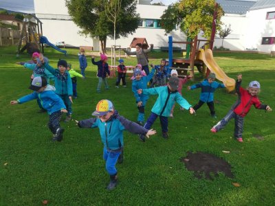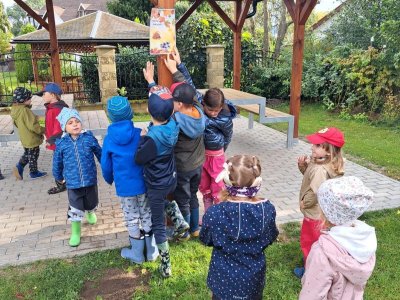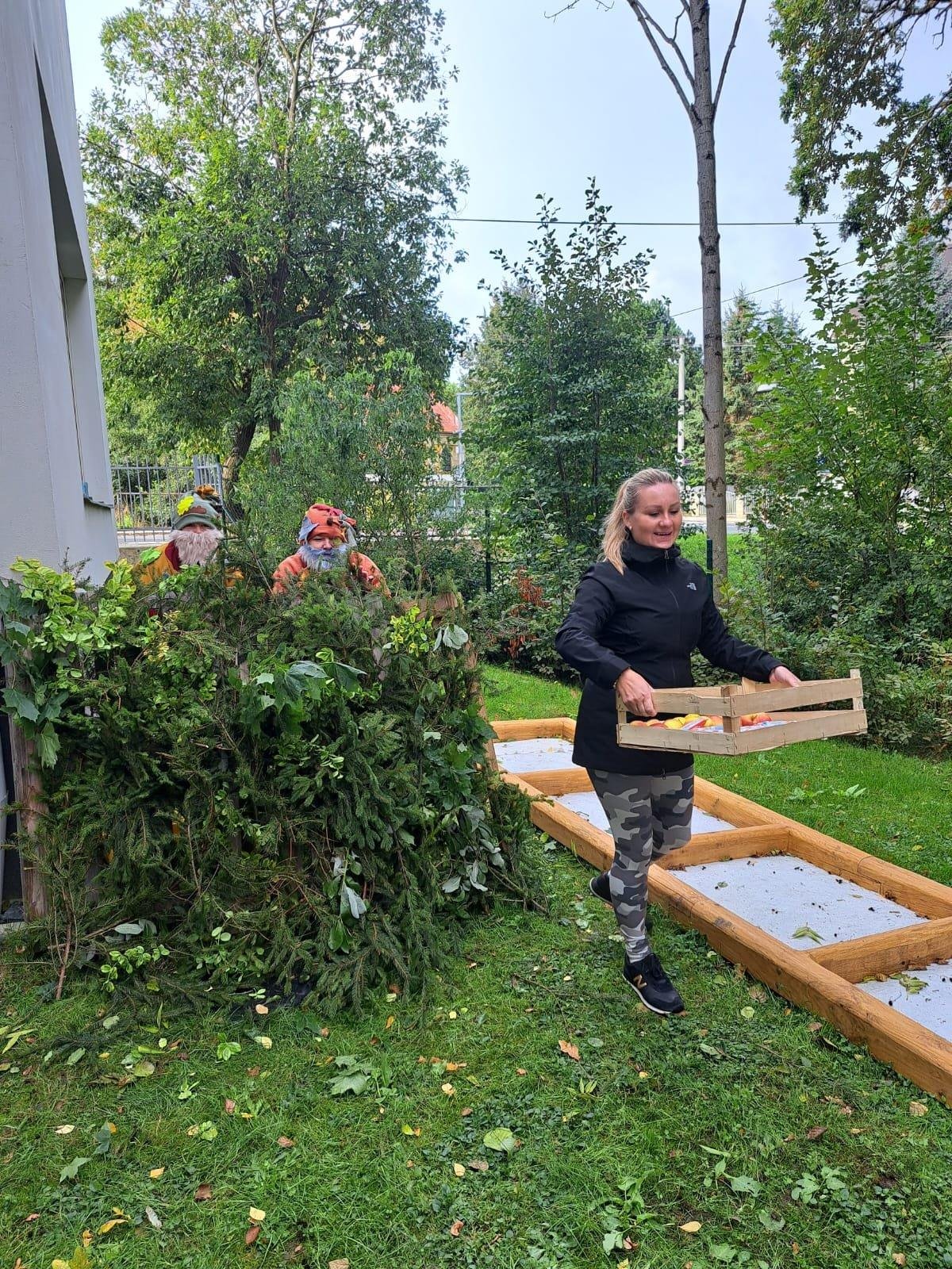 Dnes jsme s dětmi vítali podzim. Na zahradě pro nás byla připravena stezka s úkoly. Po jejich splnění jsme našli domeček se skřítky Podzimníčky. Za podzimní písničku či básničku nás odměnili.