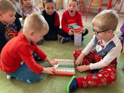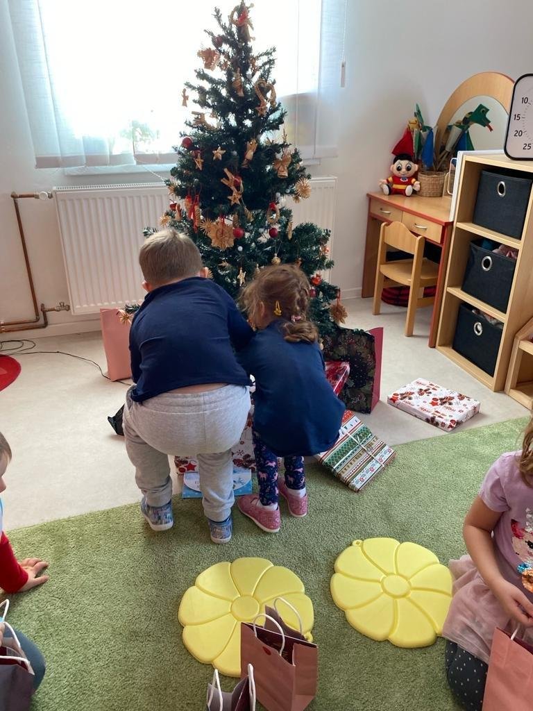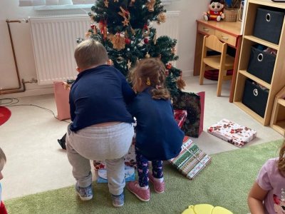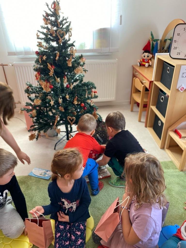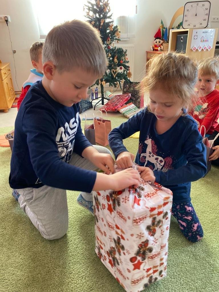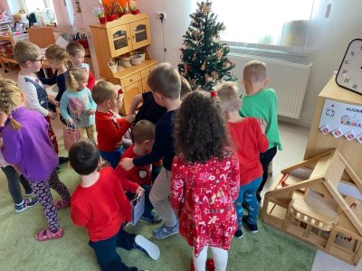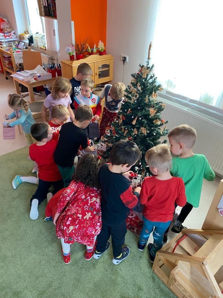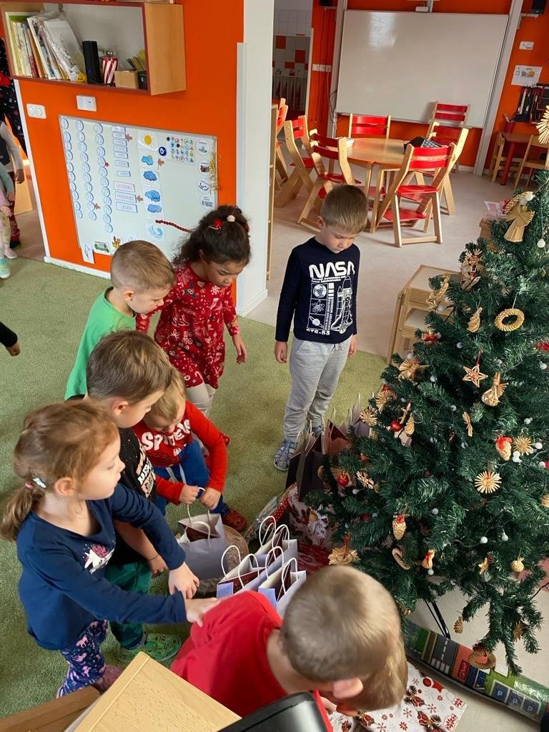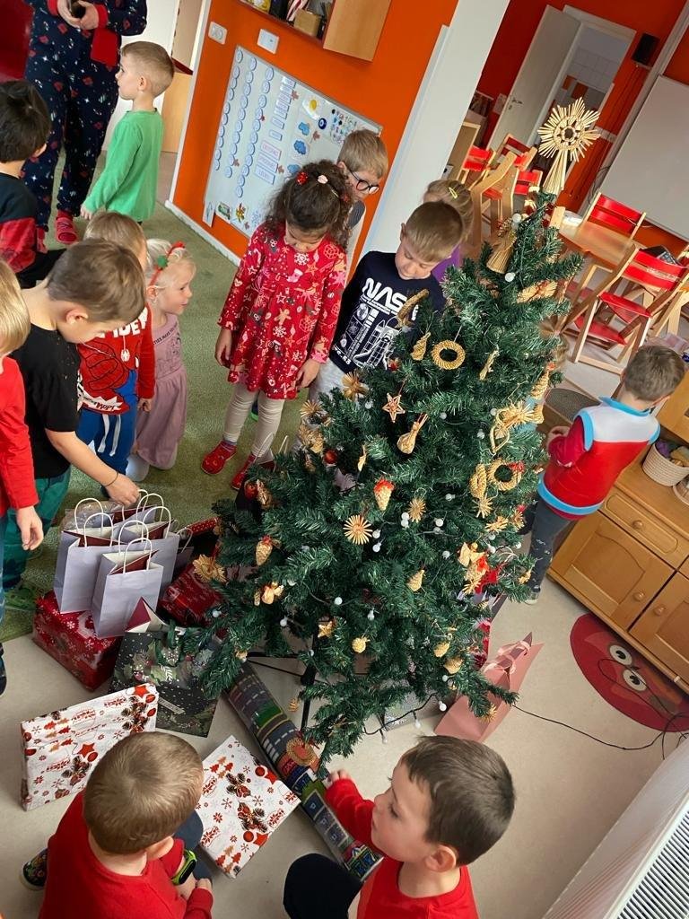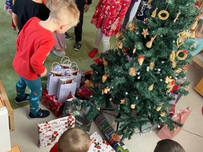 Dne 19.12.2023 jsme společně s dětmi ve školce oslavili Vánoce. Po sváteční svačince, jsme se všichni sešli u stromečku v hale a zpívaním koled jsme si krátili čas čekání na Ježíška. Děti ve svých třídách našly krásné dárečky. Vánoce ve školce jsme se všichni užili! Přejeme všem krásné Vánoce.