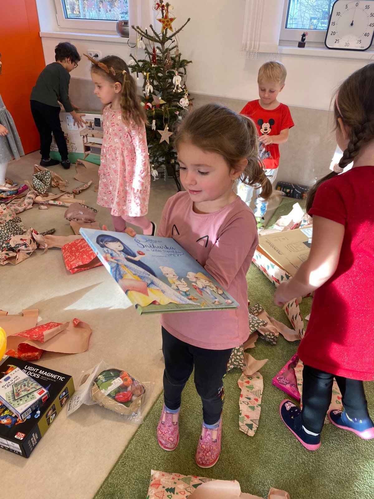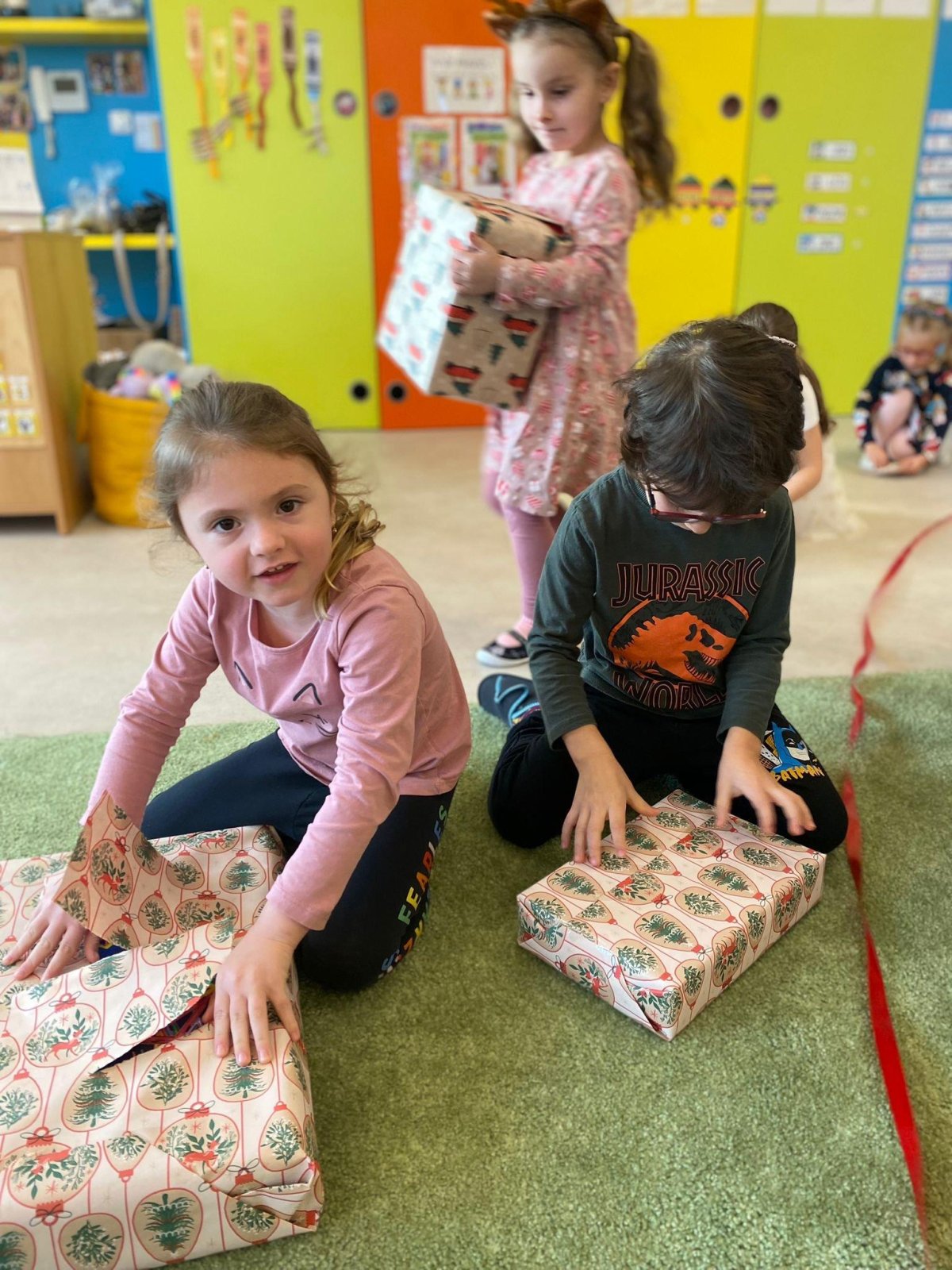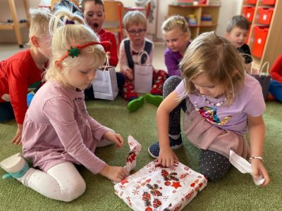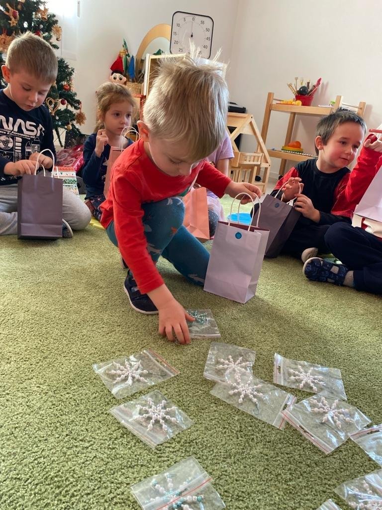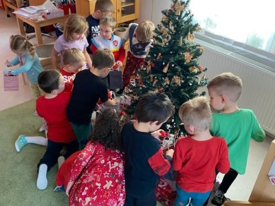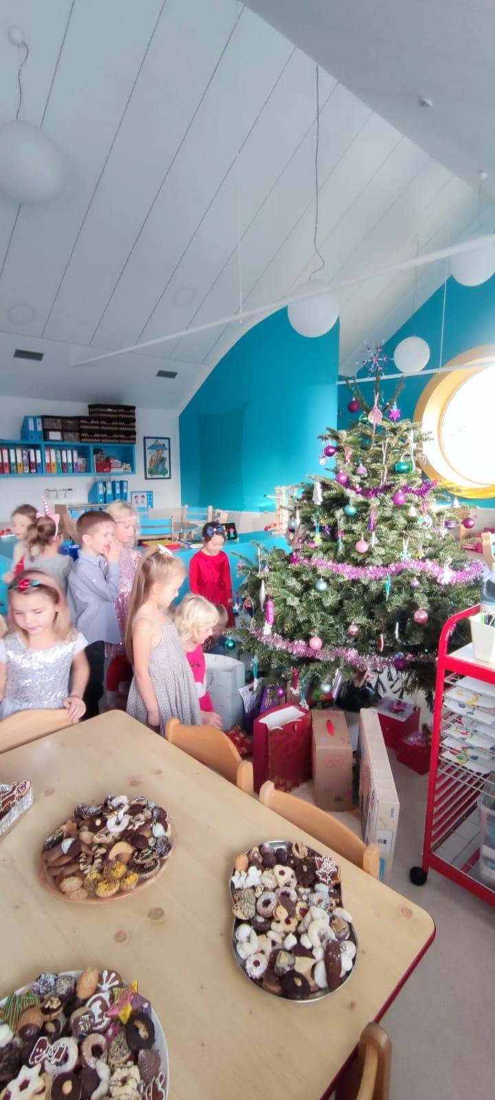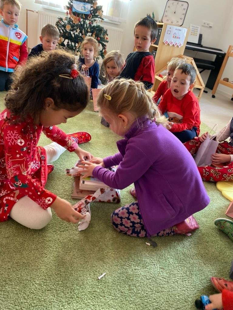 Dne 19.12.2023 jsme společně s dětmi ve školce oslavili Vánoce. Po sváteční svačince, jsme se všichni sešli u stromečku v hale a zpívaním koled jsme si krátili čas čekání na Ježíška. Děti ve svých třídách našly krásné dárečky. Vánoce ve školce jsme se všichni užili! Přejeme všem krásné Vánoce.