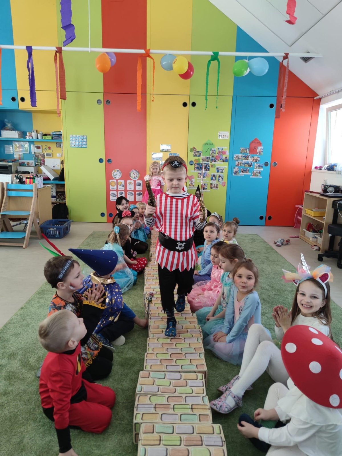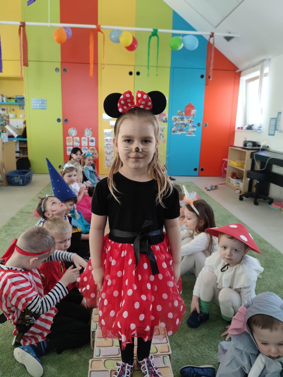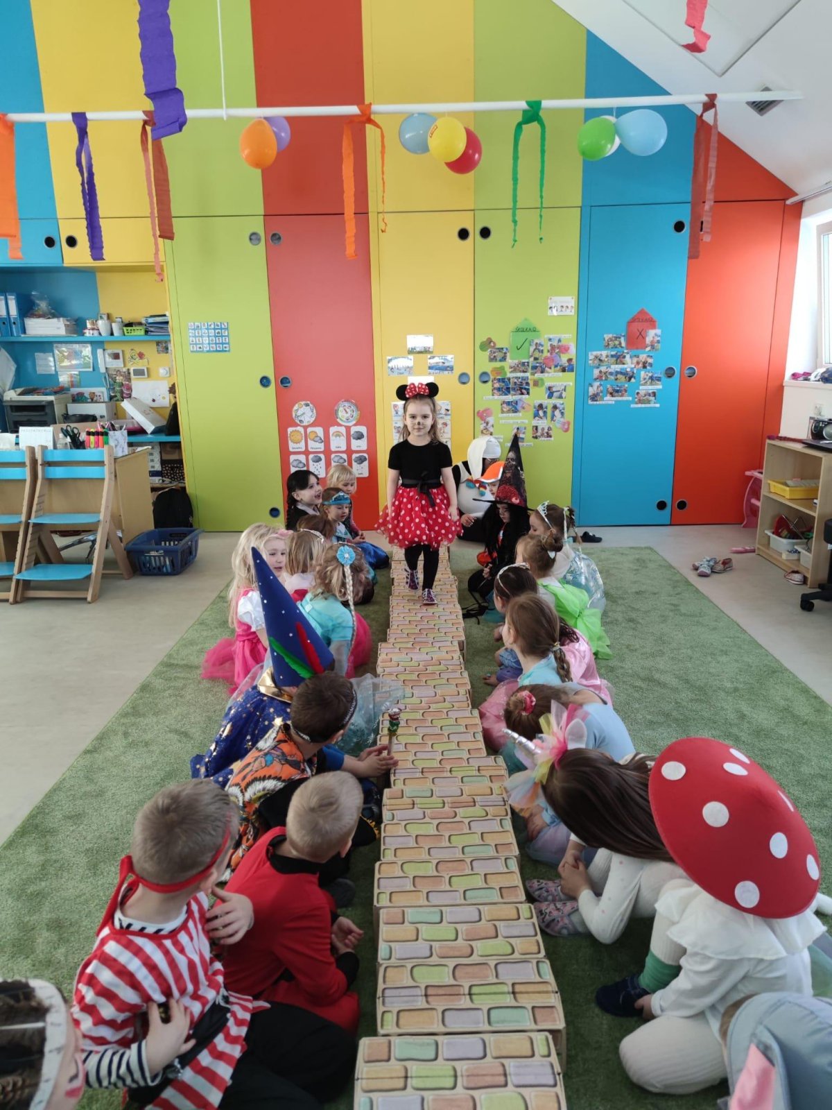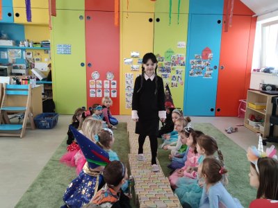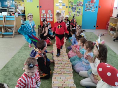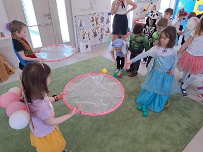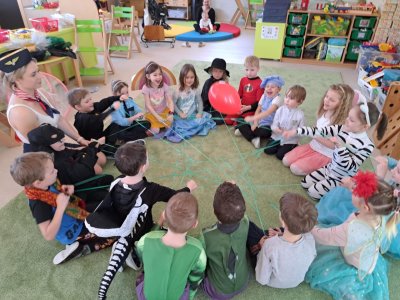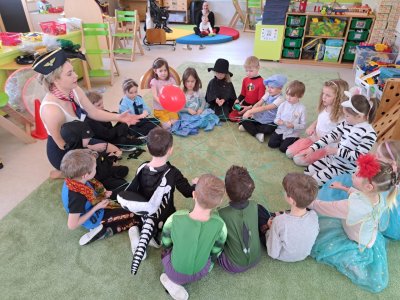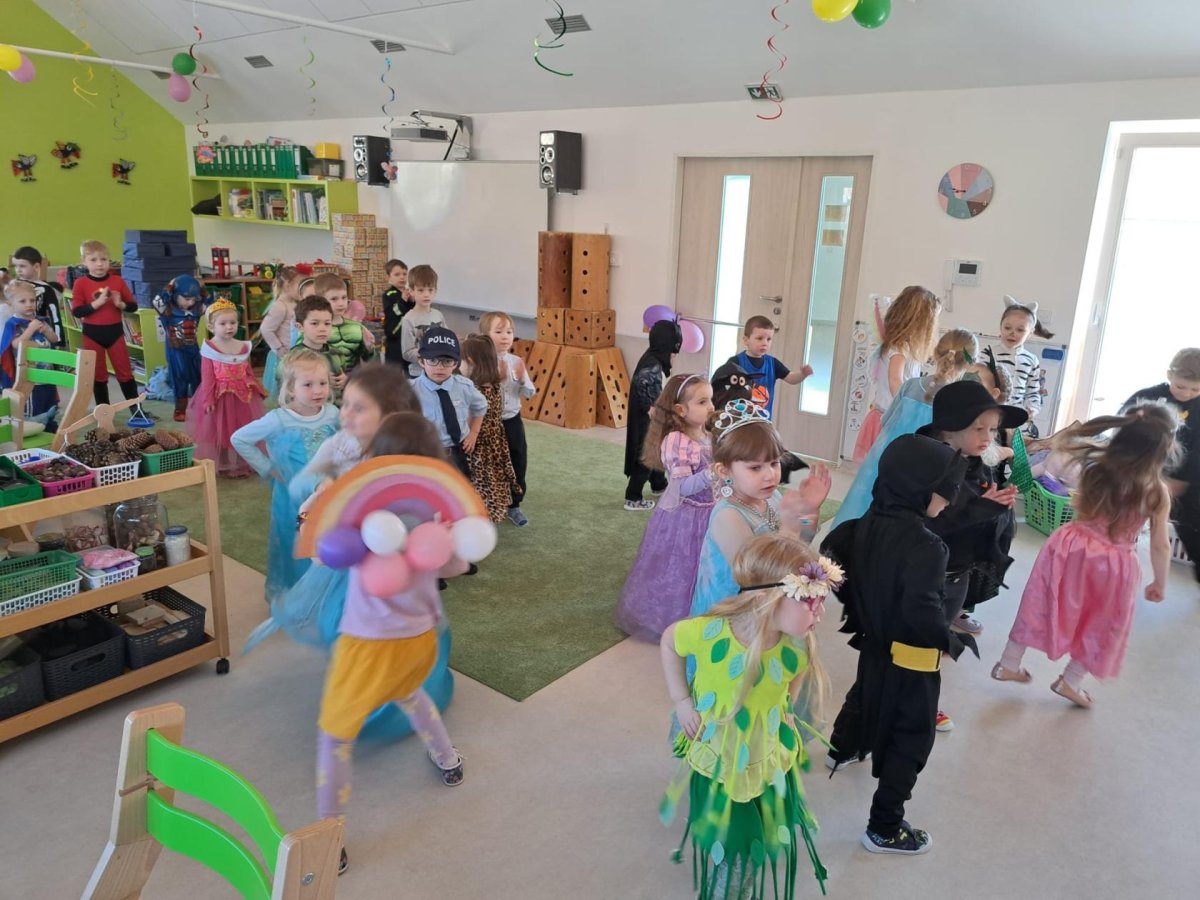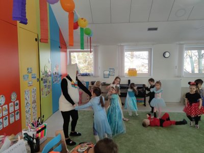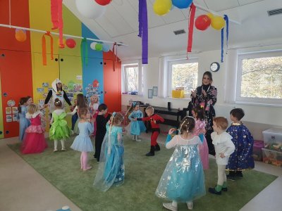Dne 28.2.2023 jsme ve školce uspořádali maškarní karneval. Konala se přehlídka masek, plnění úkolů a taky jsme si pořádně zatančili!:-)