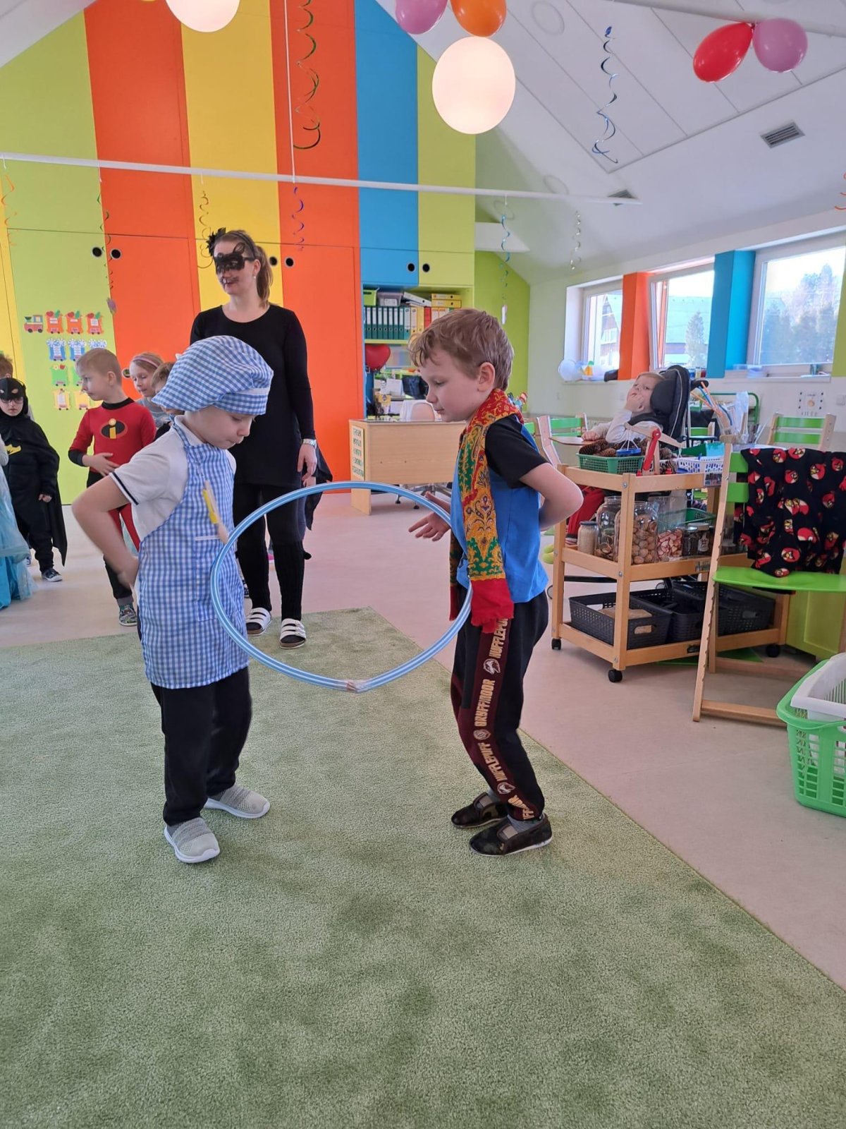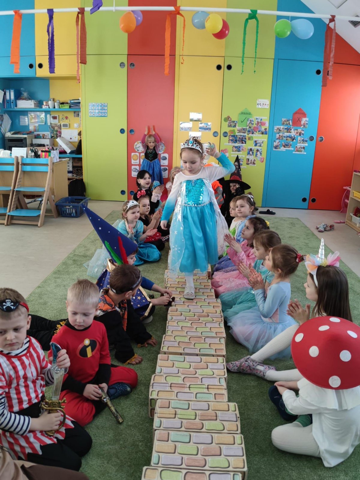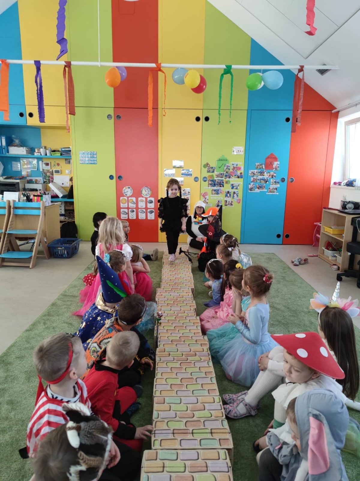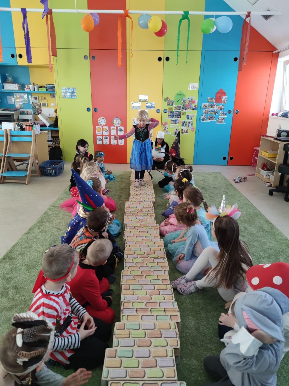 Dne 28.2.2023 jsme ve školce uspořádali maškarní karneval. Konala se přehlídka masek, plnění úkolů a taky jsme si pořádně zatančili!:-)