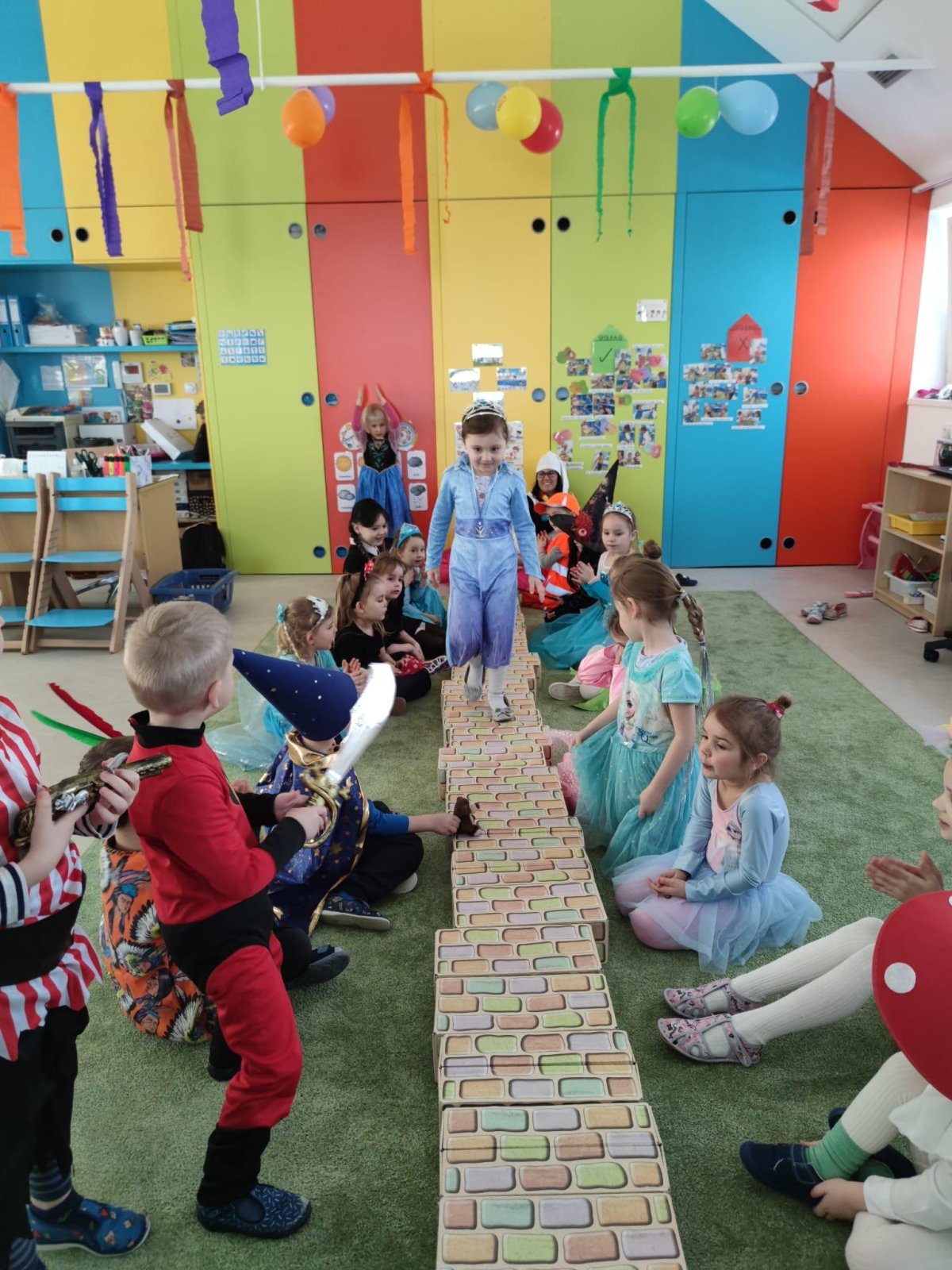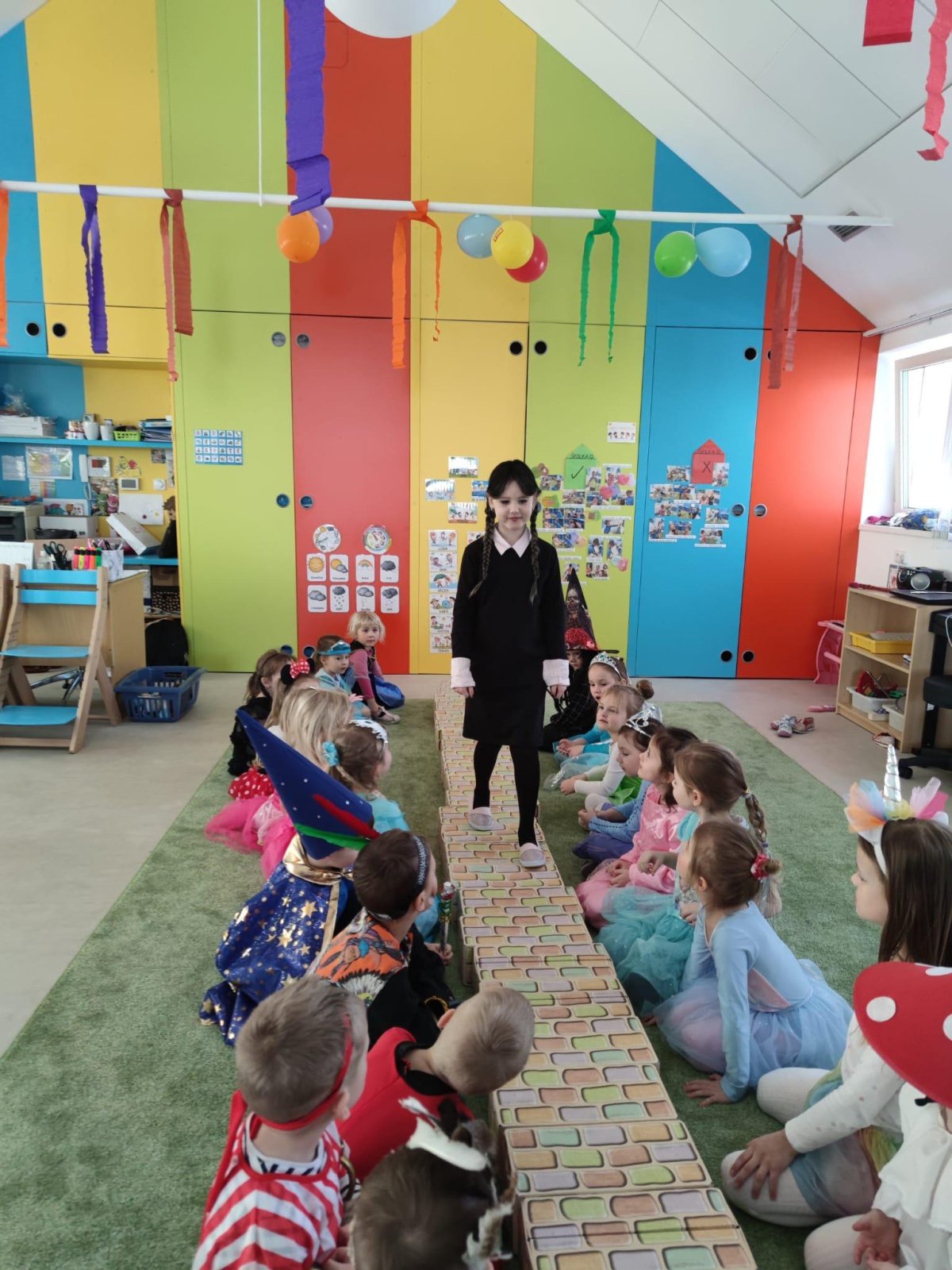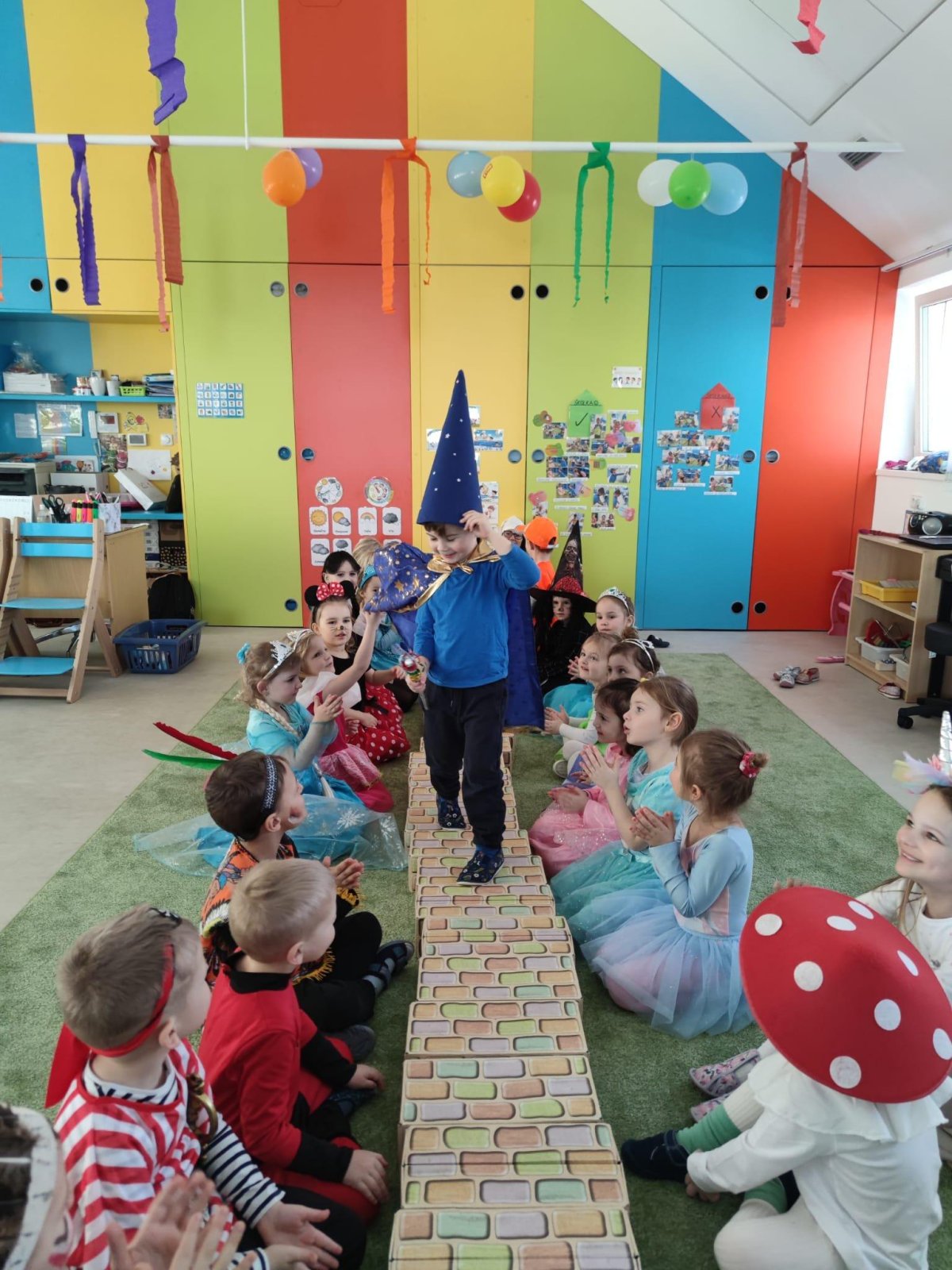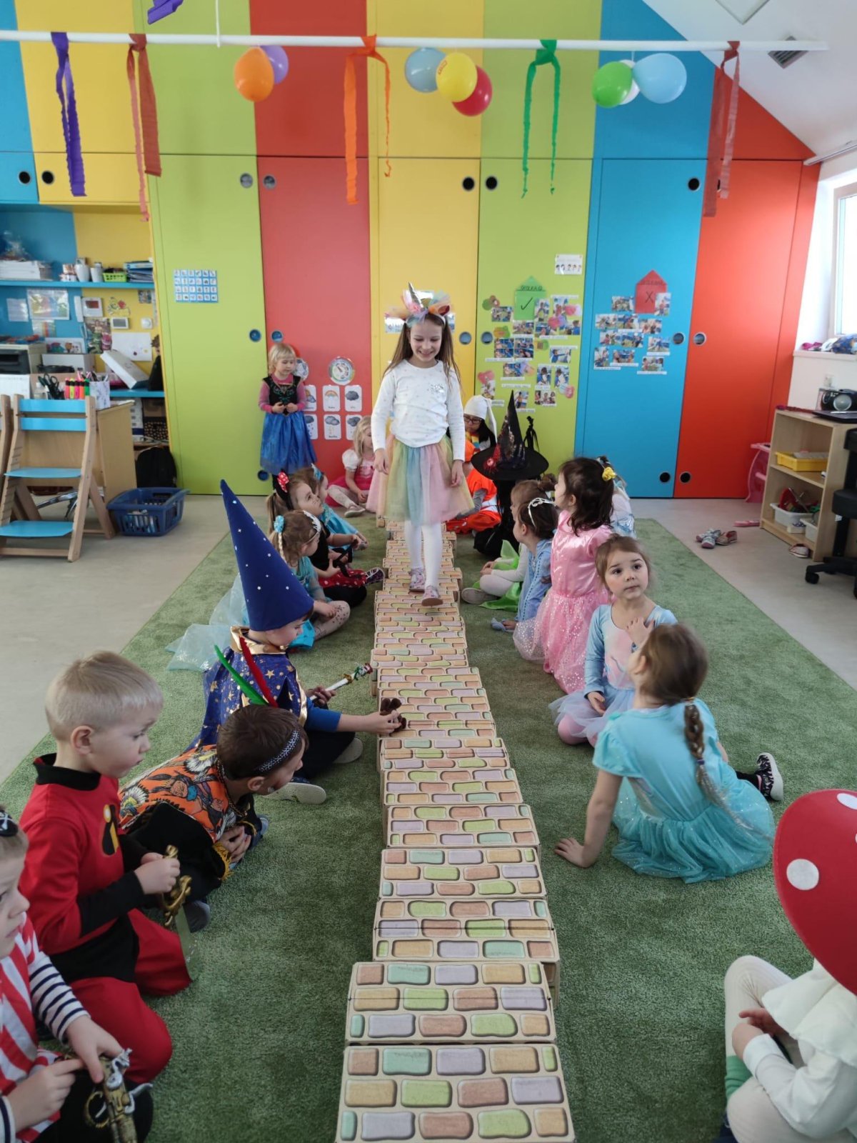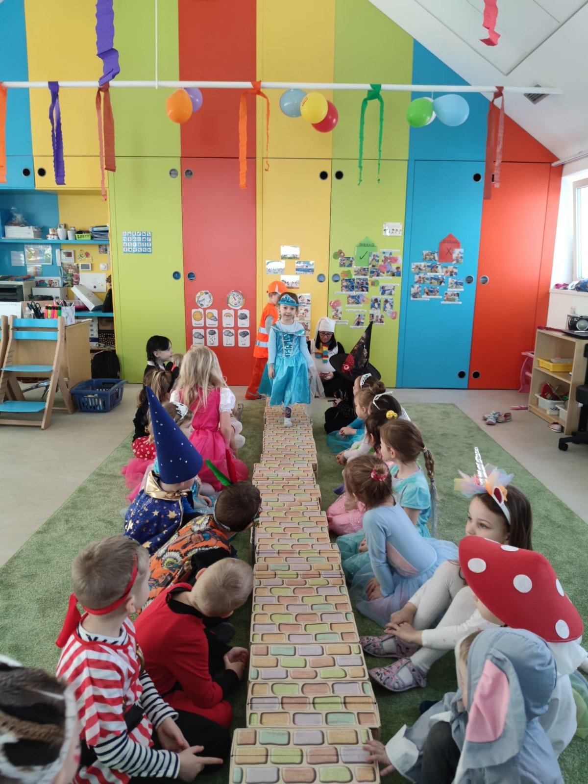 Dne 28.2.2023 jsme ve školce uspořádali maškarní karneval. Konala se přehlídka masek, plnění úkolů a taky jsme si pořádně zatančili!:-)
