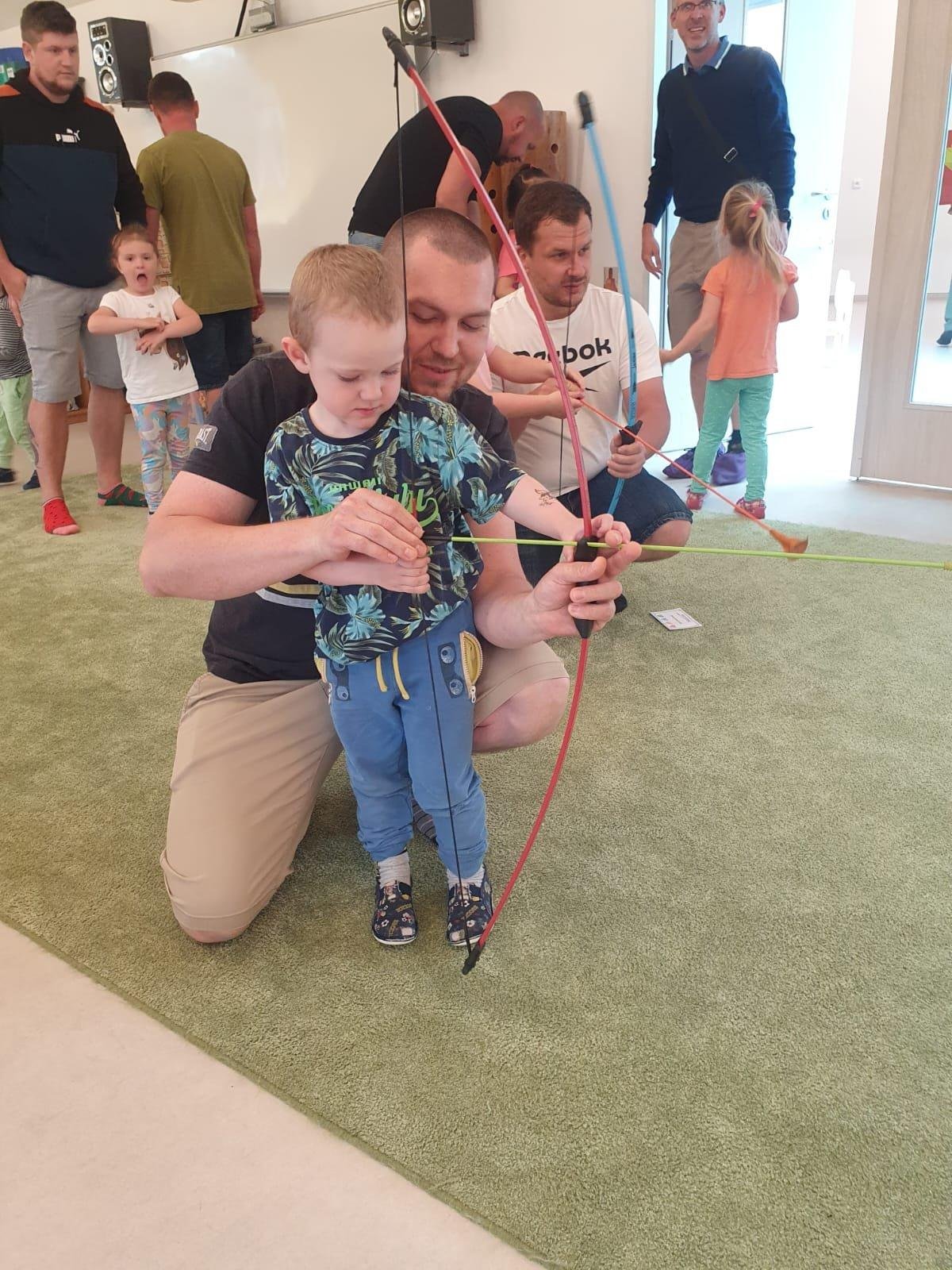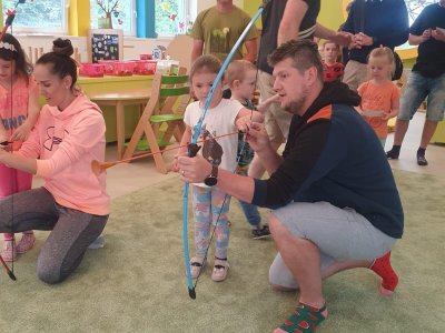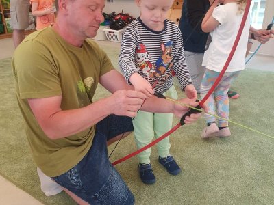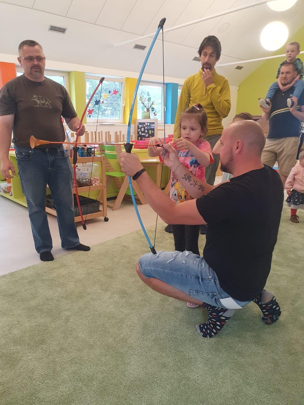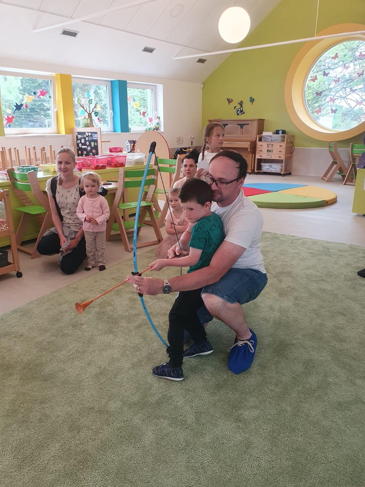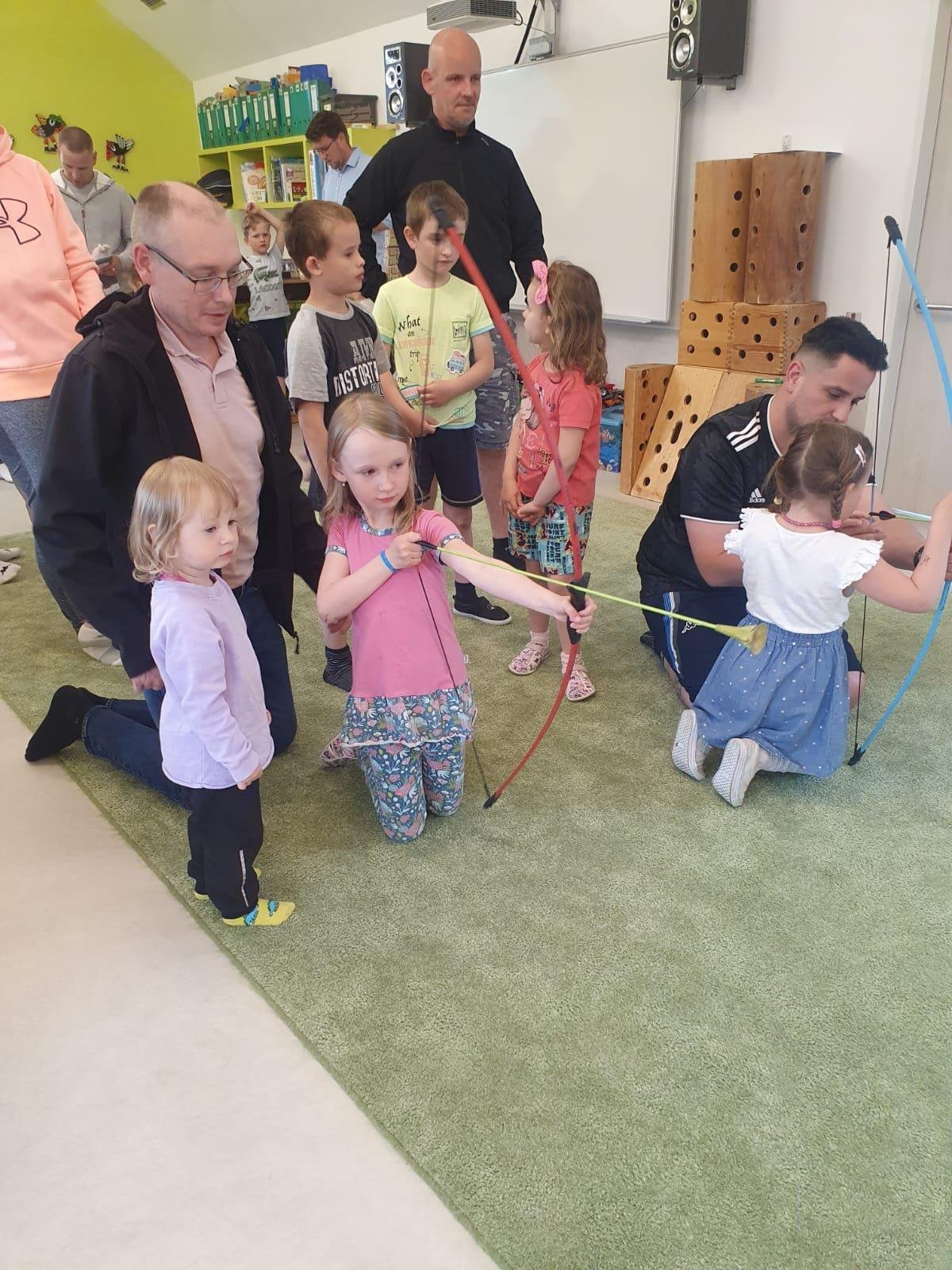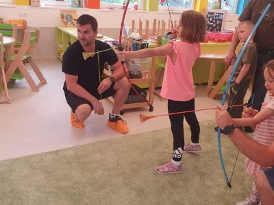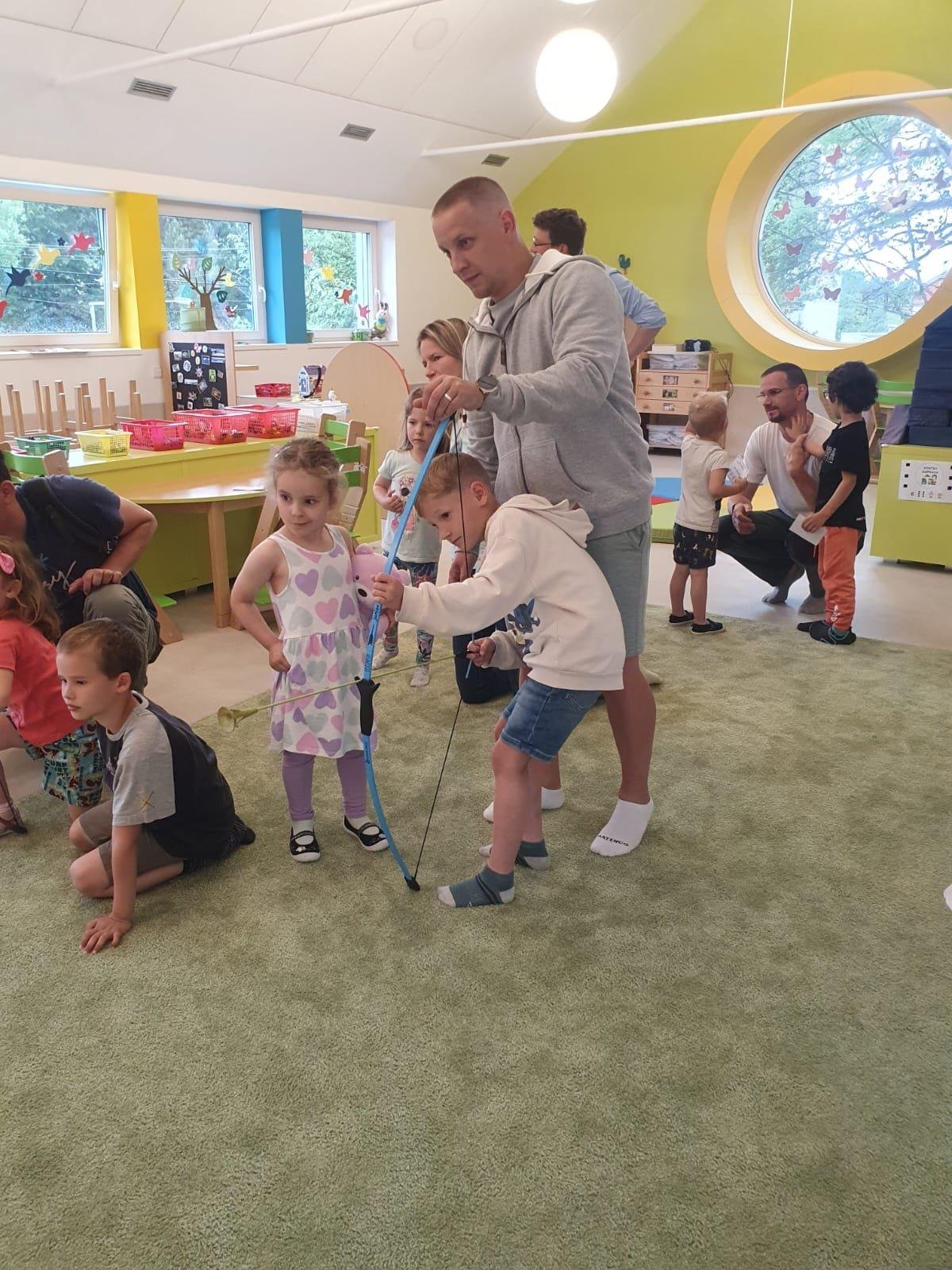 Dne 13.6.2023 jsme uspořádali ve školce akci ke Dni otců. Pro děti a tatínky byly připraveny tyto úkoly: zatloukání hřebíků, fotbal, střelba z luku, jízda na koníkovi a jako bonus nás navštívila Markétina dopravní výchova s ukázkou, jak se správně a bezpečně poutat při jízdě v autě. Děti si postupně splněné úkoly odškrtávaly a na závěr předaly svým tatínkům dáreček. :-)
