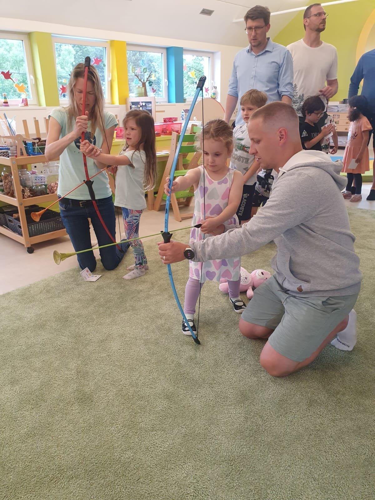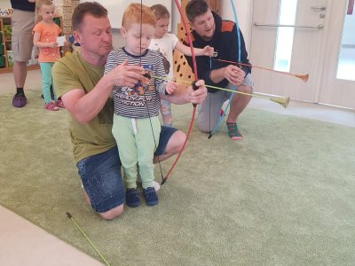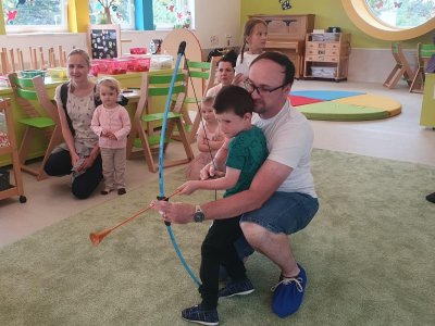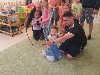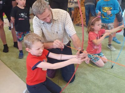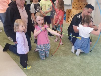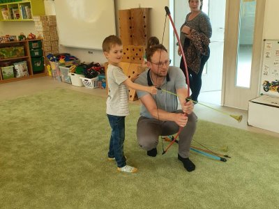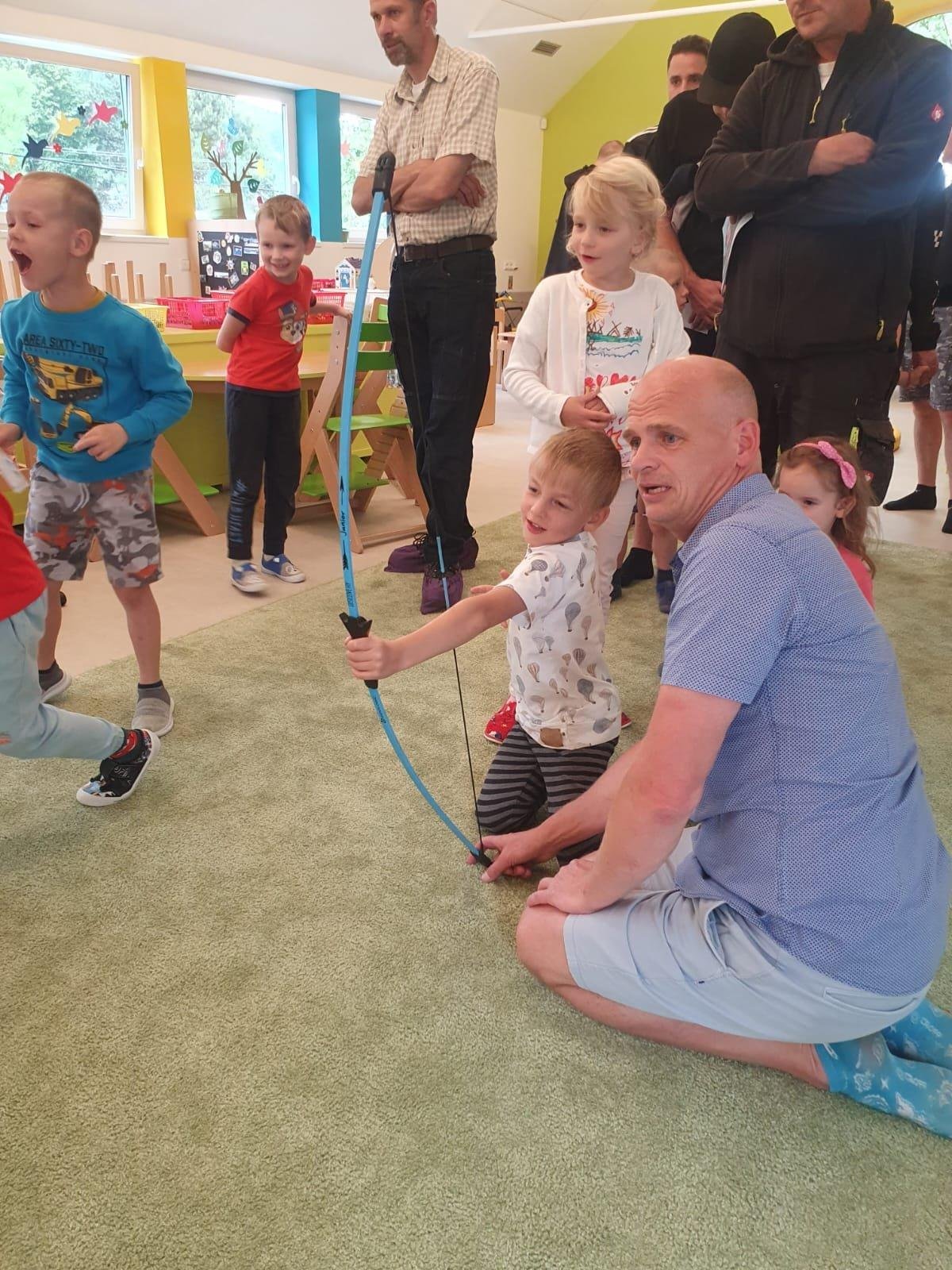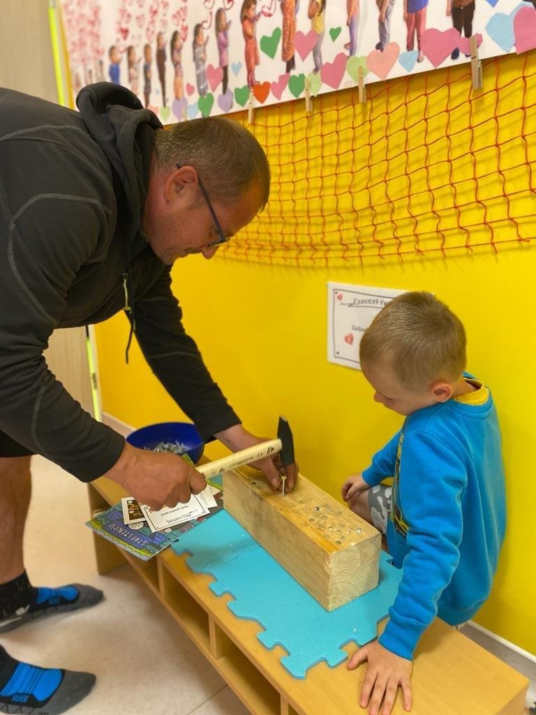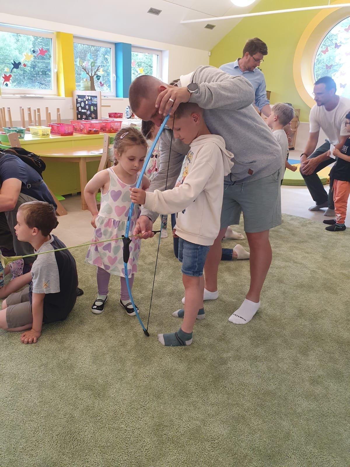 Dne 13.6.2023 jsme uspořádali ve školce akci ke Dni otců. Pro děti a tatínky byly připraveny tyto úkoly: zatloukání hřebíků, fotbal, střelba z luku, jízda na koníkovi a jako bonus nás navštívila Markétina dopravní výchova s ukázkou, jak se správně a bezpečně poutat při jízdě v autě. Děti si postupně splněné úkoly odškrtávaly a na závěr předaly svým tatínkům dáreček. :-)