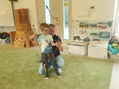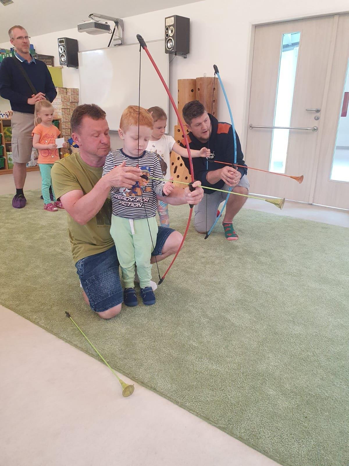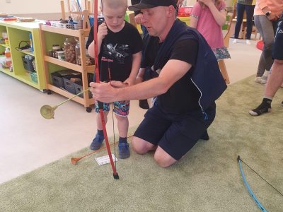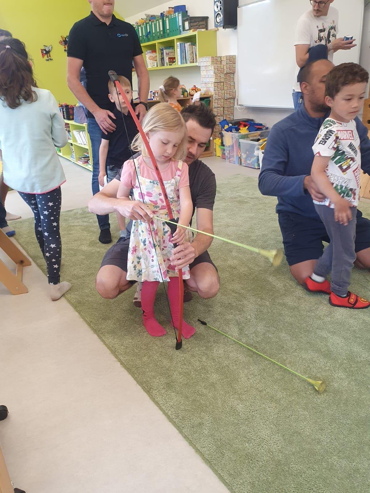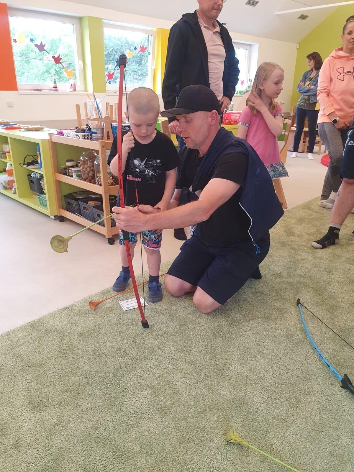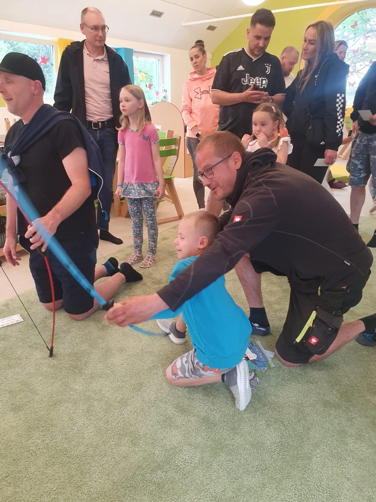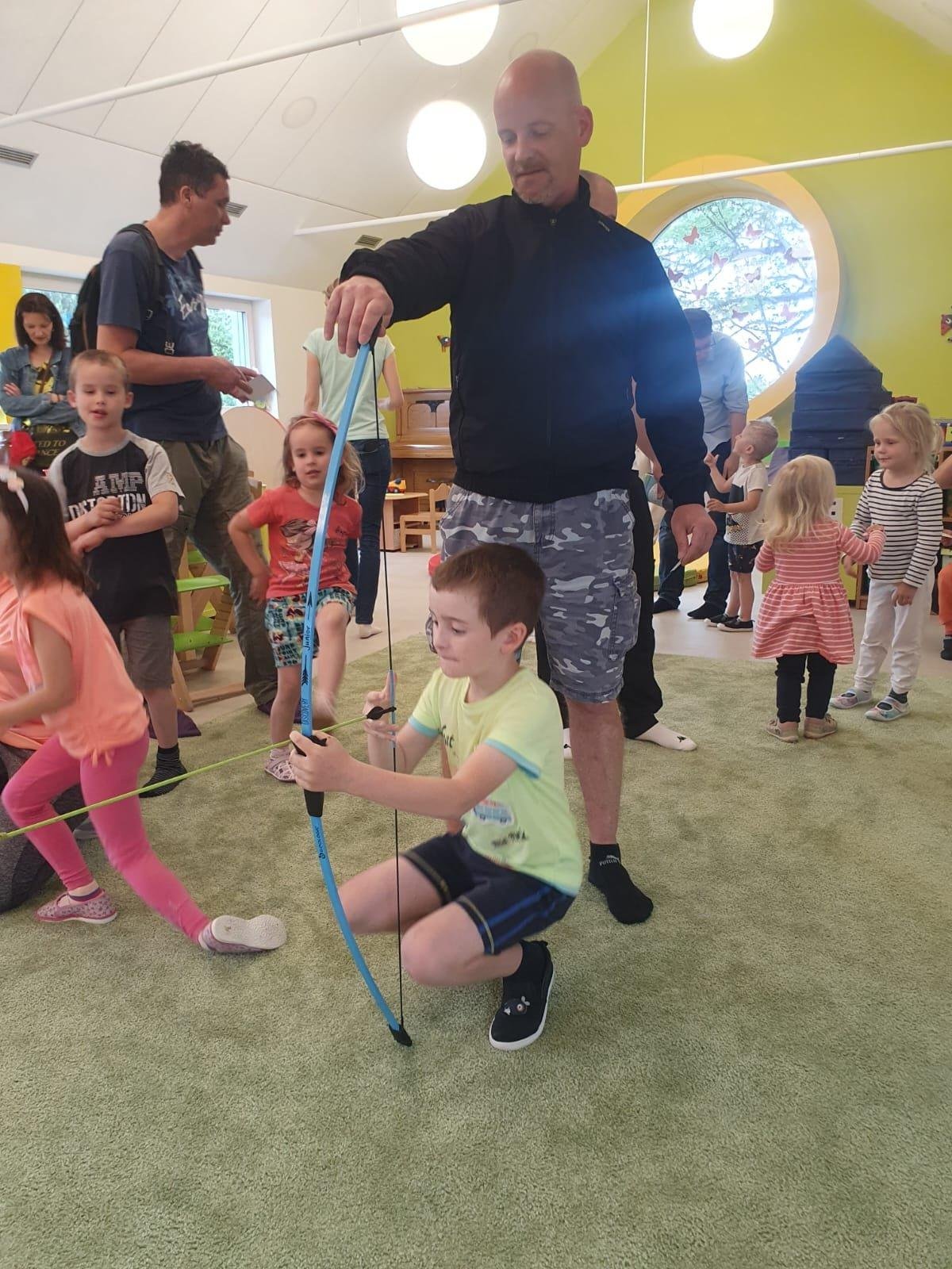 Dne 13.6.2023 jsme uspořádali ve školce akci ke Dni otců. Pro děti a tatínky byly připraveny tyto úkoly: zatloukání hřebíků, fotbal, střelba z luku, jízda na koníkovi a jako bonus nás navštívila Markétina dopravní výchova s ukázkou, jak se správně a bezpečně poutat při jízdě v autě. Děti si postupně splněné úkoly odškrtávaly a na závěr předaly svým tatínkům dáreček. :-)
