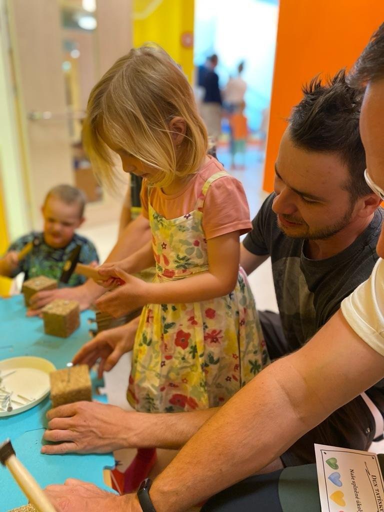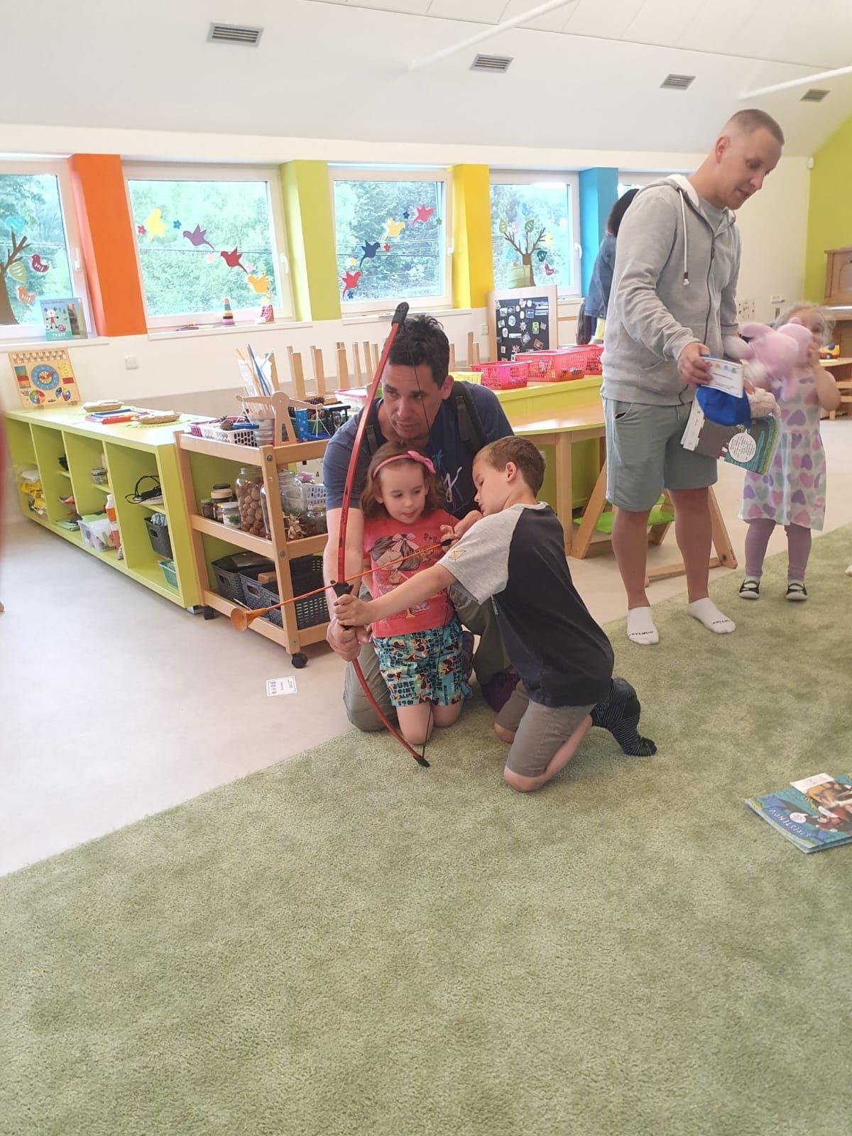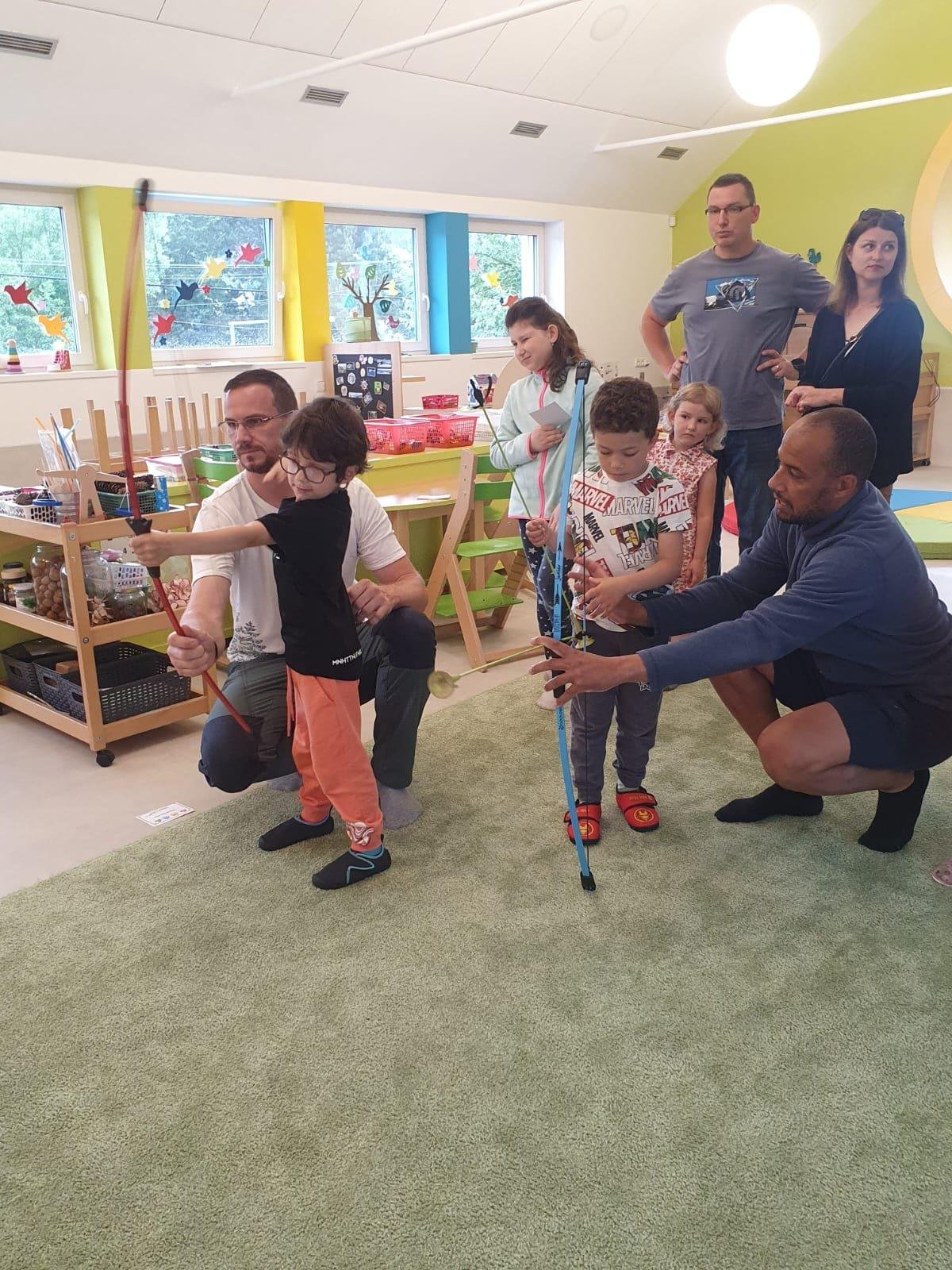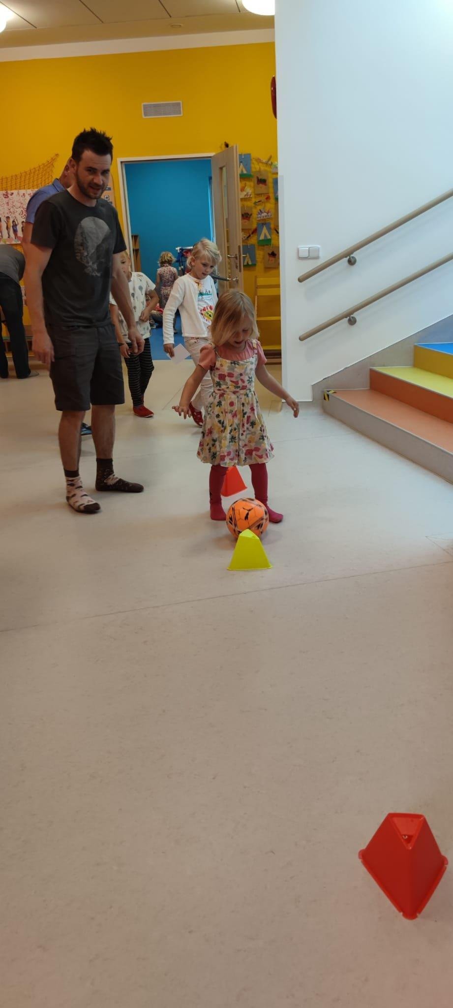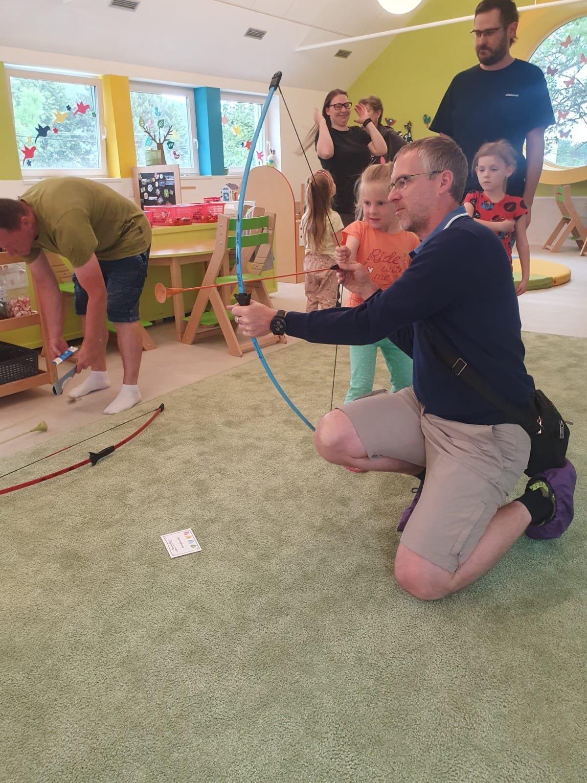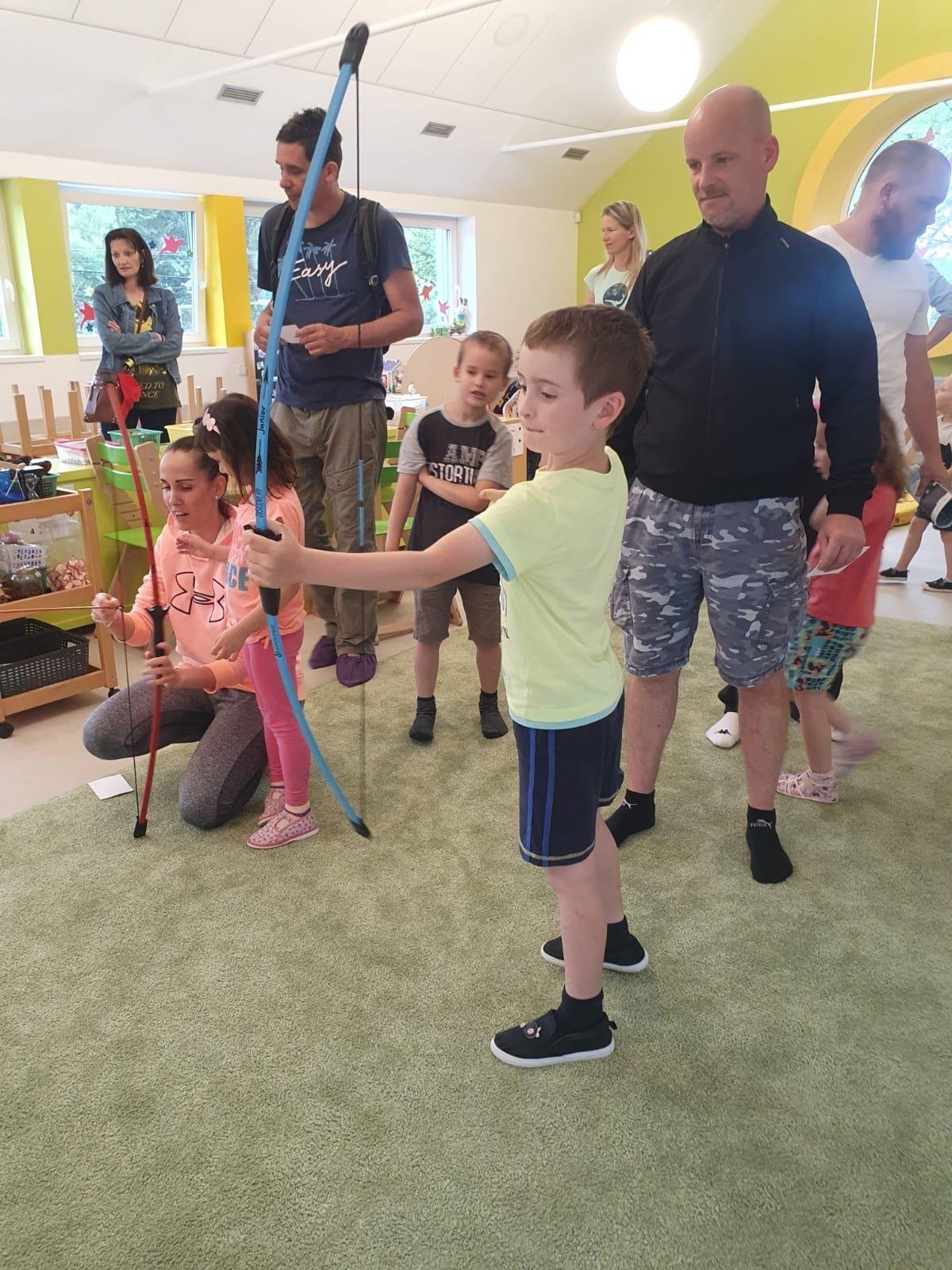 Dne 13.6.2023 jsme uspořádali ve školce akci ke Dni otců. Pro děti a tatínky byly připraveny tyto úkoly: zatloukání hřebíků, fotbal, střelba z luku, jízda na koníkovi a jako bonus nás navštívila Markétina dopravní výchova s ukázkou, jak se správně a bezpečně poutat při jízdě v autě. Děti si postupně splněné úkoly odškrtávaly a na závěr předaly svým tatínkům dáreček. :-)