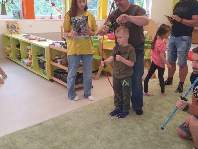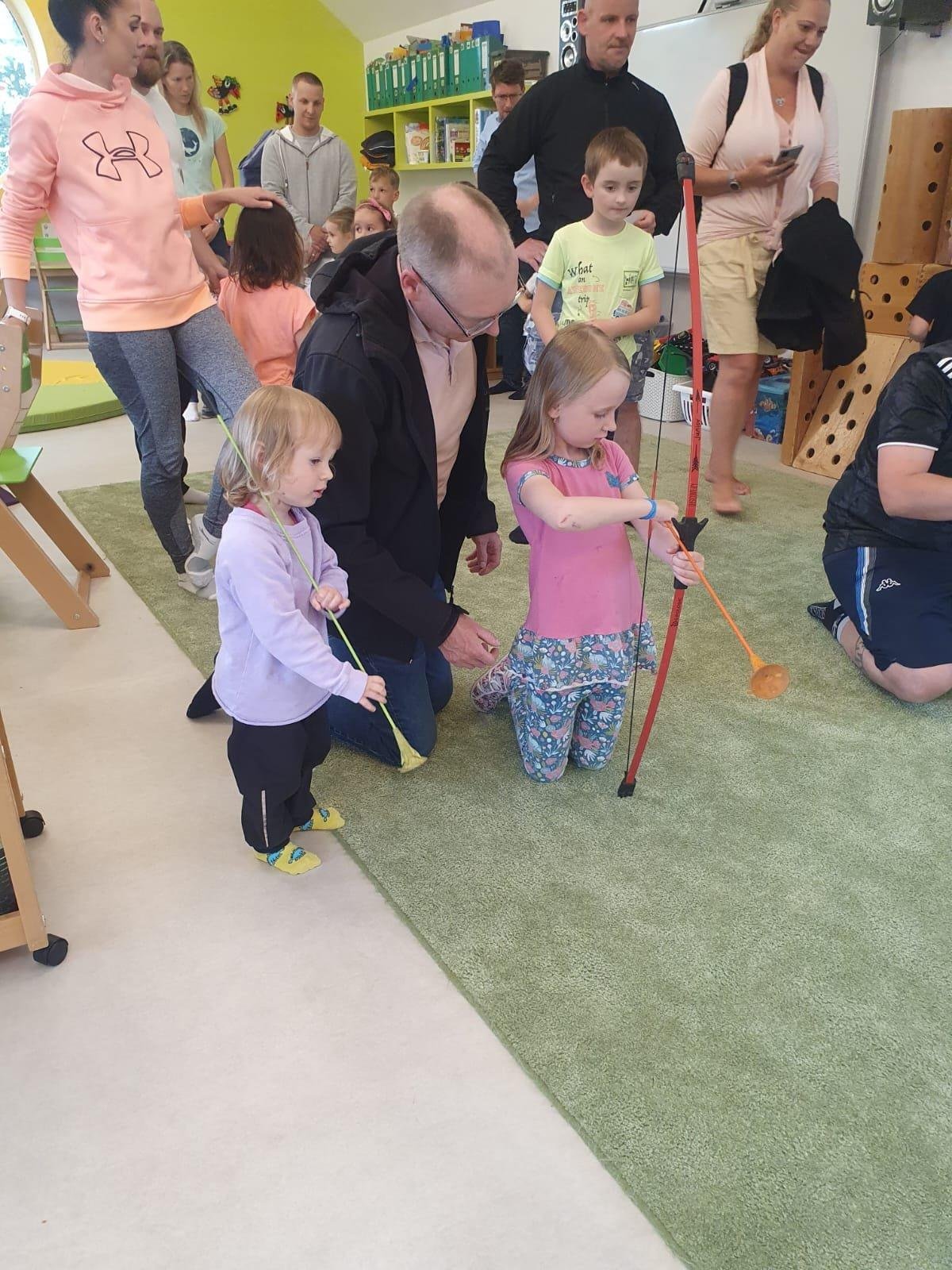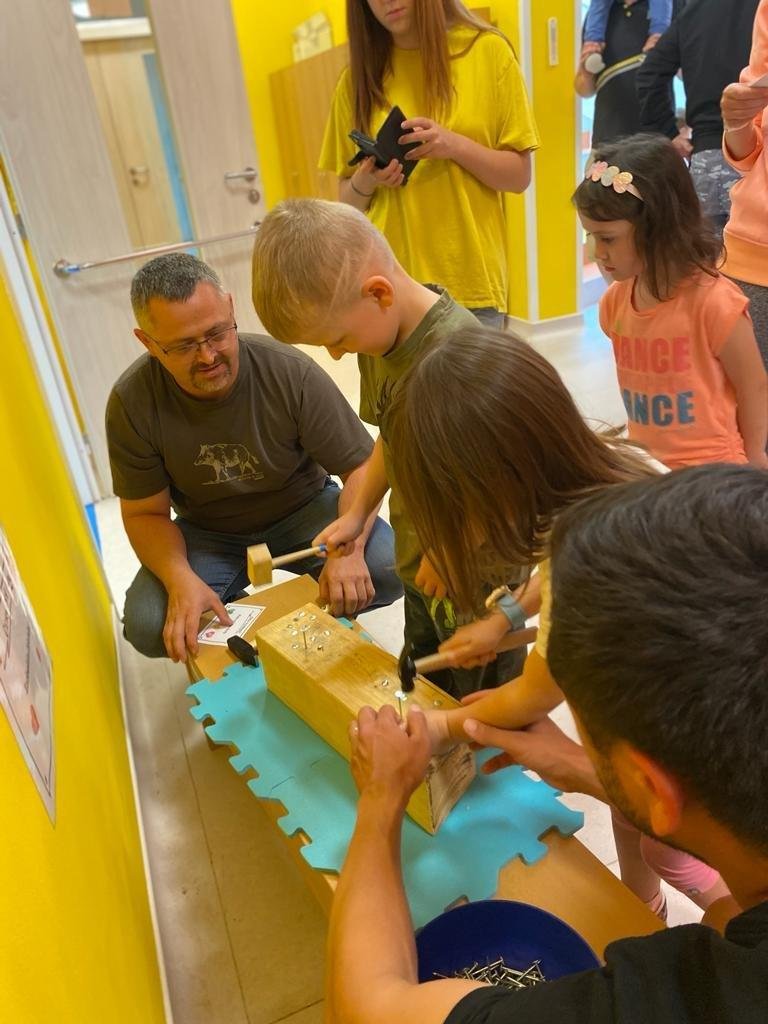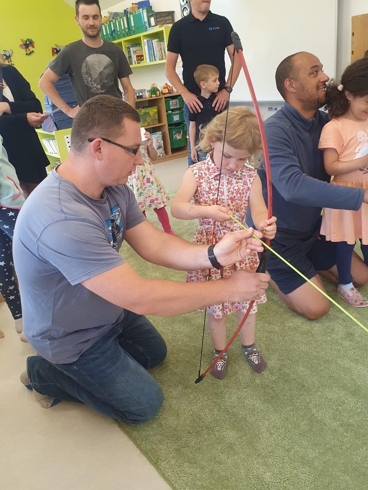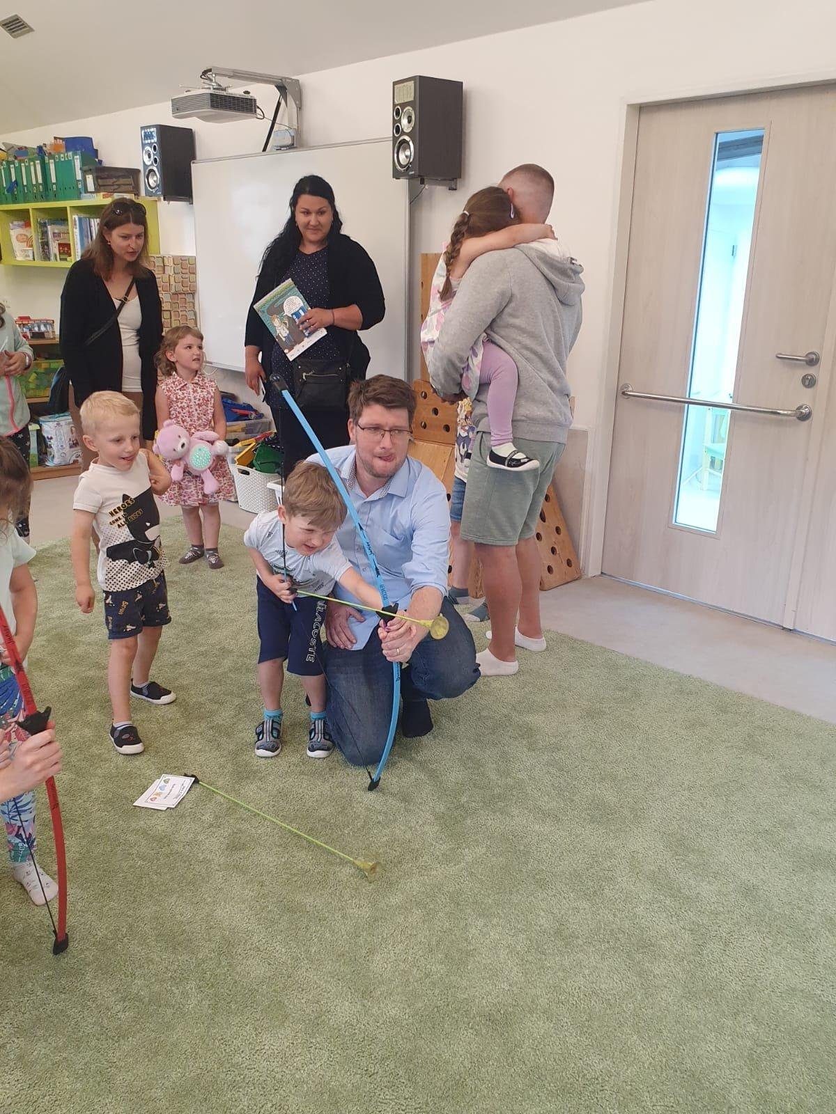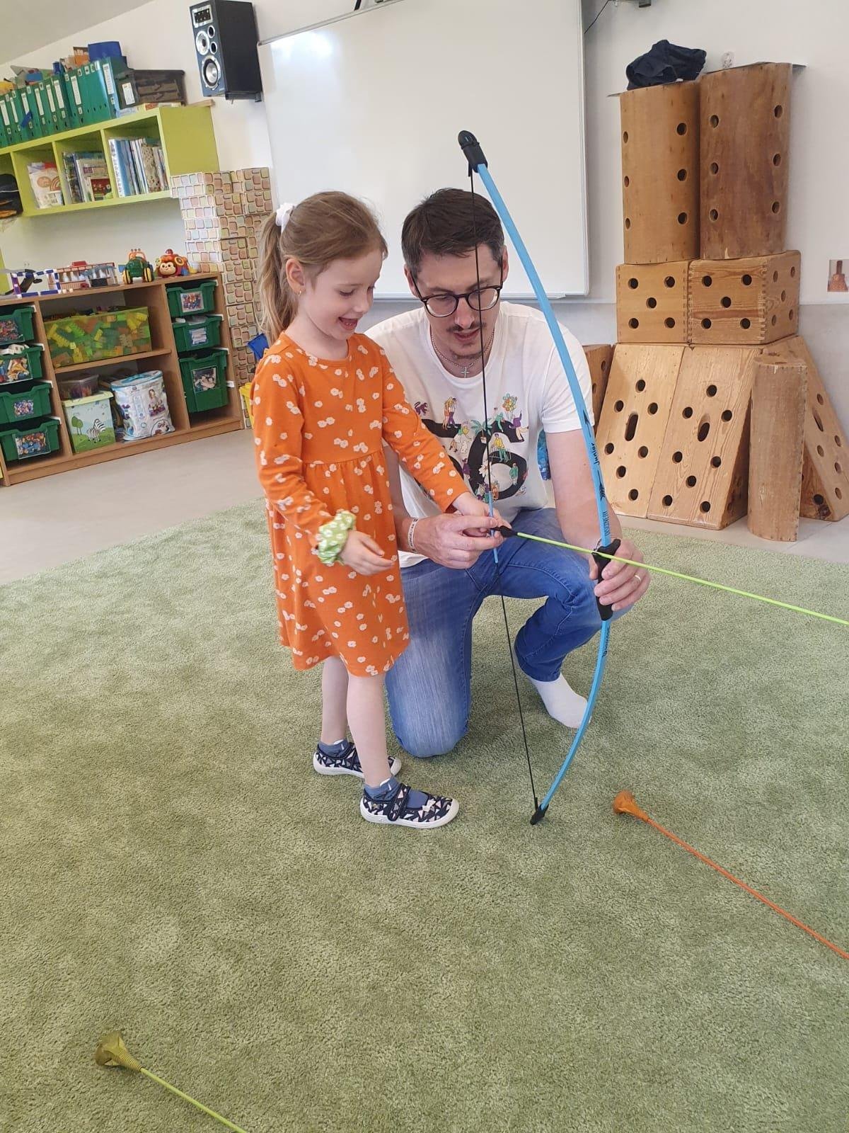 Dne 13.6.2023 jsme uspořádali ve školce akci ke Dni otců. Pro děti a tatínky byly připraveny tyto úkoly: zatloukání hřebíků, fotbal, střelba z luku, jízda na koníkovi a jako bonus nás navštívila Markétina dopravní výchova s ukázkou, jak se správně a bezpečně poutat při jízdě v autě. Děti si postupně splněné úkoly odškrtávaly a na závěr předaly svým tatínkům dáreček. :-)
