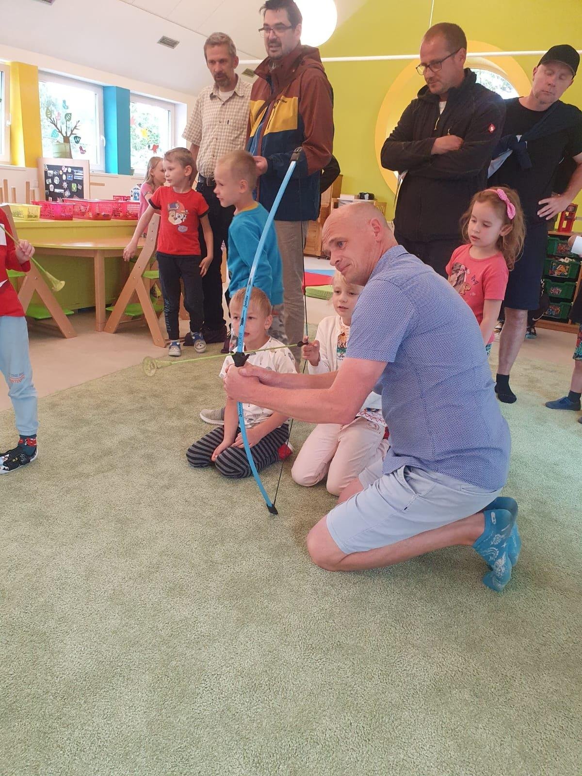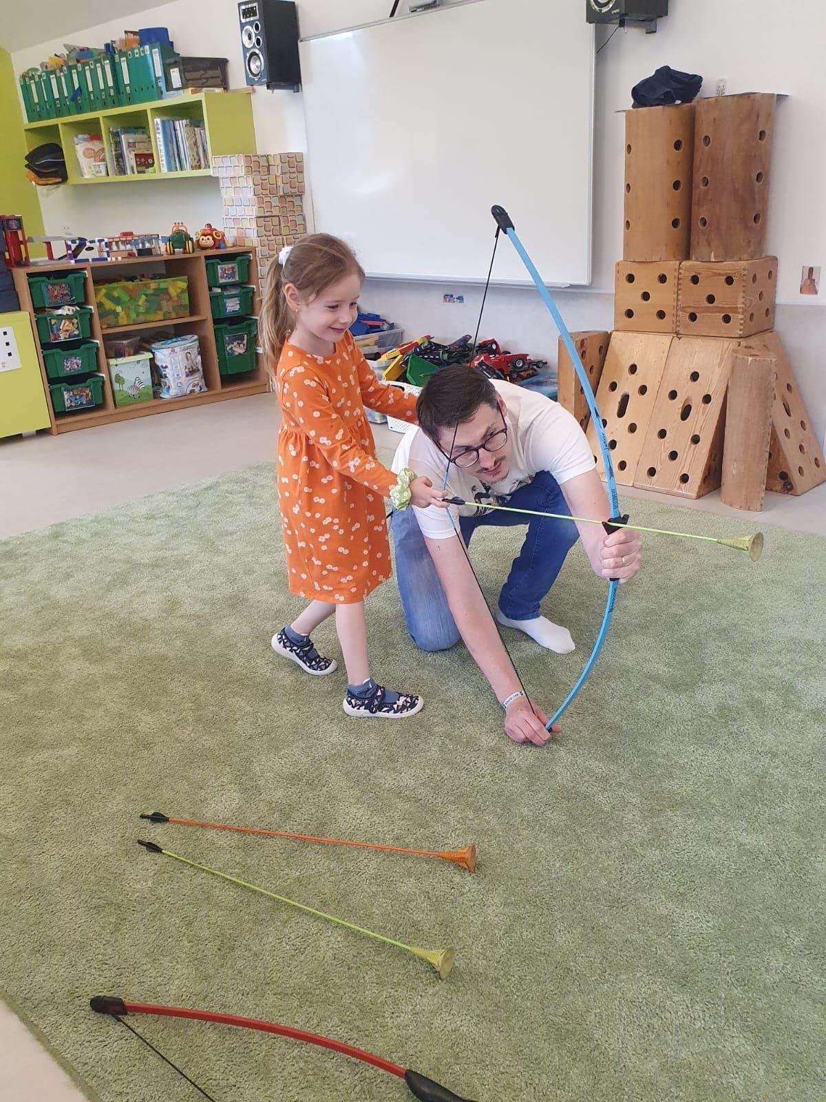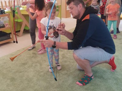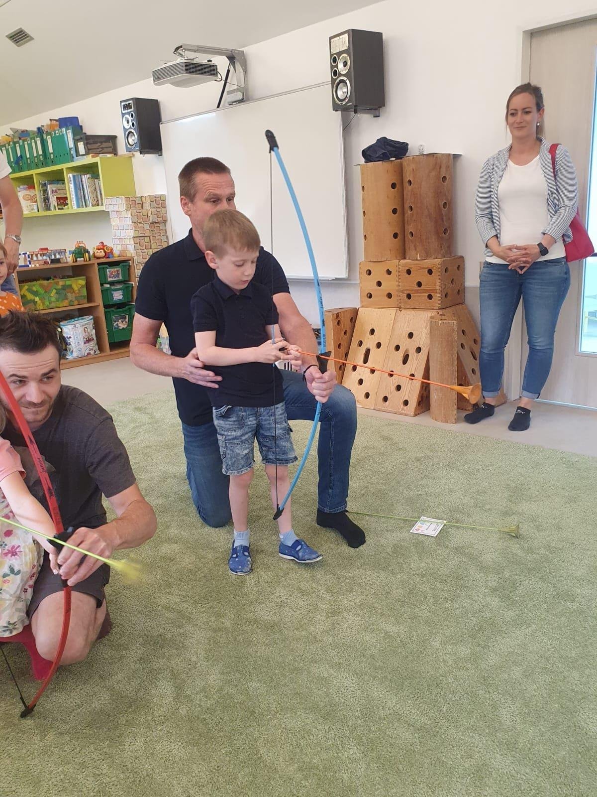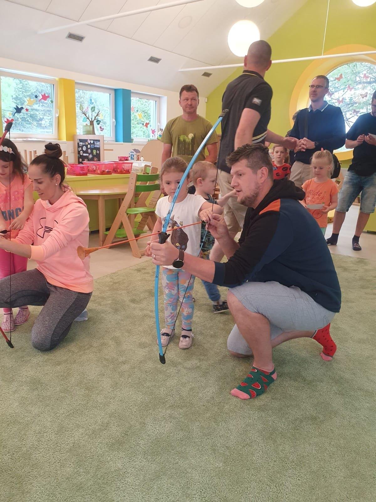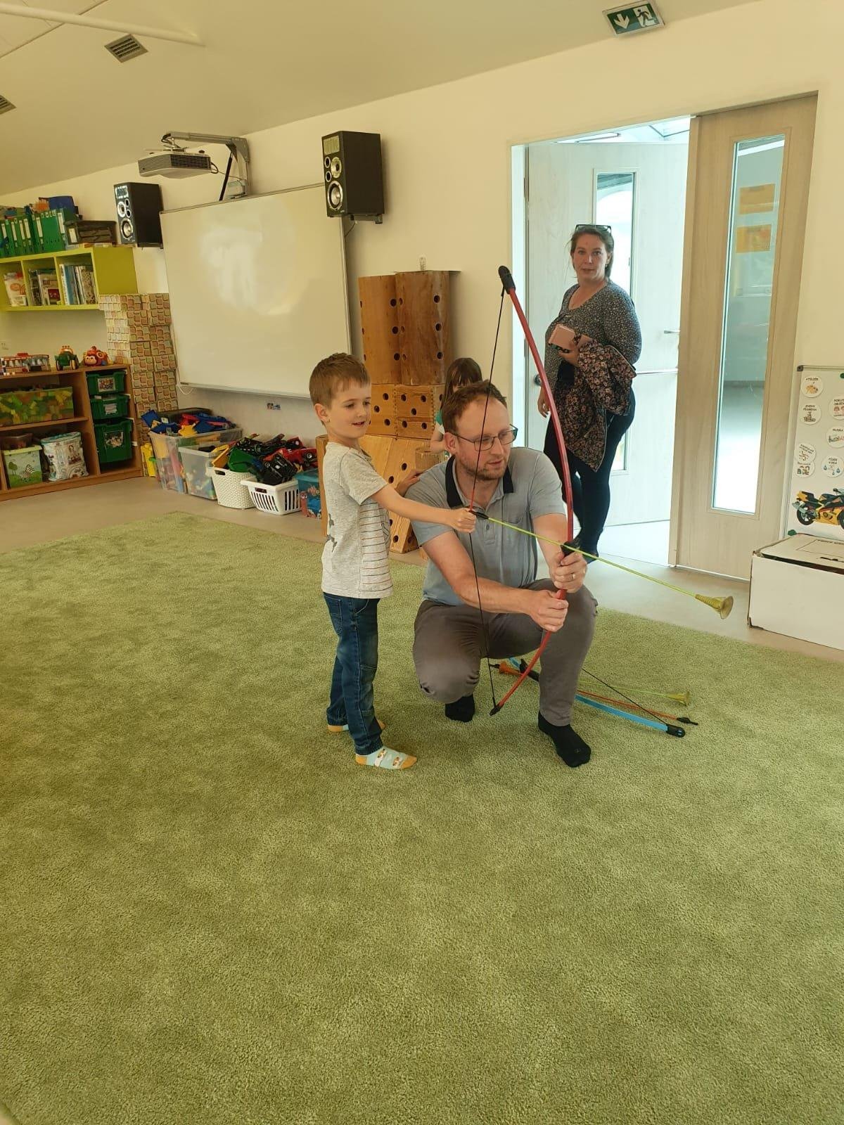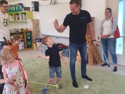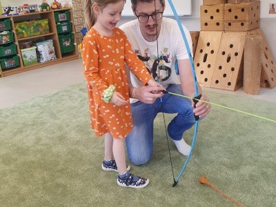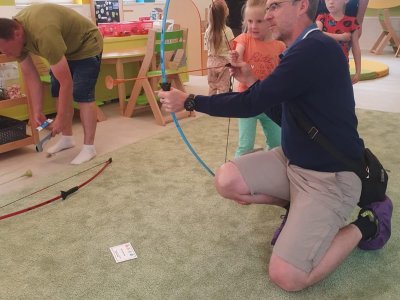 Dne 13.6.2023 jsme uspořádali ve školce akci ke Dni otců. Pro děti a tatínky byly připraveny tyto úkoly: zatloukání hřebíků, fotbal, střelba z luku, jízda na koníkovi a jako bonus nás navštívila Markétina dopravní výchova s ukázkou, jak se správně a bezpečně poutat při jízdě v autě. Děti si postupně splněné úkoly odškrtávaly a na závěr předaly svým tatínkům dáreček. :-)