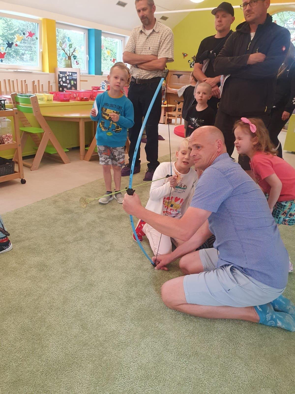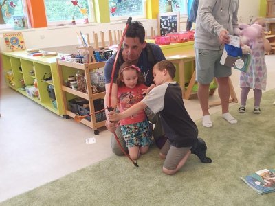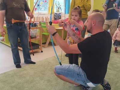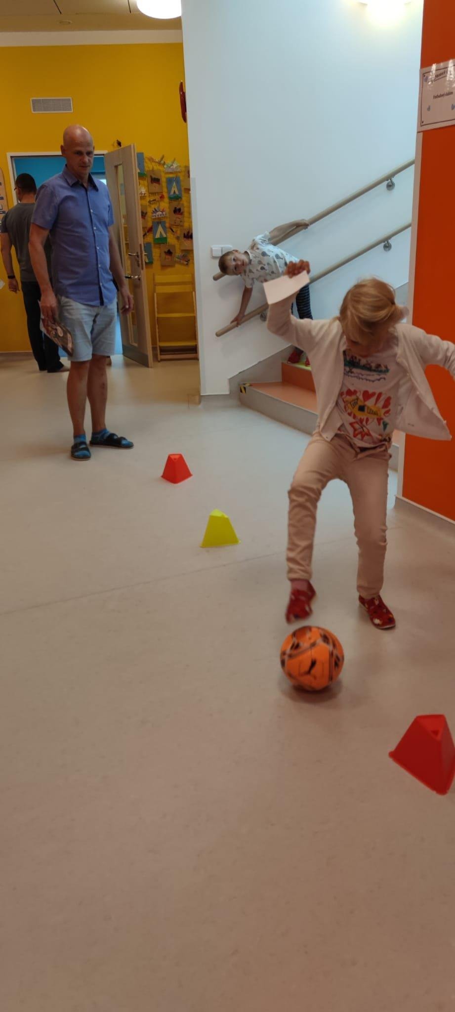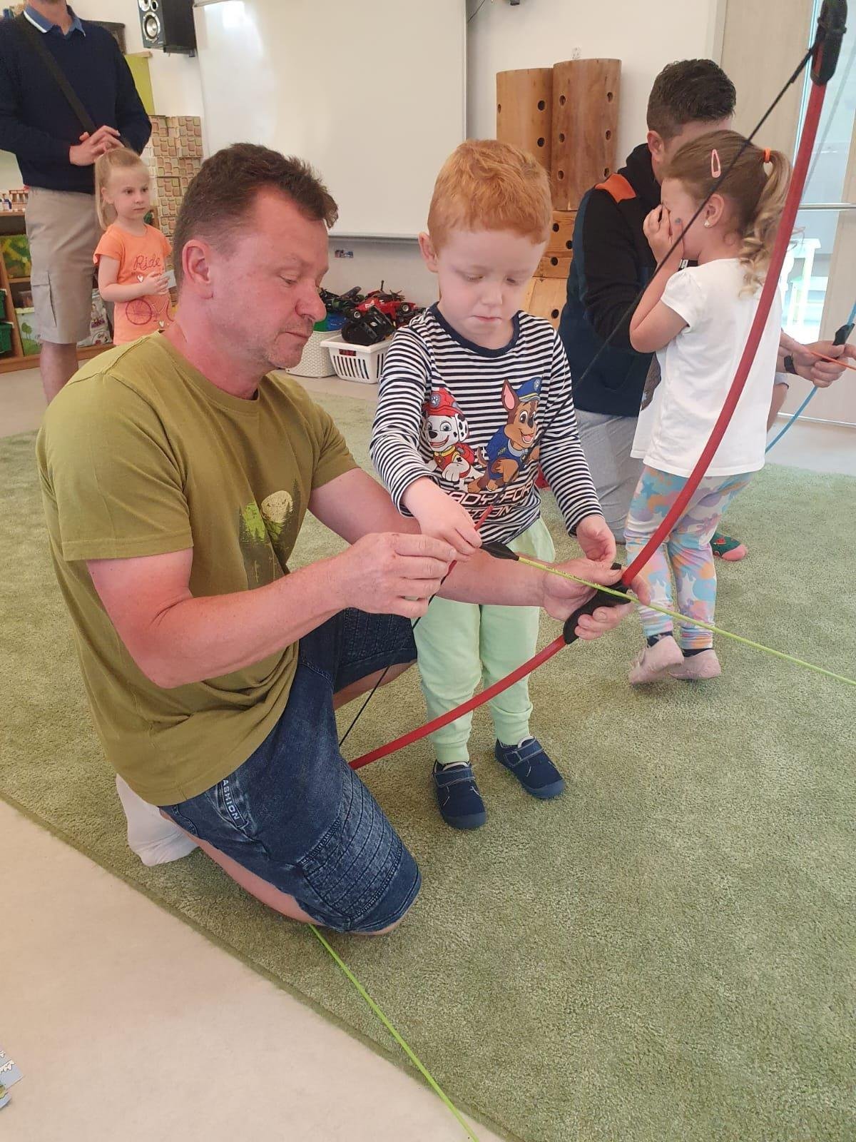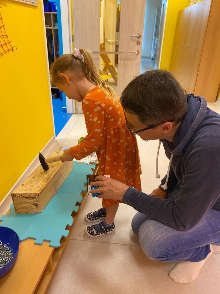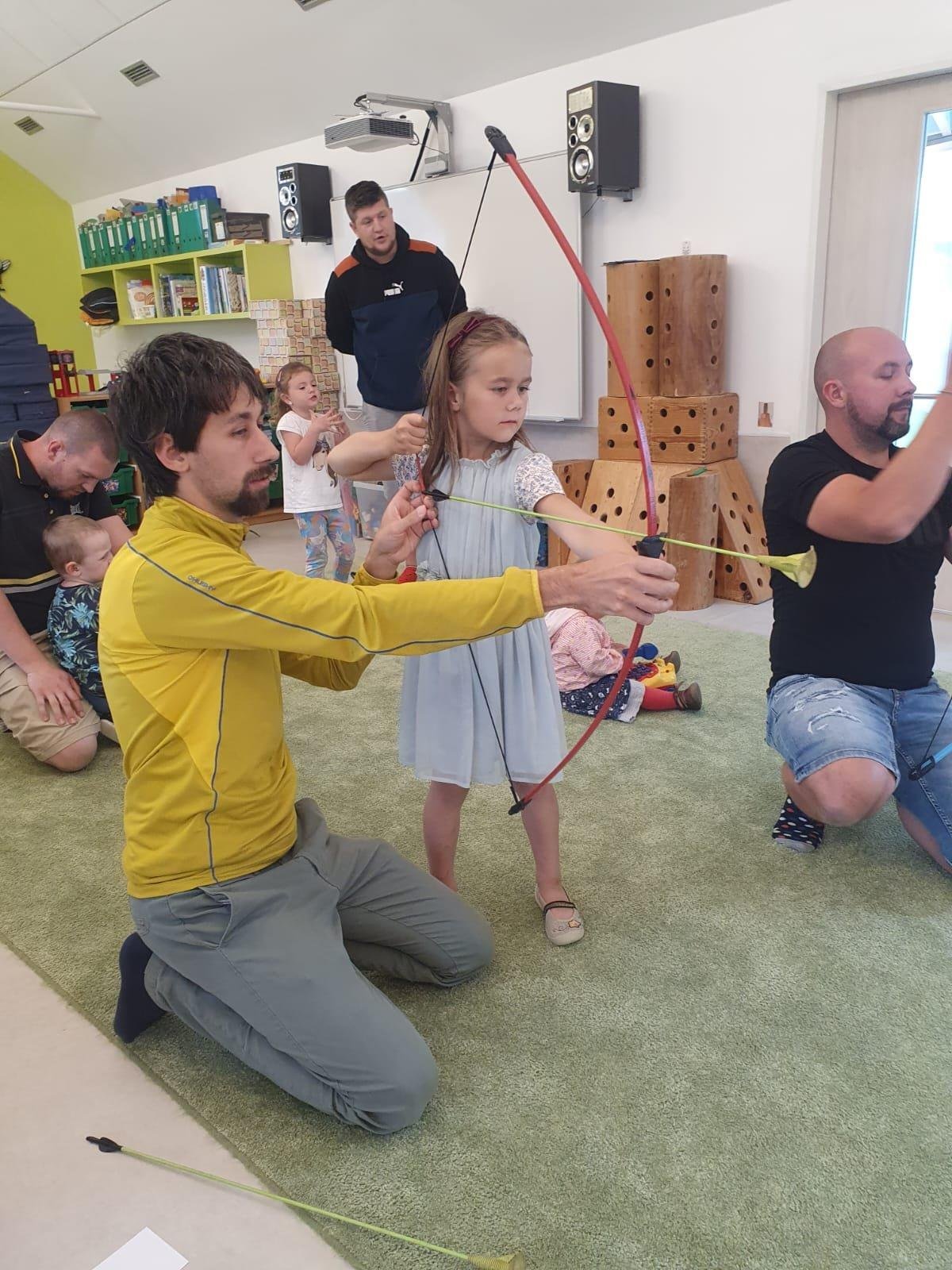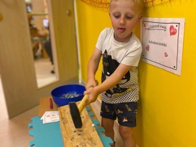Dne 13.6.2023 jsme uspořádali ve školce akci ke Dni otců. Pro děti a tatínky byly připraveny tyto úkoly: zatloukání hřebíků, fotbal, střelba z luku, jízda na koníkovi a jako bonus nás navštívila Markétina dopravní výchova s ukázkou, jak se správně a bezpečně poutat při jízdě v autě. Děti si postupně splněné úkoly odškrtávaly a na závěr předaly svým tatínkům dáreček. :-)