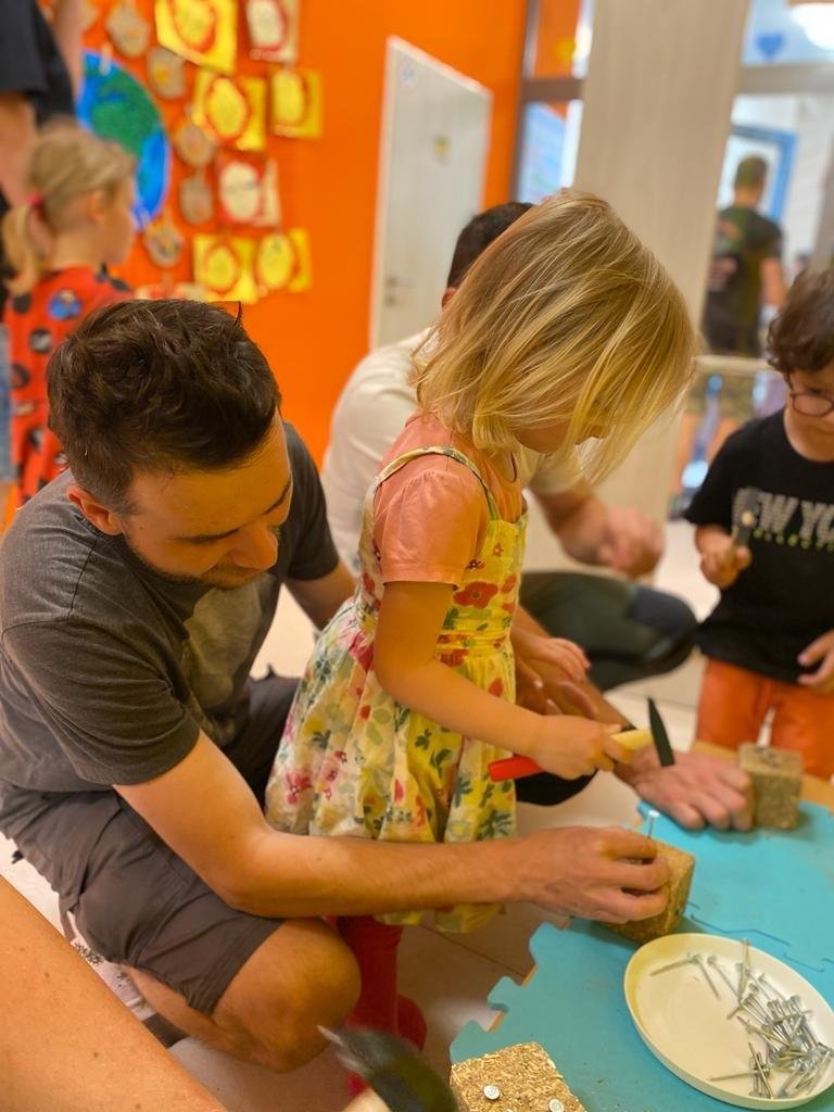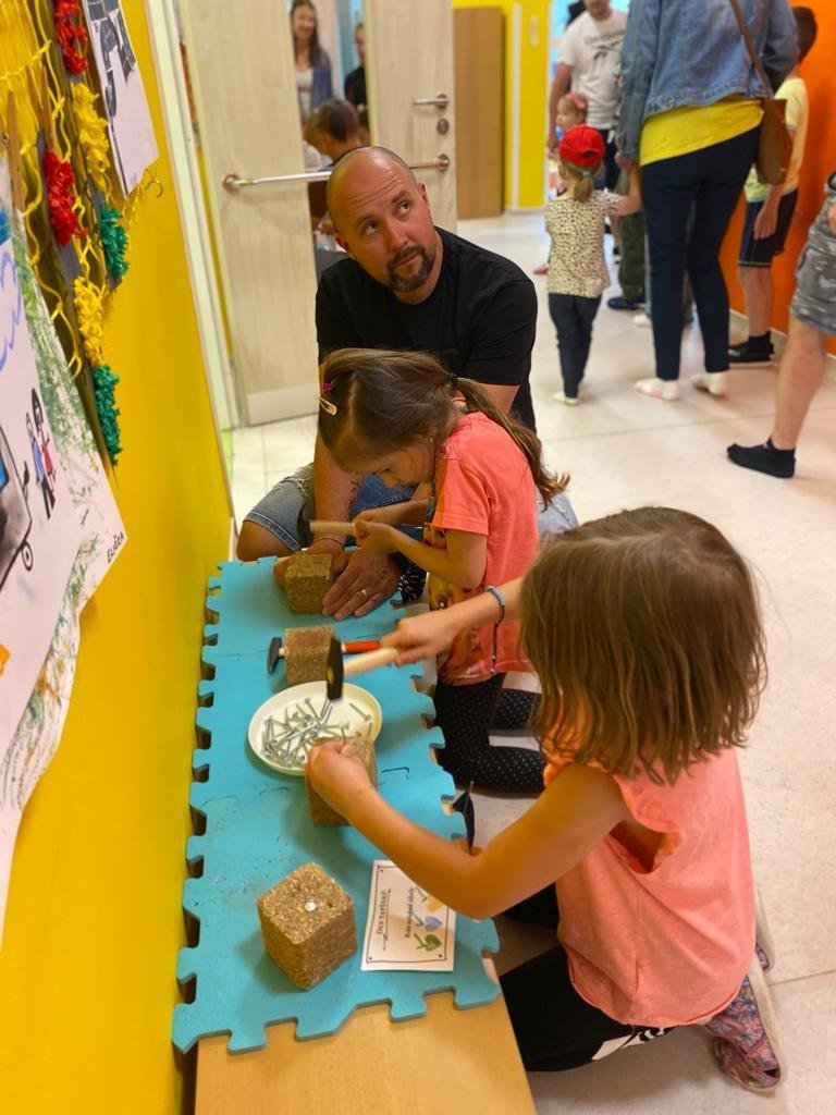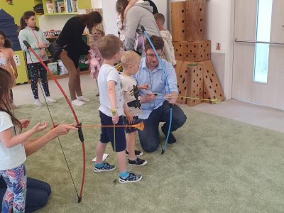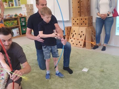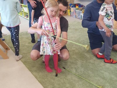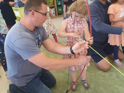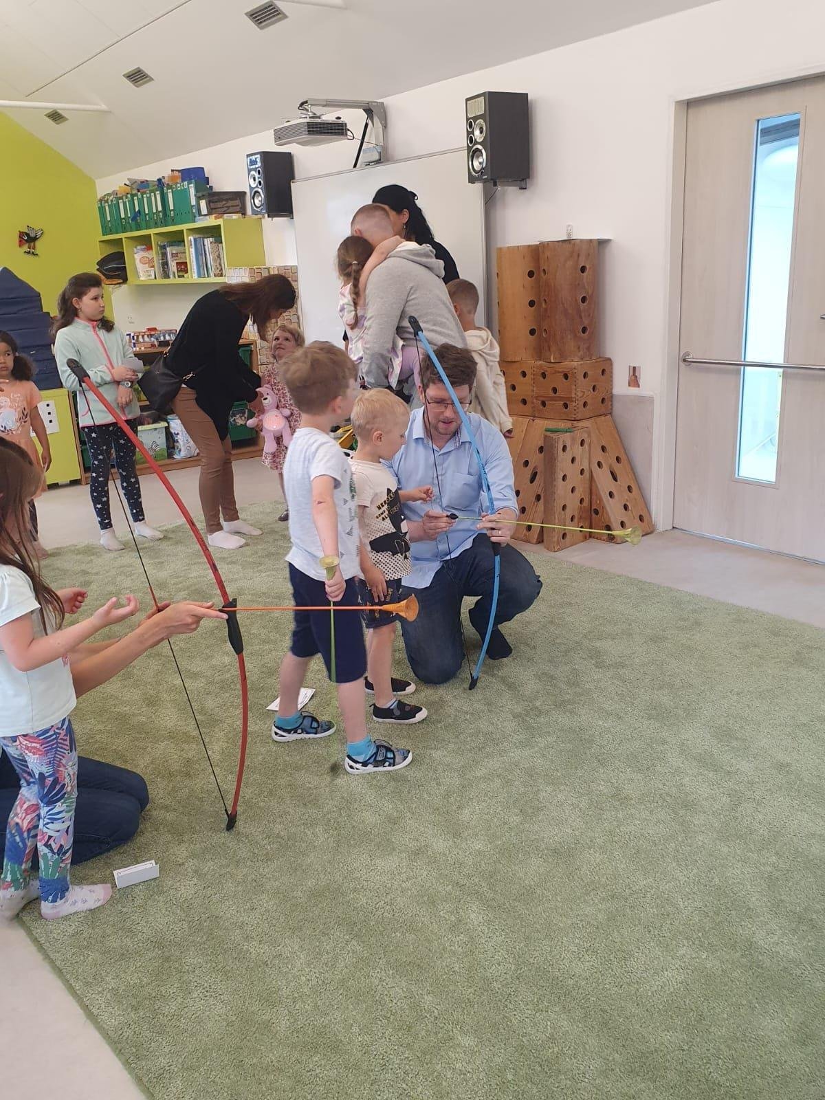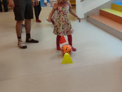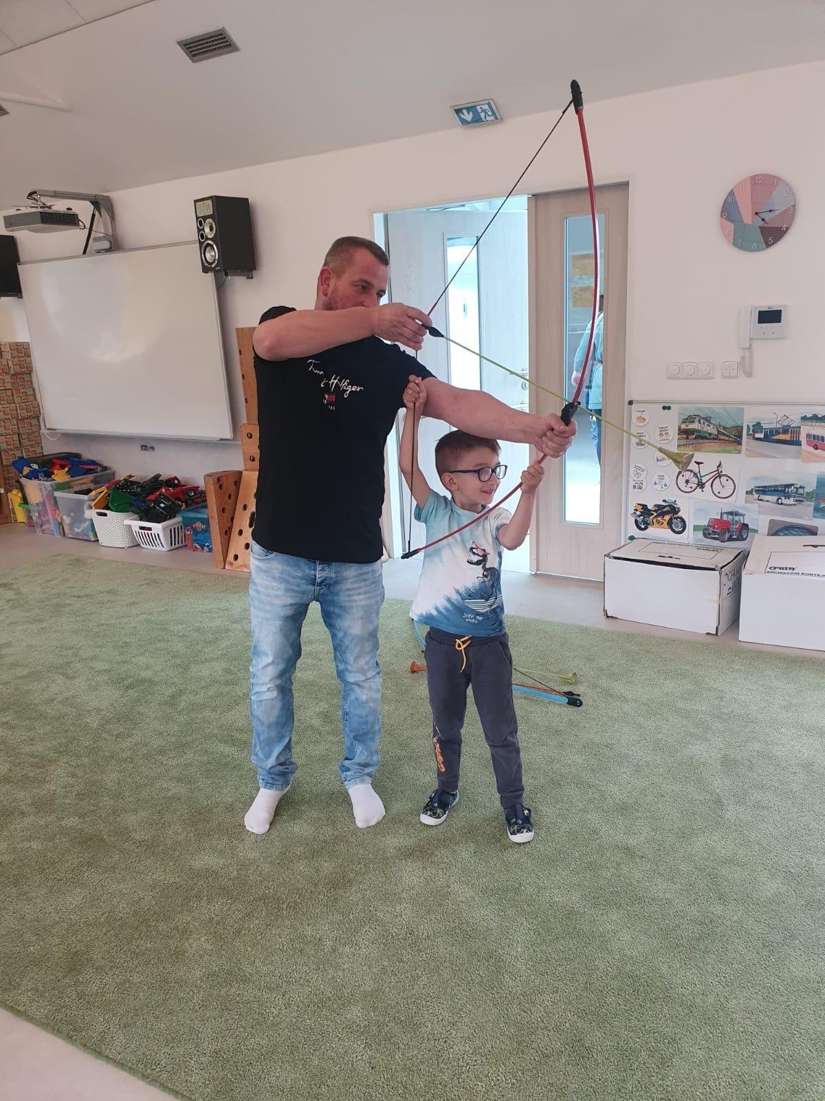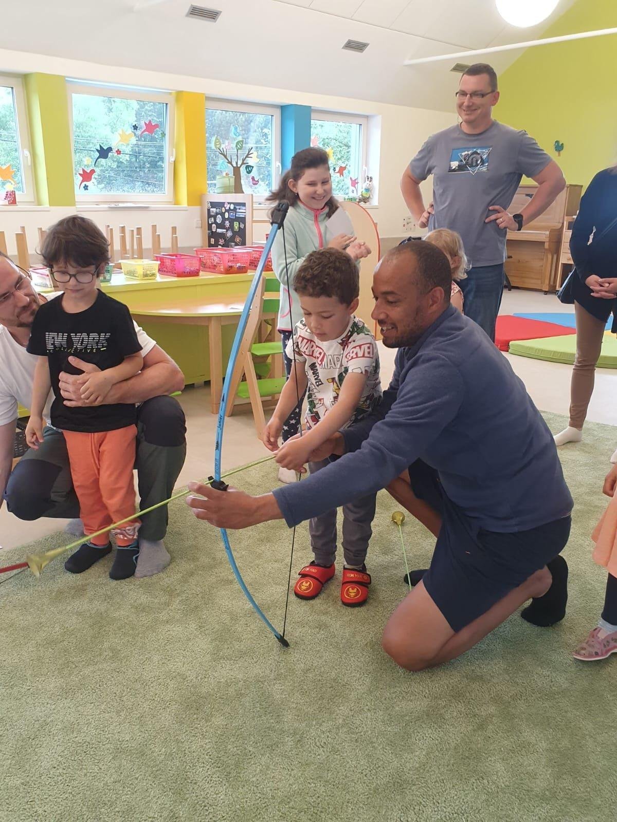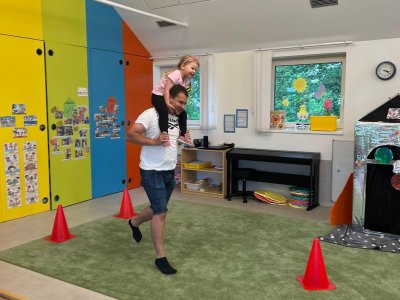 Dne 13.6.2023 jsme uspořádali ve školce akci ke Dni otců. Pro děti a tatínky byly připraveny tyto úkoly: zatloukání hřebíků, fotbal, střelba z luku, jízda na koníkovi a jako bonus nás navštívila Markétina dopravní výchova s ukázkou, jak se správně a bezpečně poutat při jízdě v autě. Děti si postupně splněné úkoly odškrtávaly a na závěr předaly svým tatínkům dáreček. :-)