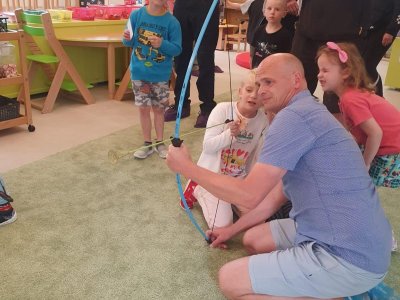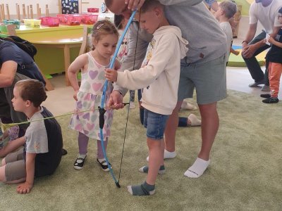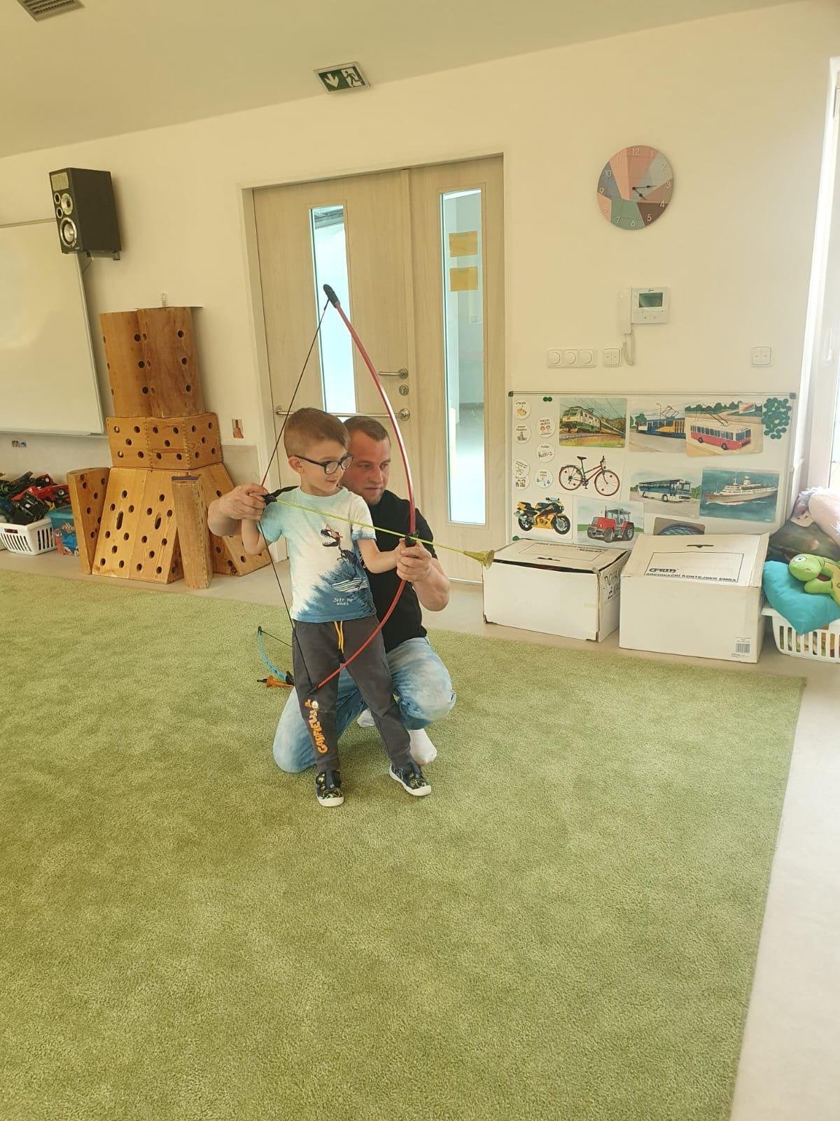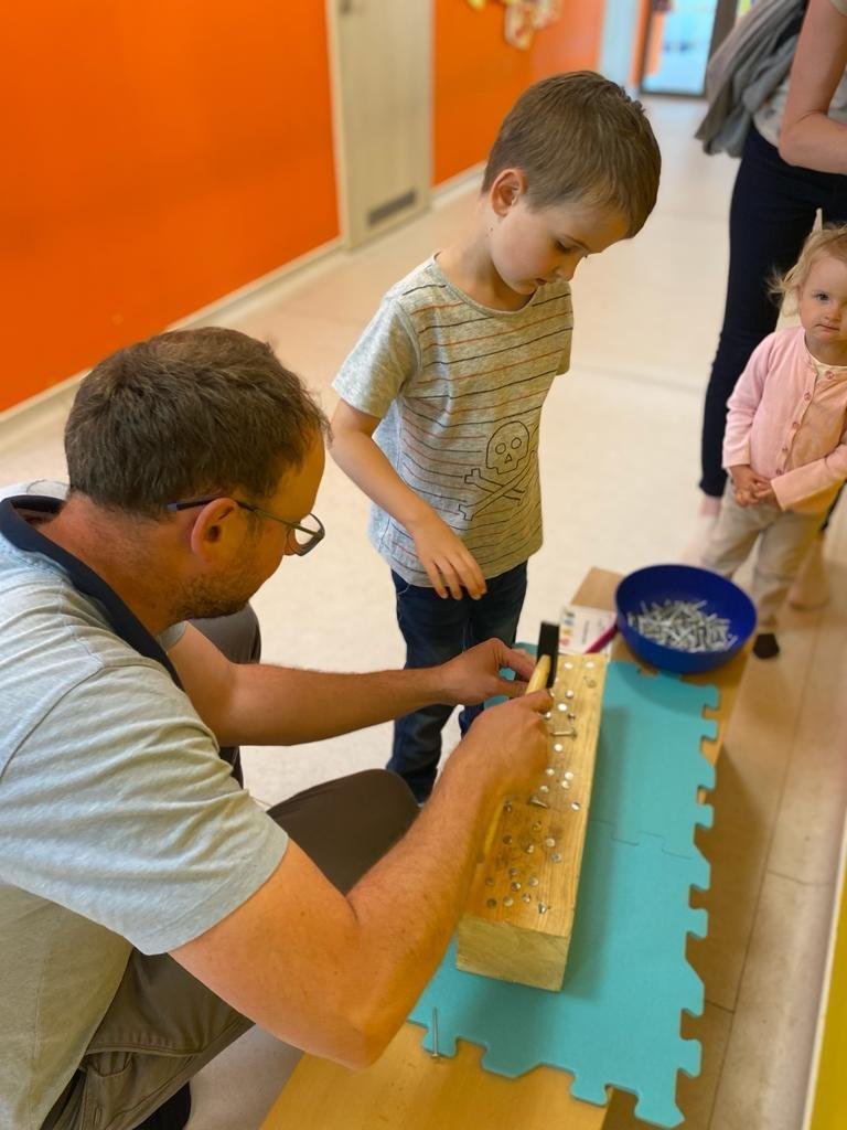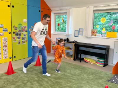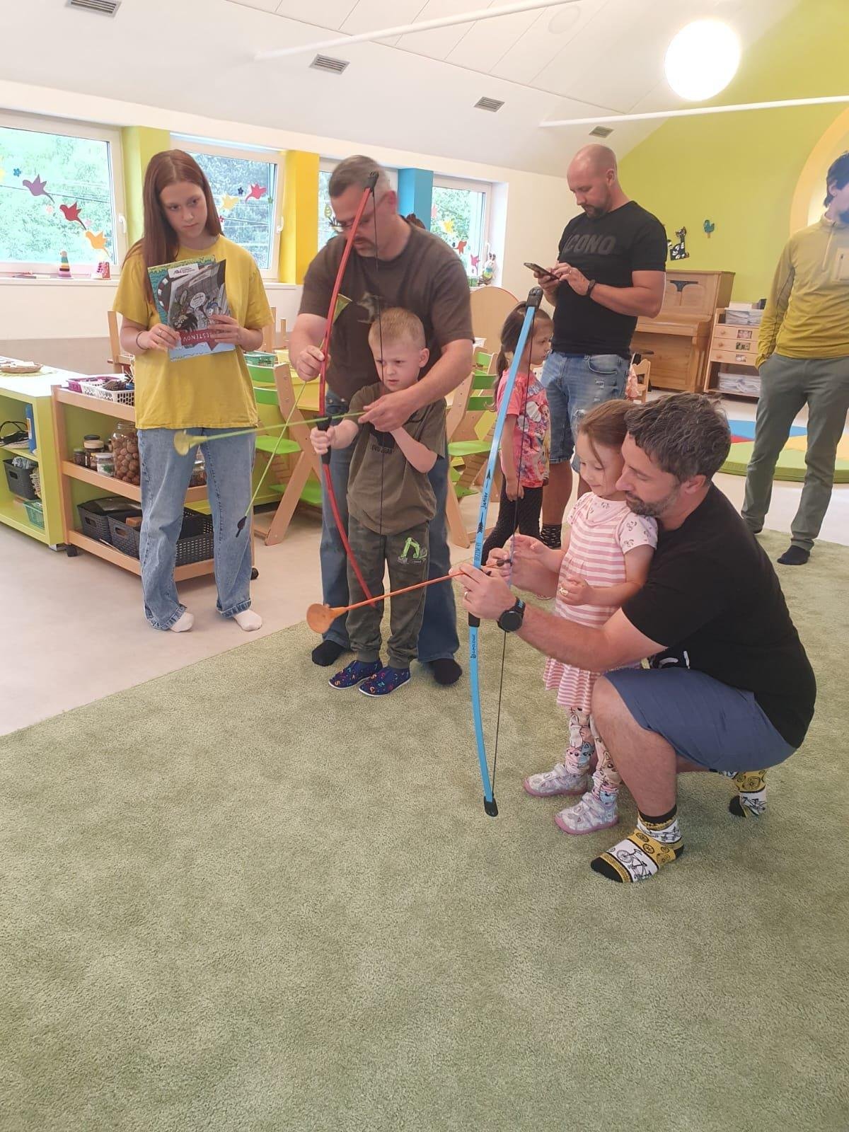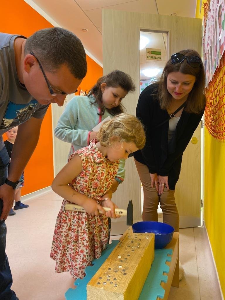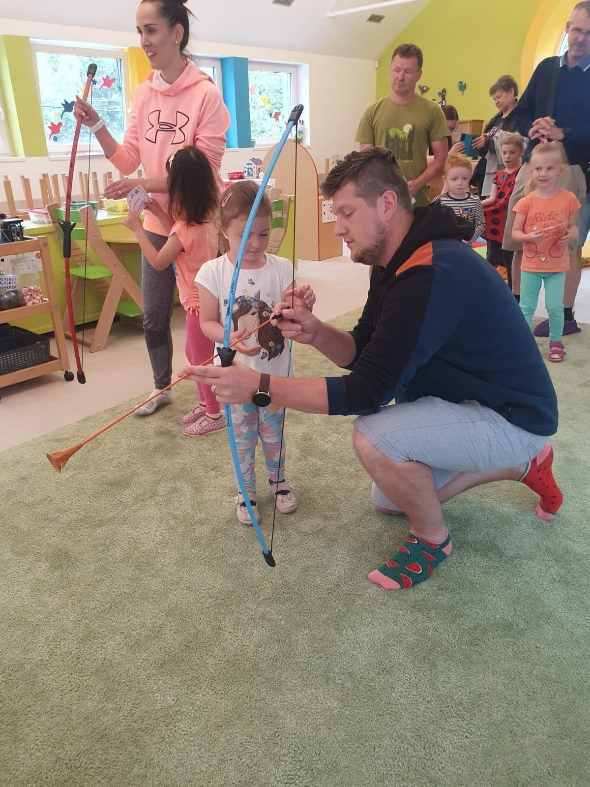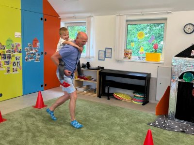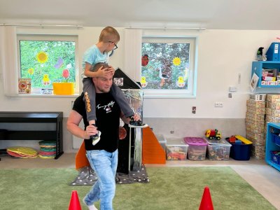 Dne 13.6.2023 jsme uspořádali ve školce akci ke Dni otců. Pro děti a tatínky byly připraveny tyto úkoly: zatloukání hřebíků, fotbal, střelba z luku, jízda na koníkovi a jako bonus nás navštívila Markétina dopravní výchova s ukázkou, jak se správně a bezpečně poutat při jízdě v autě. Děti si postupně splněné úkoly odškrtávaly a na závěr předaly svým tatínkům dáreček. :-)