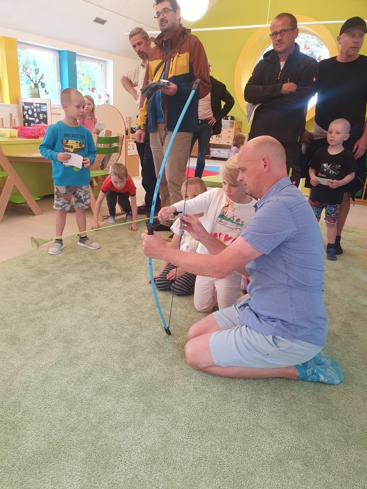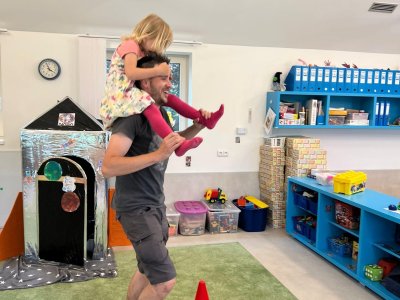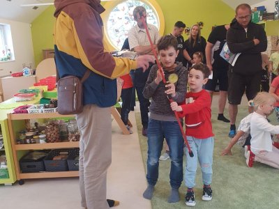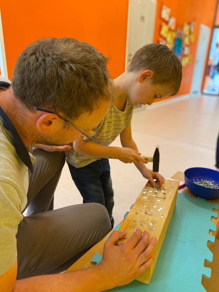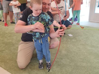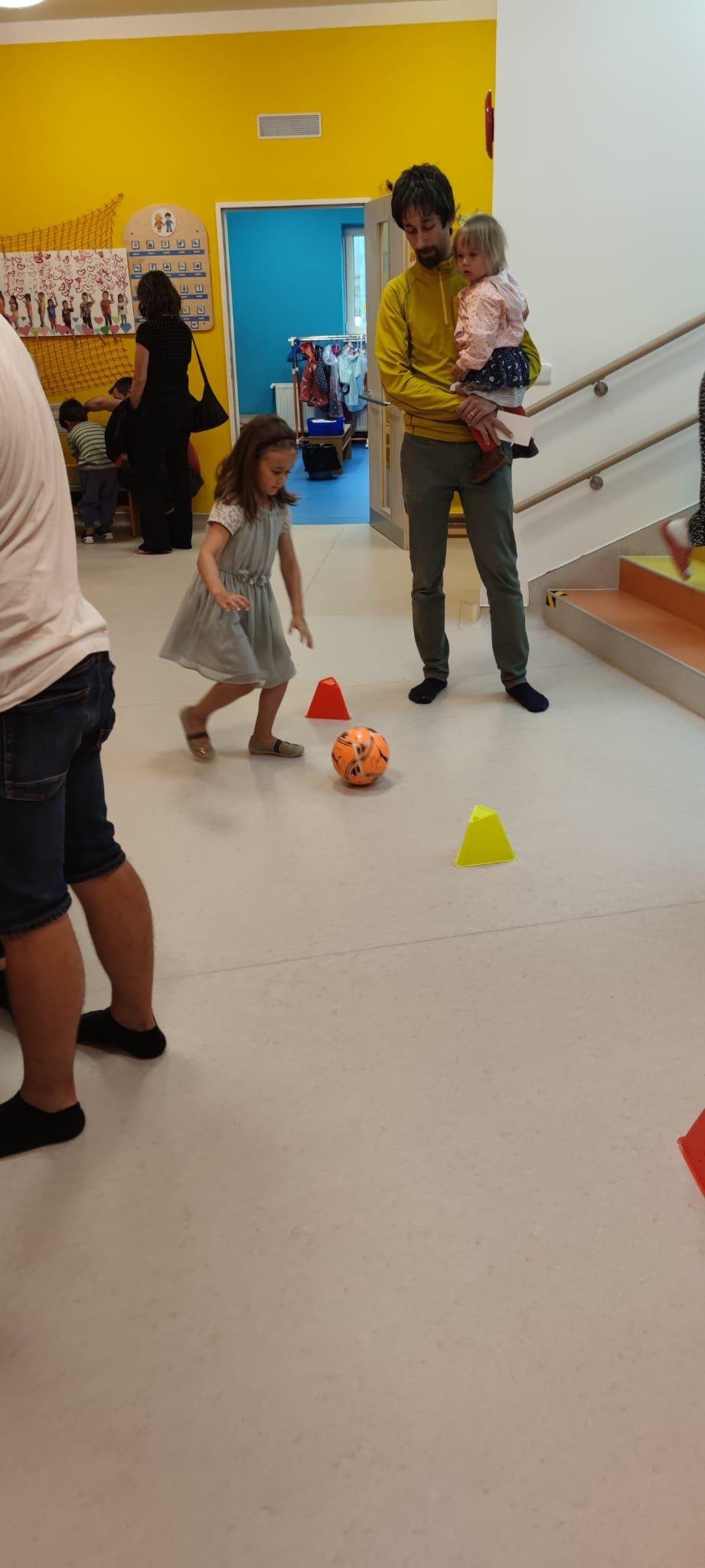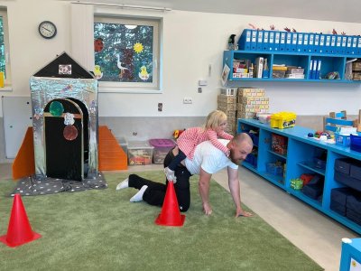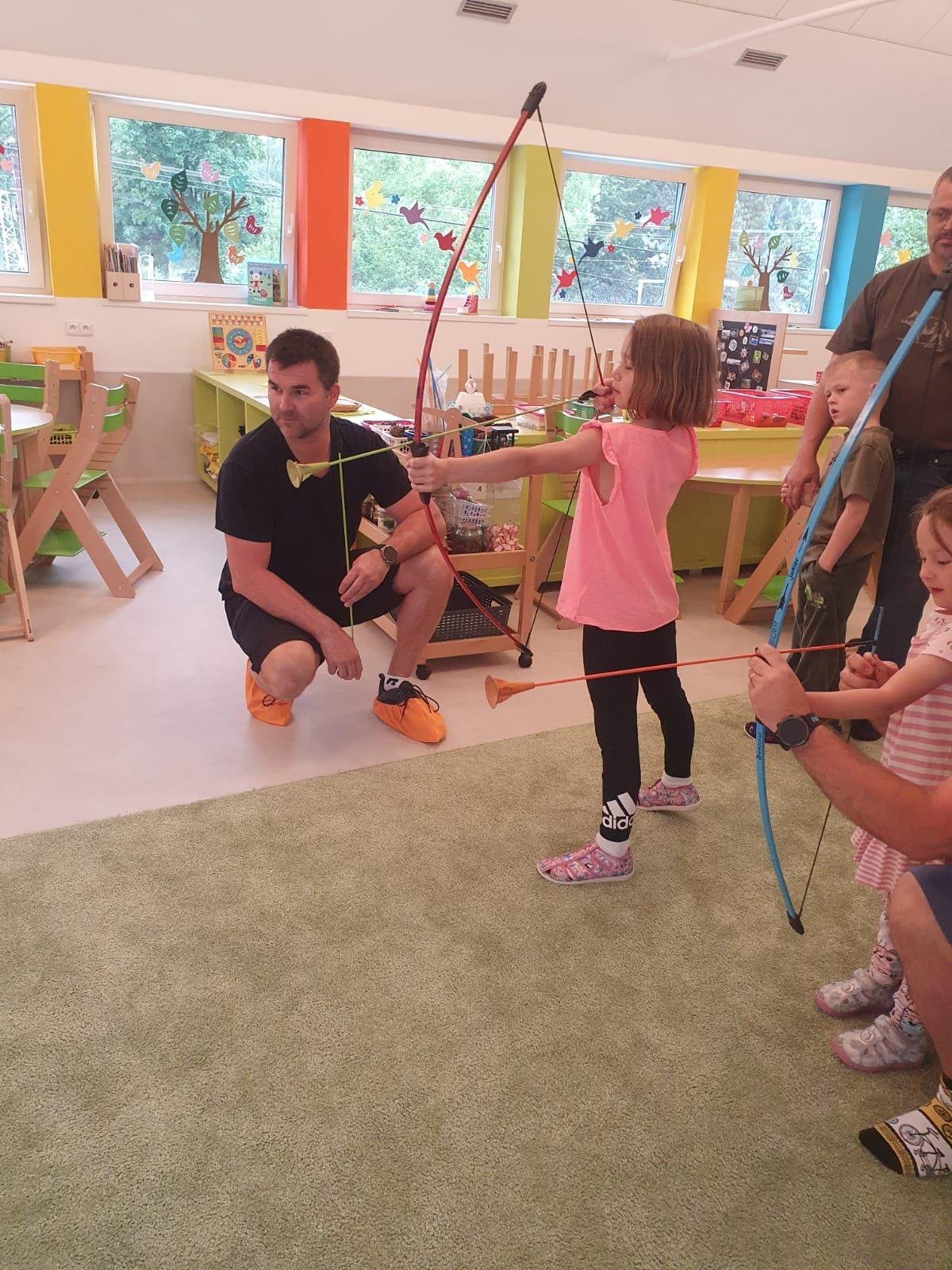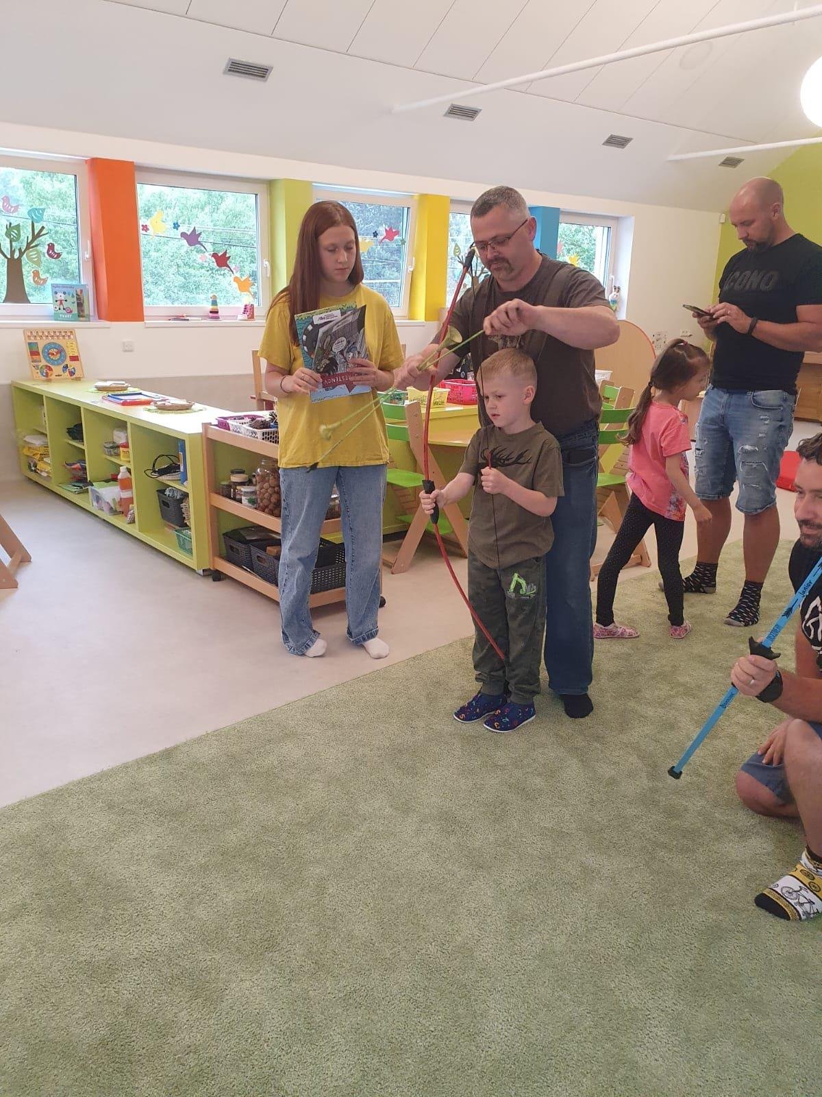 Dne 13.6.2023 jsme uspořádali ve školce akci ke Dni otců. Pro děti a tatínky byly připraveny tyto úkoly: zatloukání hřebíků, fotbal, střelba z luku, jízda na koníkovi a jako bonus nás navštívila Markétina dopravní výchova s ukázkou, jak se správně a bezpečně poutat při jízdě v autě. Děti si postupně splněné úkoly odškrtávaly a na závěr předaly svým tatínkům dáreček. :-)