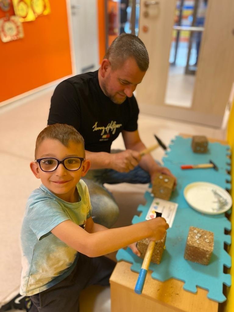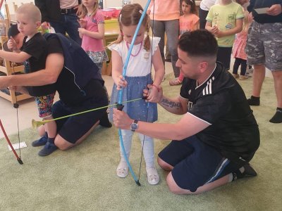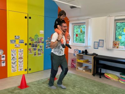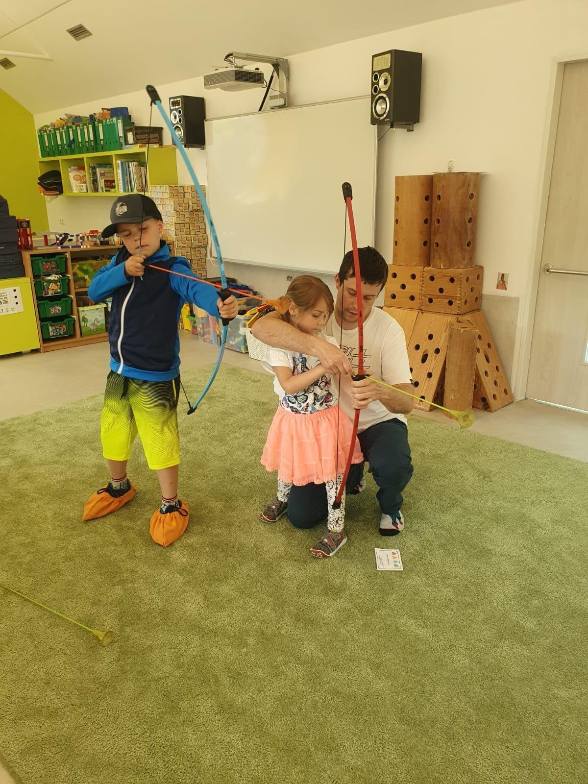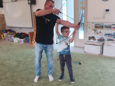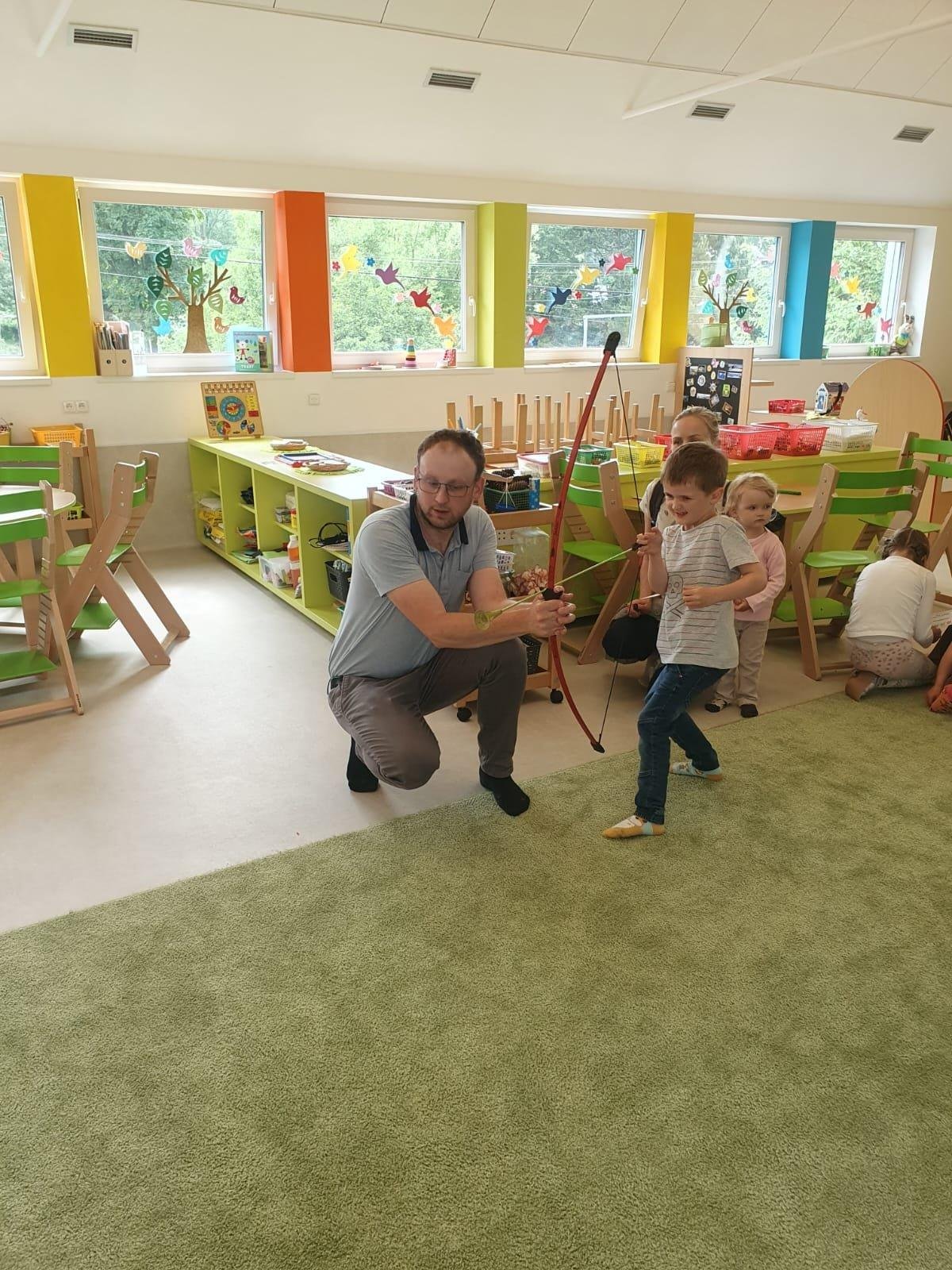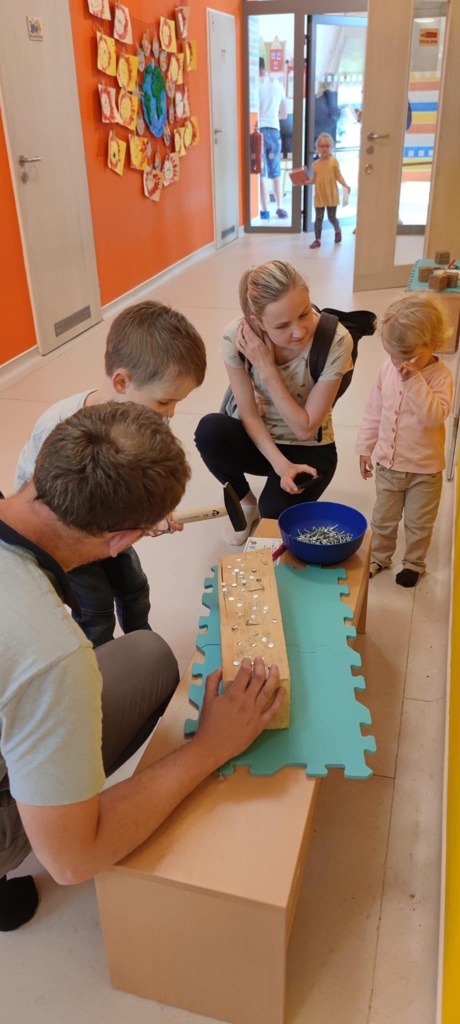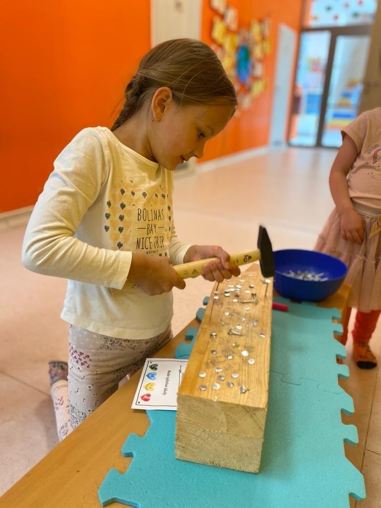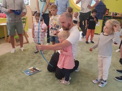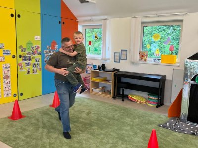 Dne 13.6.2023 jsme uspořádali ve školce akci ke Dni otců. Pro děti a tatínky byly připraveny tyto úkoly: zatloukání hřebíků, fotbal, střelba z luku, jízda na koníkovi a jako bonus nás navštívila Markétina dopravní výchova s ukázkou, jak se správně a bezpečně poutat při jízdě v autě. Děti si postupně splněné úkoly odškrtávaly a na závěr předaly svým tatínkům dáreček. :-)