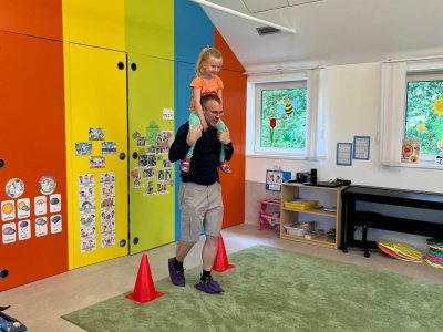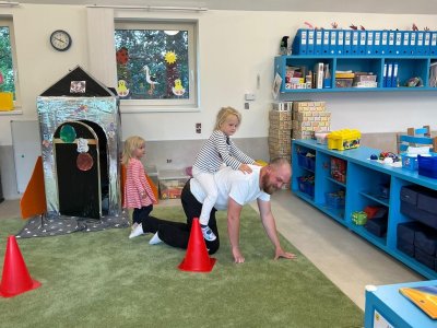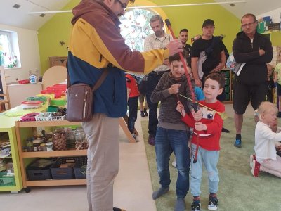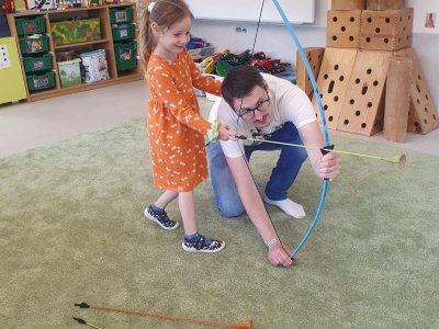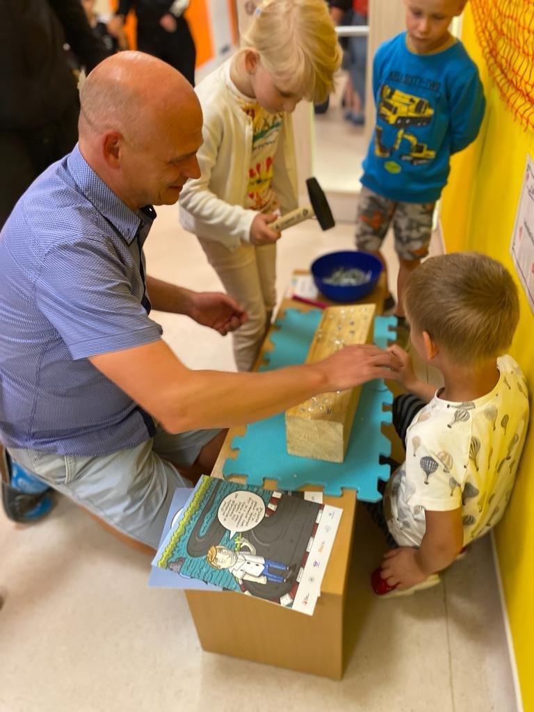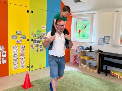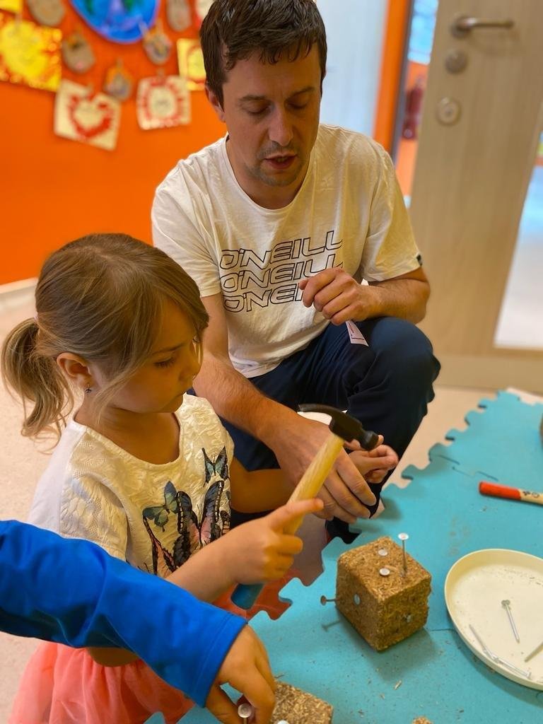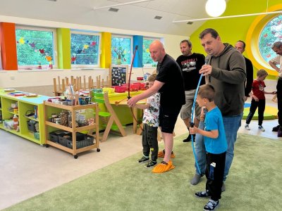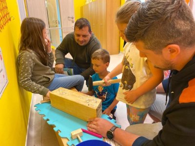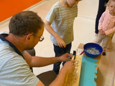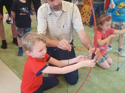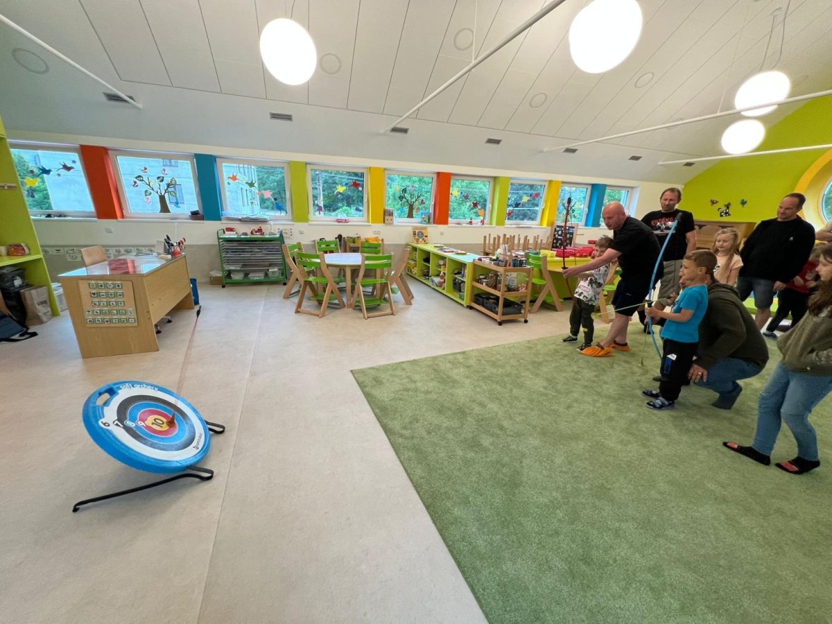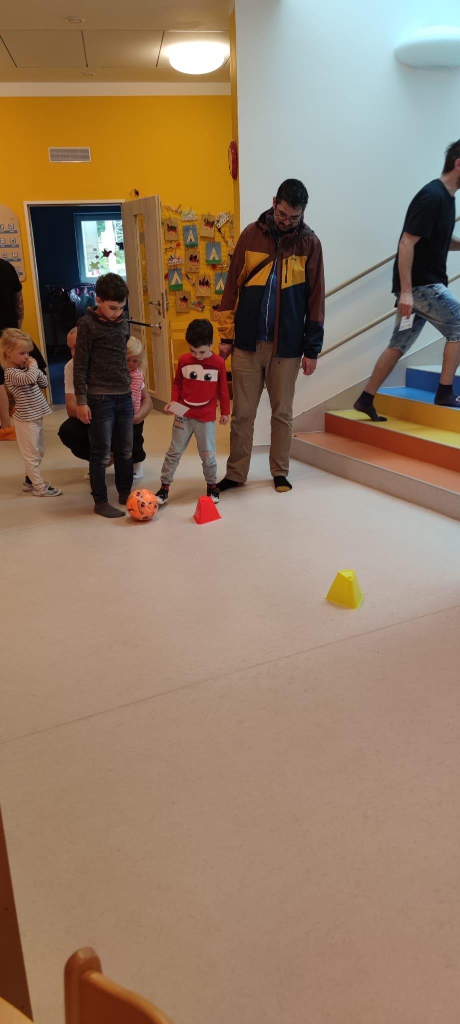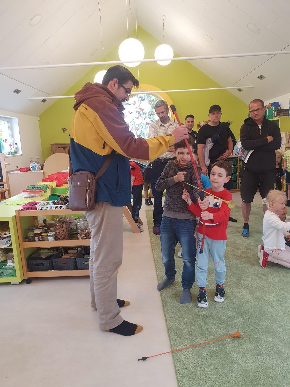 Dne 13.6.2023 jsme uspořádali ve školce akci ke Dni otců. Pro děti a tatínky byly připraveny tyto úkoly: zatloukání hřebíků, fotbal, střelba z luku, jízda na koníkovi a jako bonus nás navštívila Markétina dopravní výchova s ukázkou, jak se správně a bezpečně poutat při jízdě v autě. Děti si postupně splněné úkoly odškrtávaly a na závěr předaly svým tatínkům dáreček. :-)