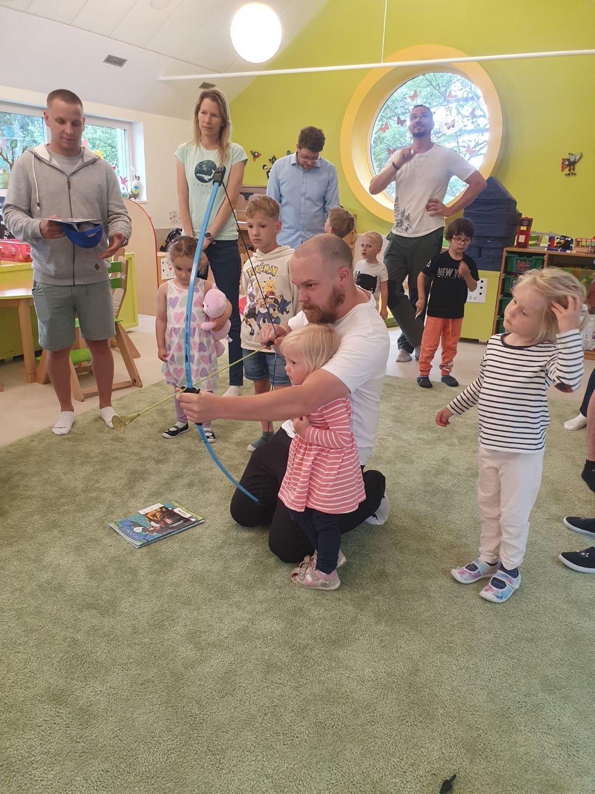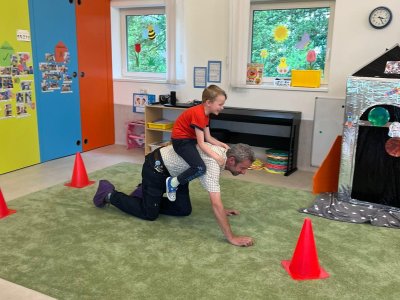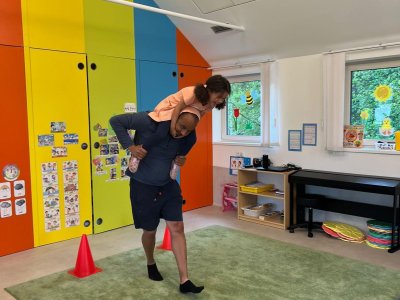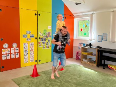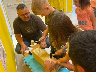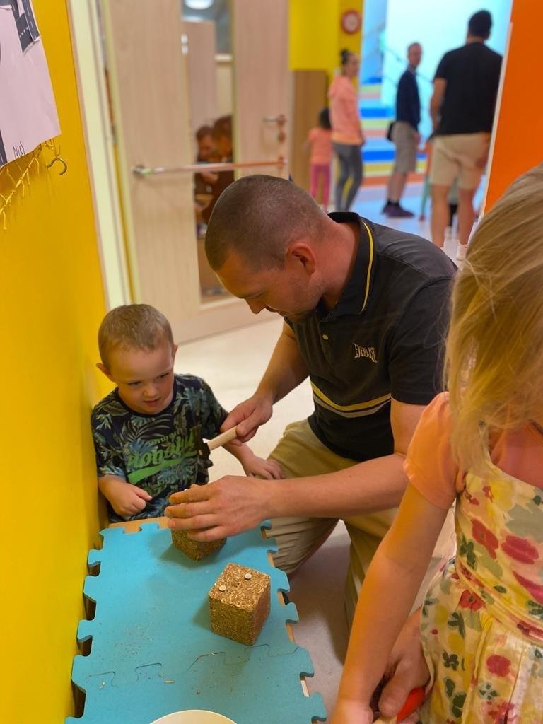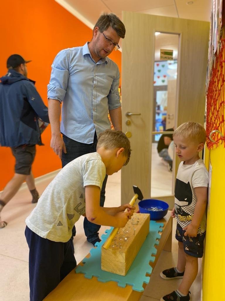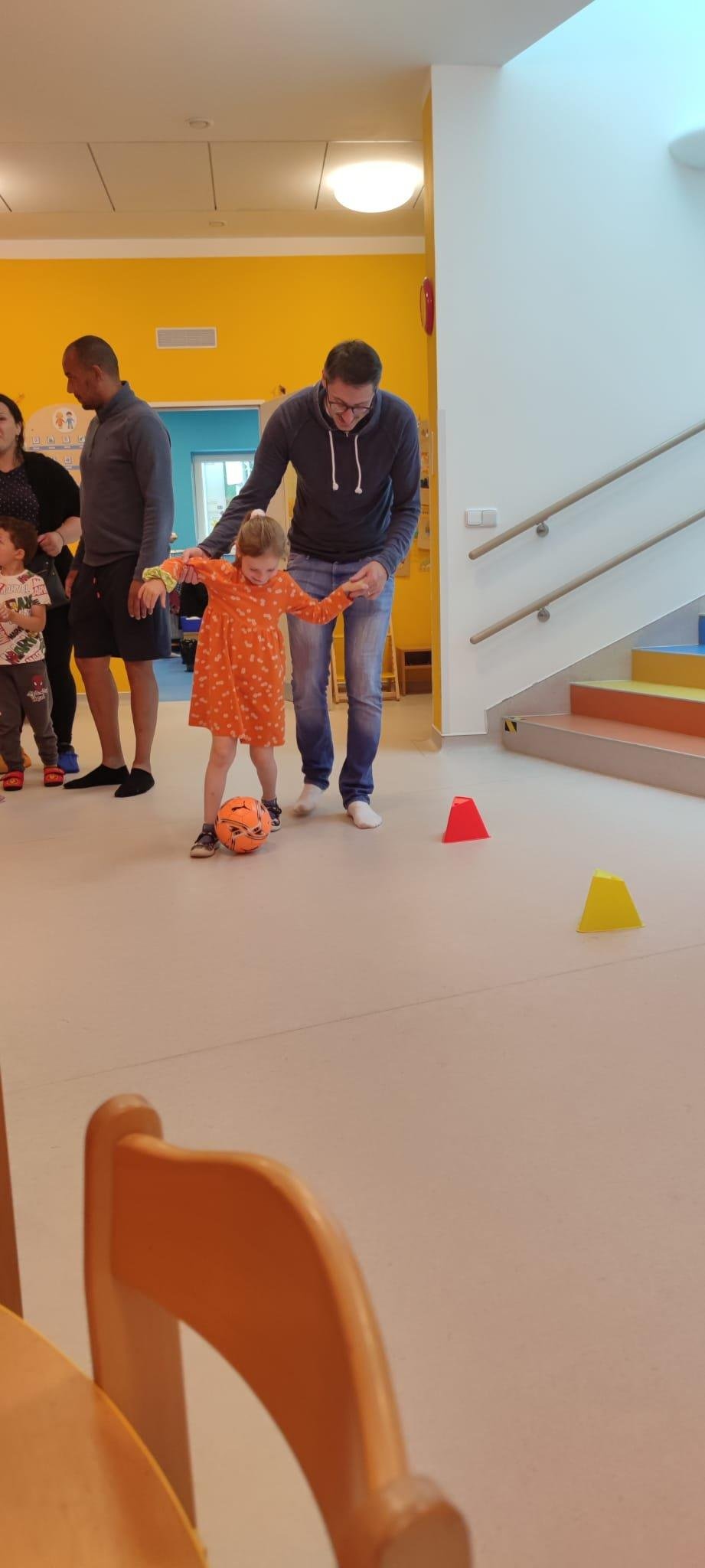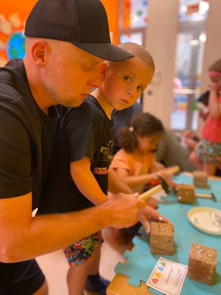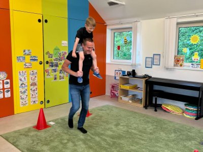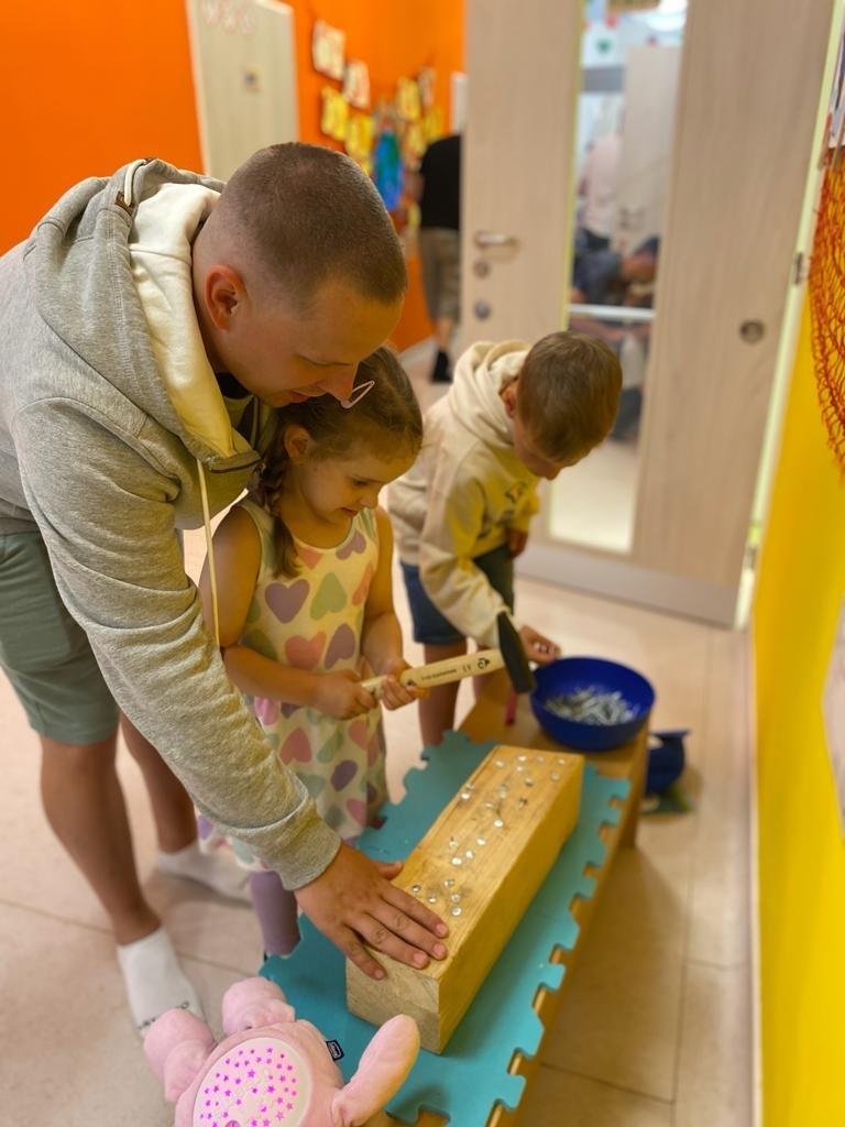 Dne 13.6.2023 jsme uspořádali ve školce akci ke Dni otců. Pro děti a tatínky byly připraveny tyto úkoly: zatloukání hřebíků, fotbal, střelba z luku, jízda na koníkovi a jako bonus nás navštívila Markétina dopravní výchova s ukázkou, jak se správně a bezpečně poutat při jízdě v autě. Děti si postupně splněné úkoly odškrtávaly a na závěr předaly svým tatínkům dáreček. :-)