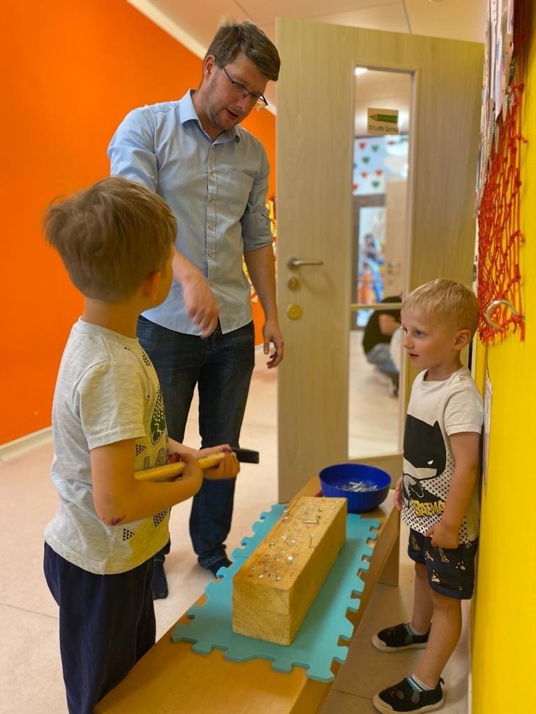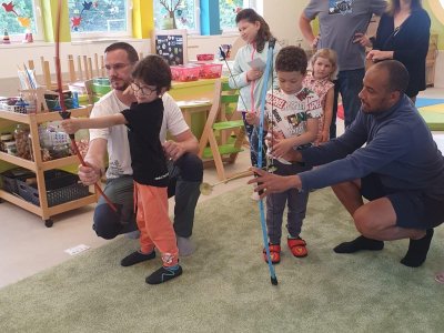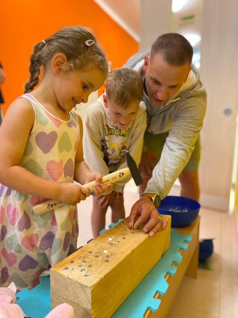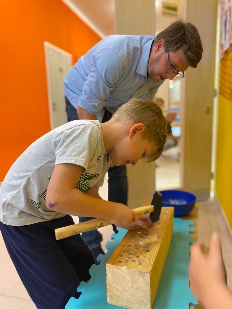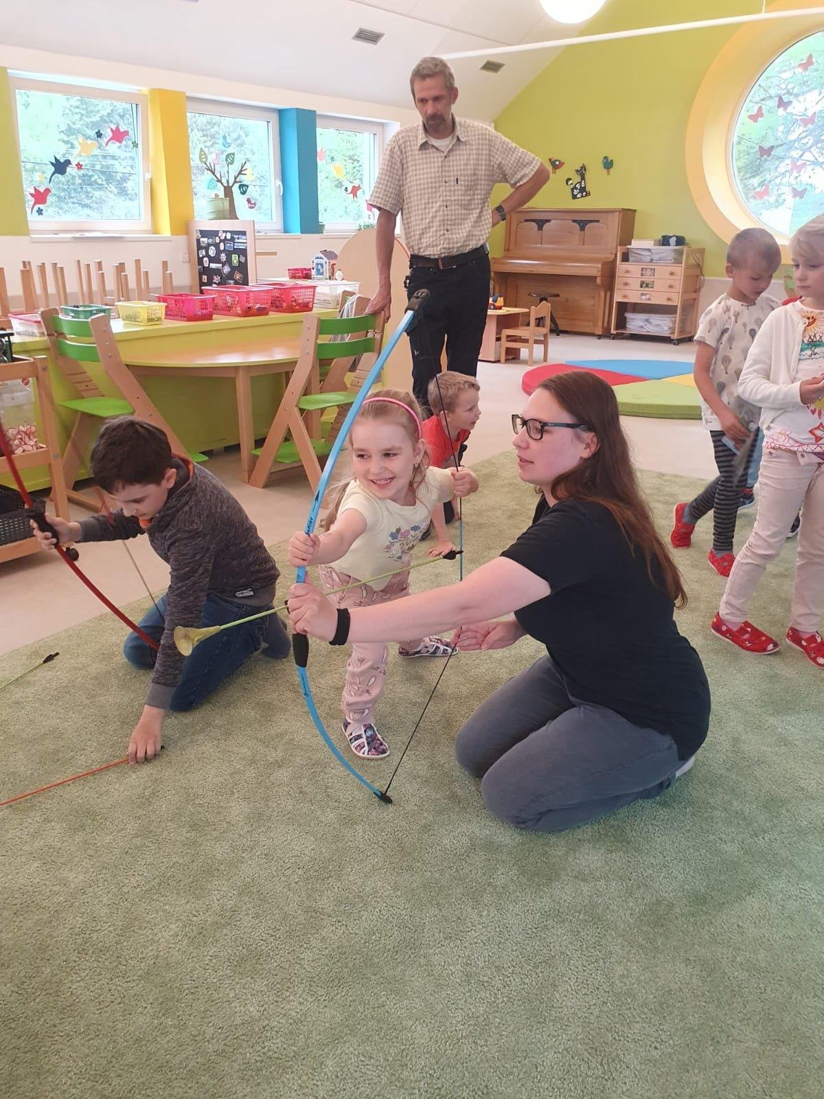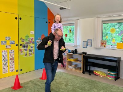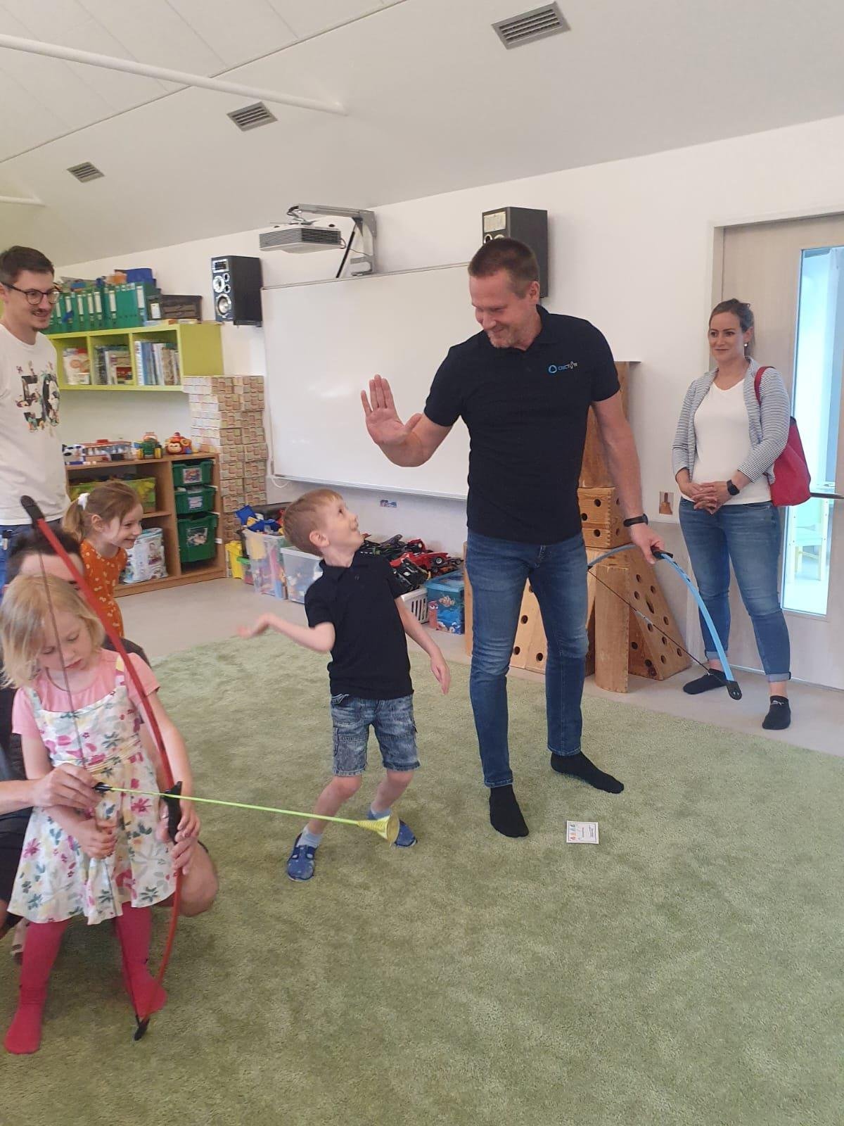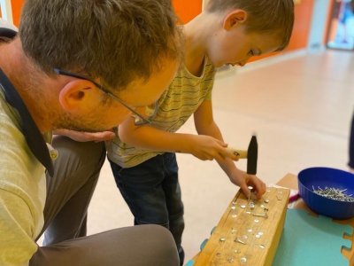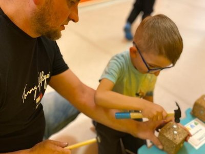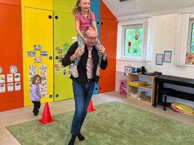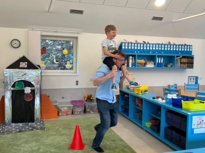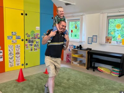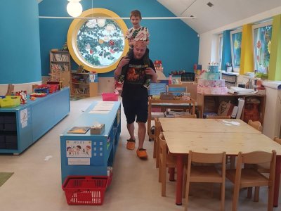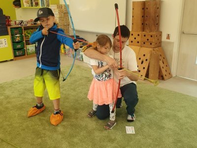 Dne 13.6.2023 jsme uspořádali ve školce akci ke Dni otců. Pro děti a tatínky byly připraveny tyto úkoly: zatloukání hřebíků, fotbal, střelba z luku, jízda na koníkovi a jako bonus nás navštívila Markétina dopravní výchova s ukázkou, jak se správně a bezpečně poutat při jízdě v autě. Děti si postupně splněné úkoly odškrtávaly a na závěr předaly svým tatínkům dáreček. :-)