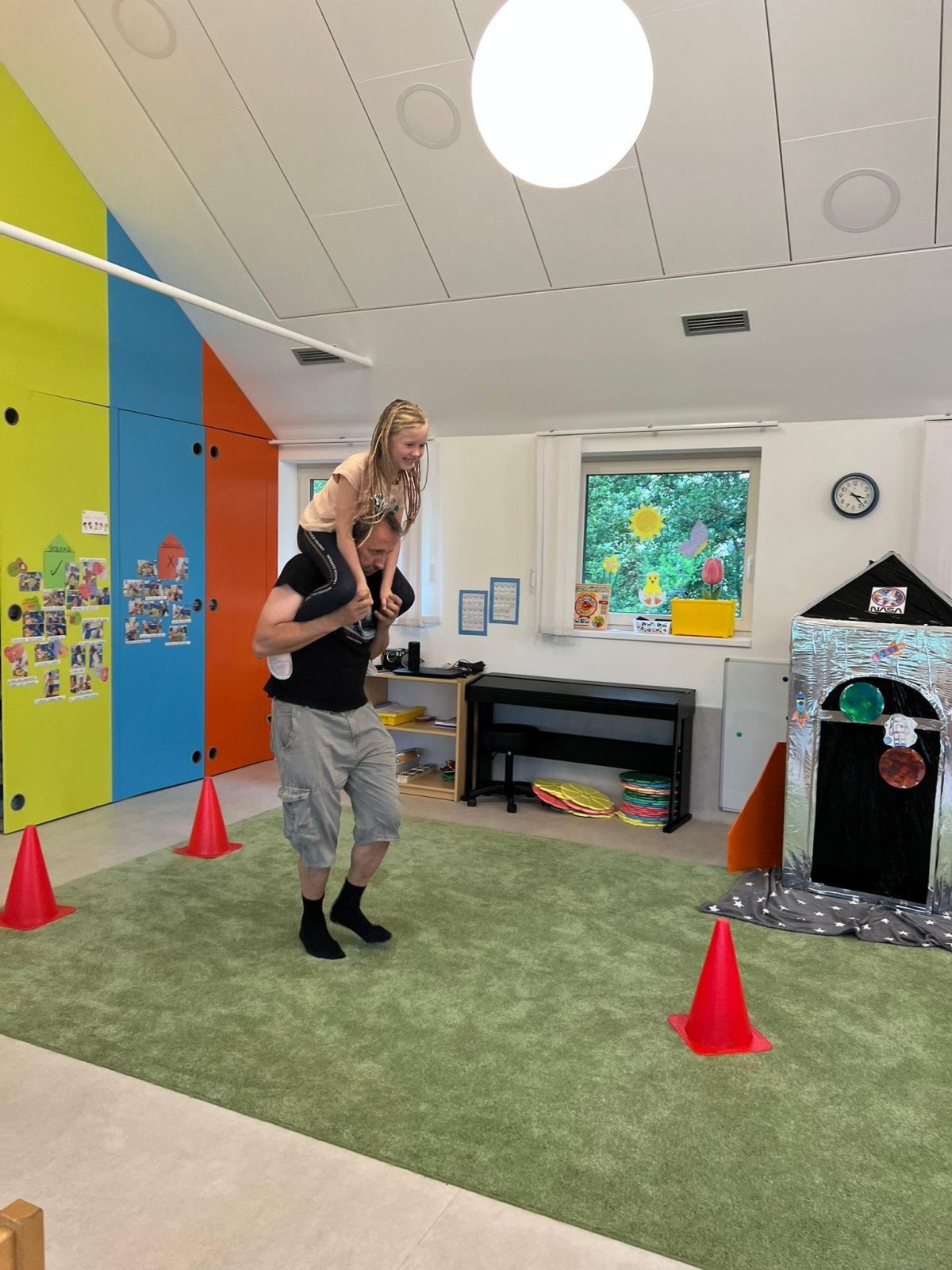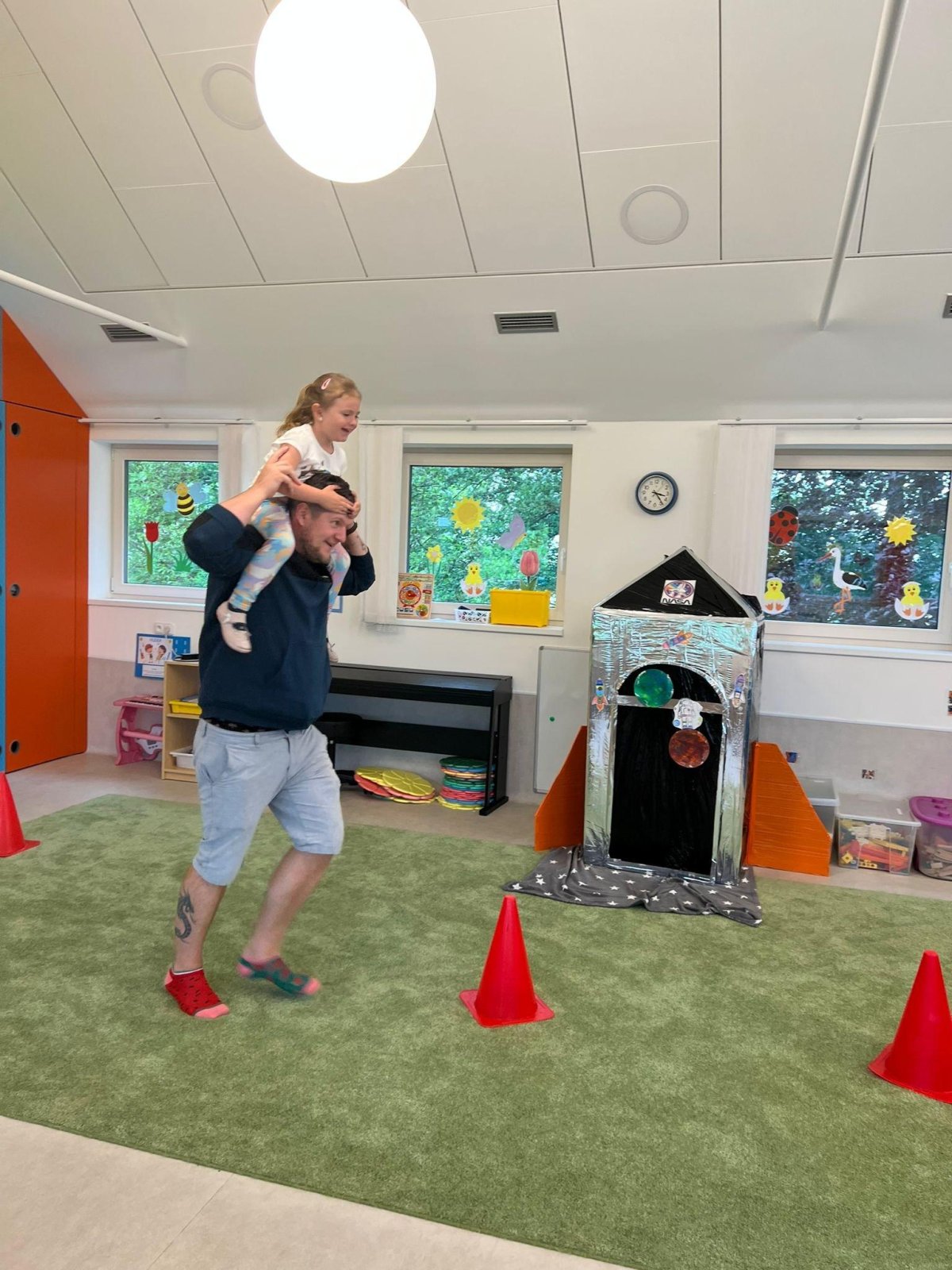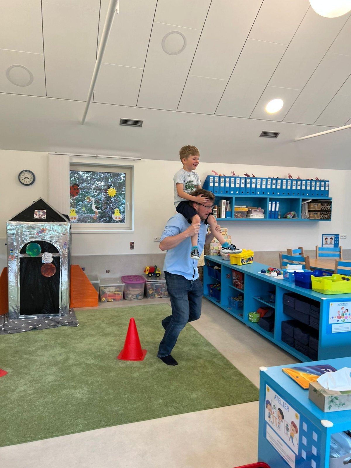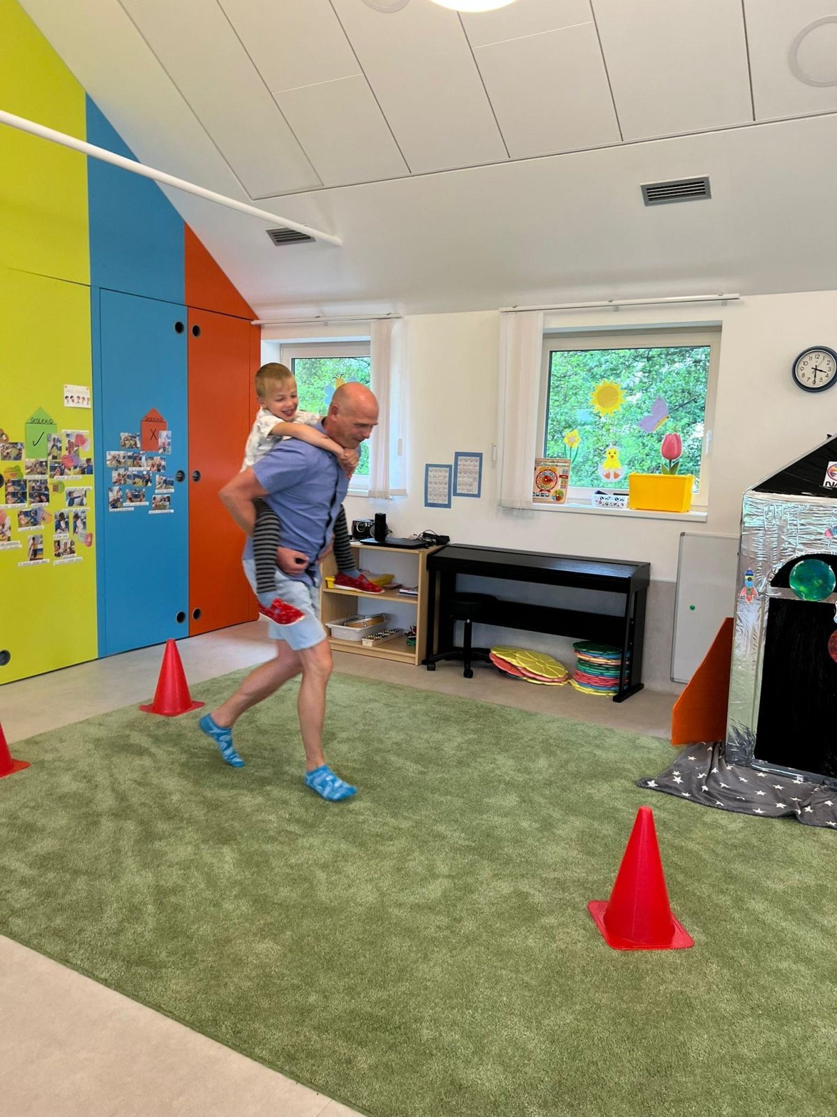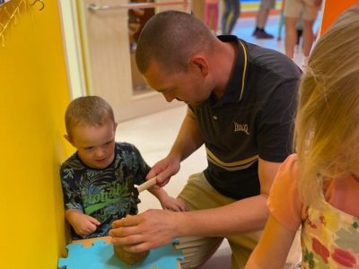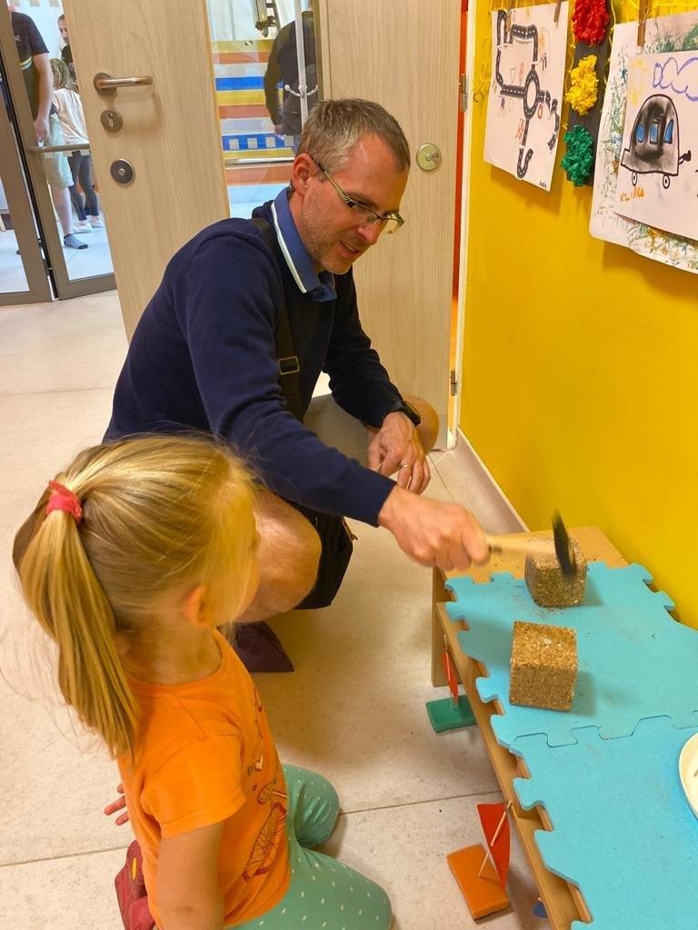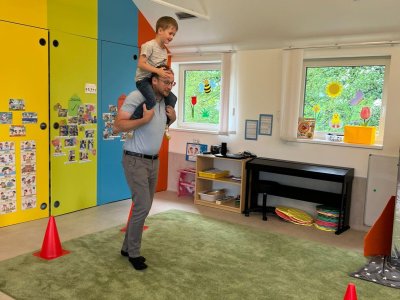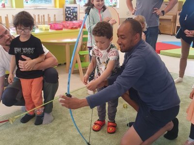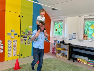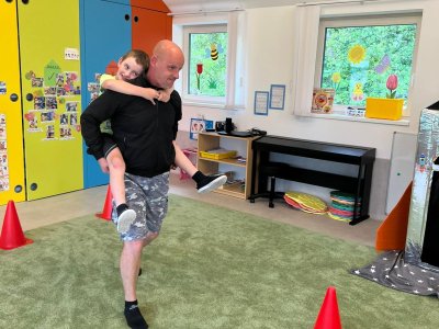Dne 13.6.2023 jsme uspořádali ve školce akci ke Dni otců. Pro děti a tatínky byly připraveny tyto úkoly: zatloukání hřebíků, fotbal, střelba z luku, jízda na koníkovi a jako bonus nás navštívila Markétina dopravní výchova s ukázkou, jak se správně a bezpečně poutat při jízdě v autě. Děti si postupně splněné úkoly odškrtávaly a na závěr předaly svým tatínkům dáreček. :-)