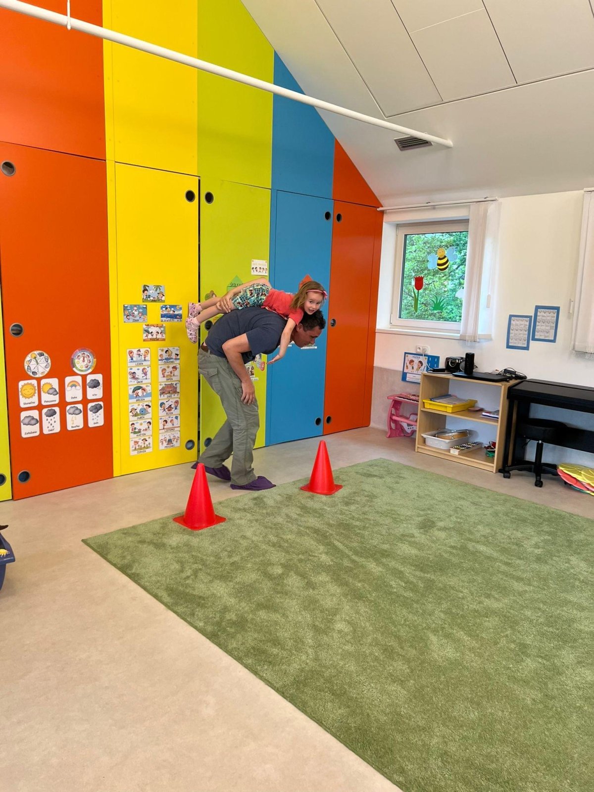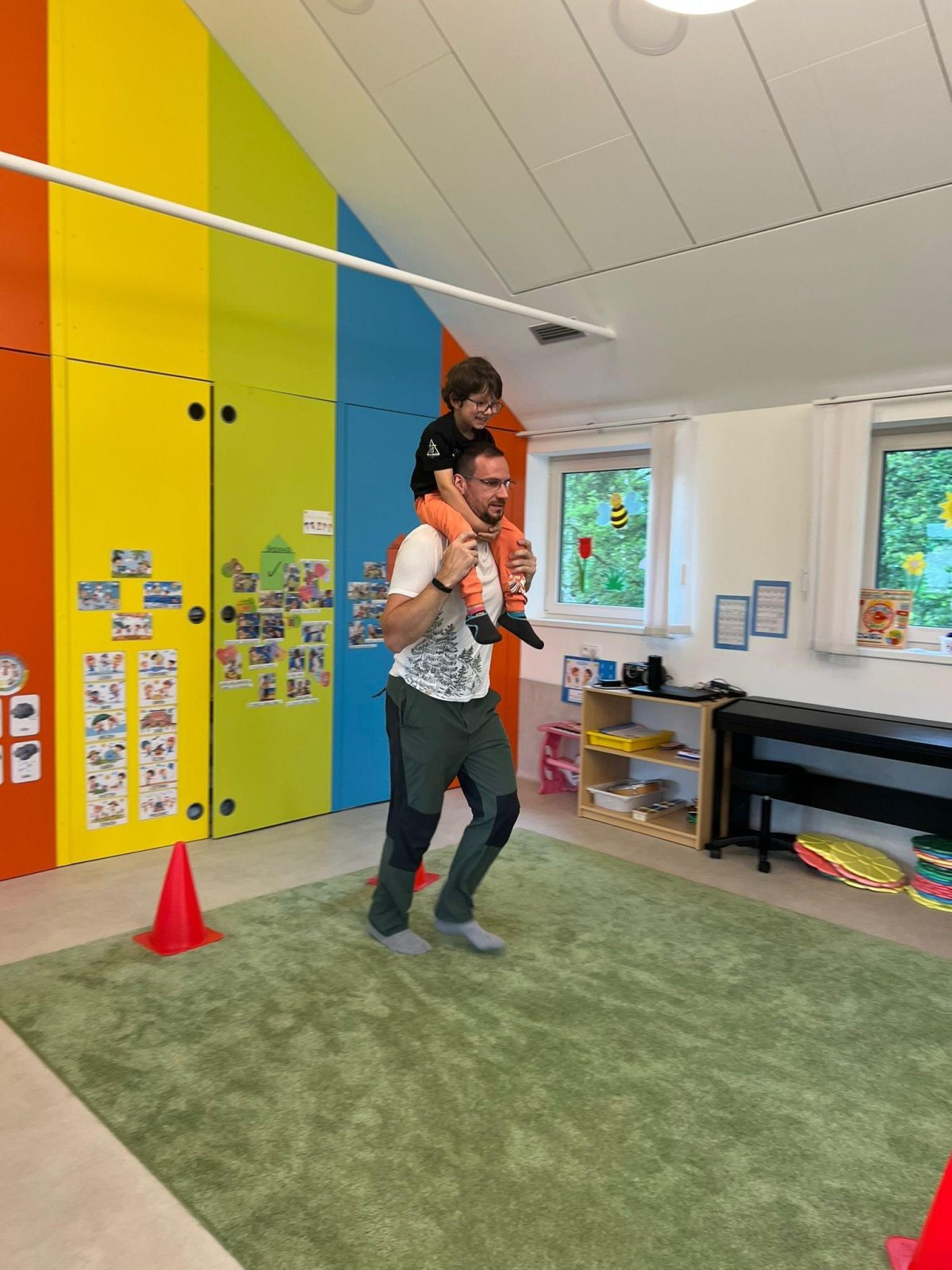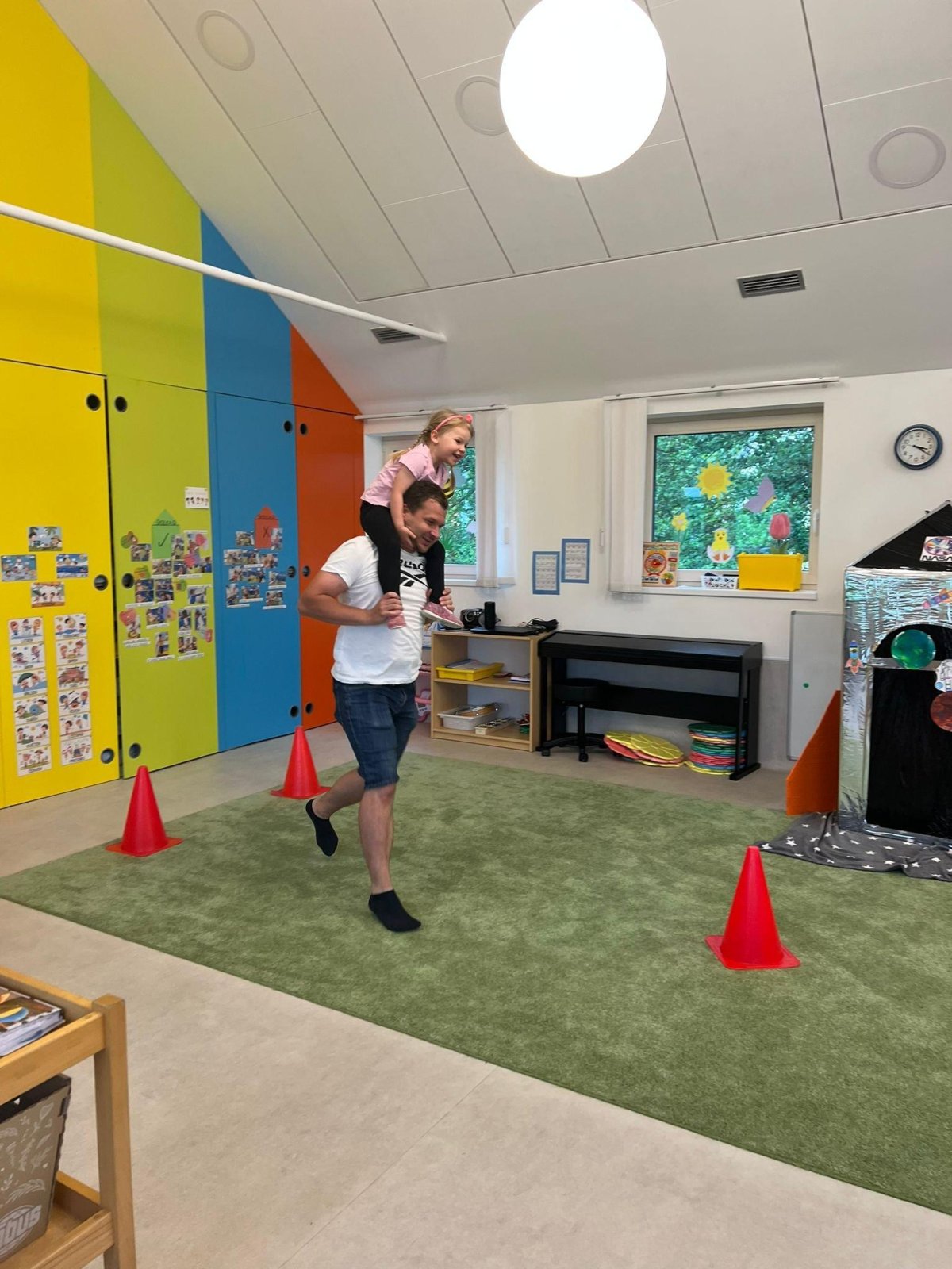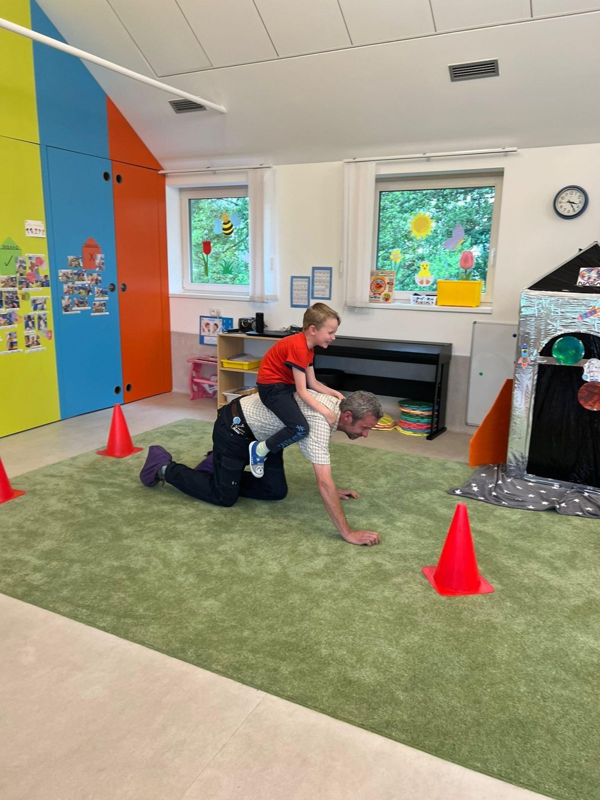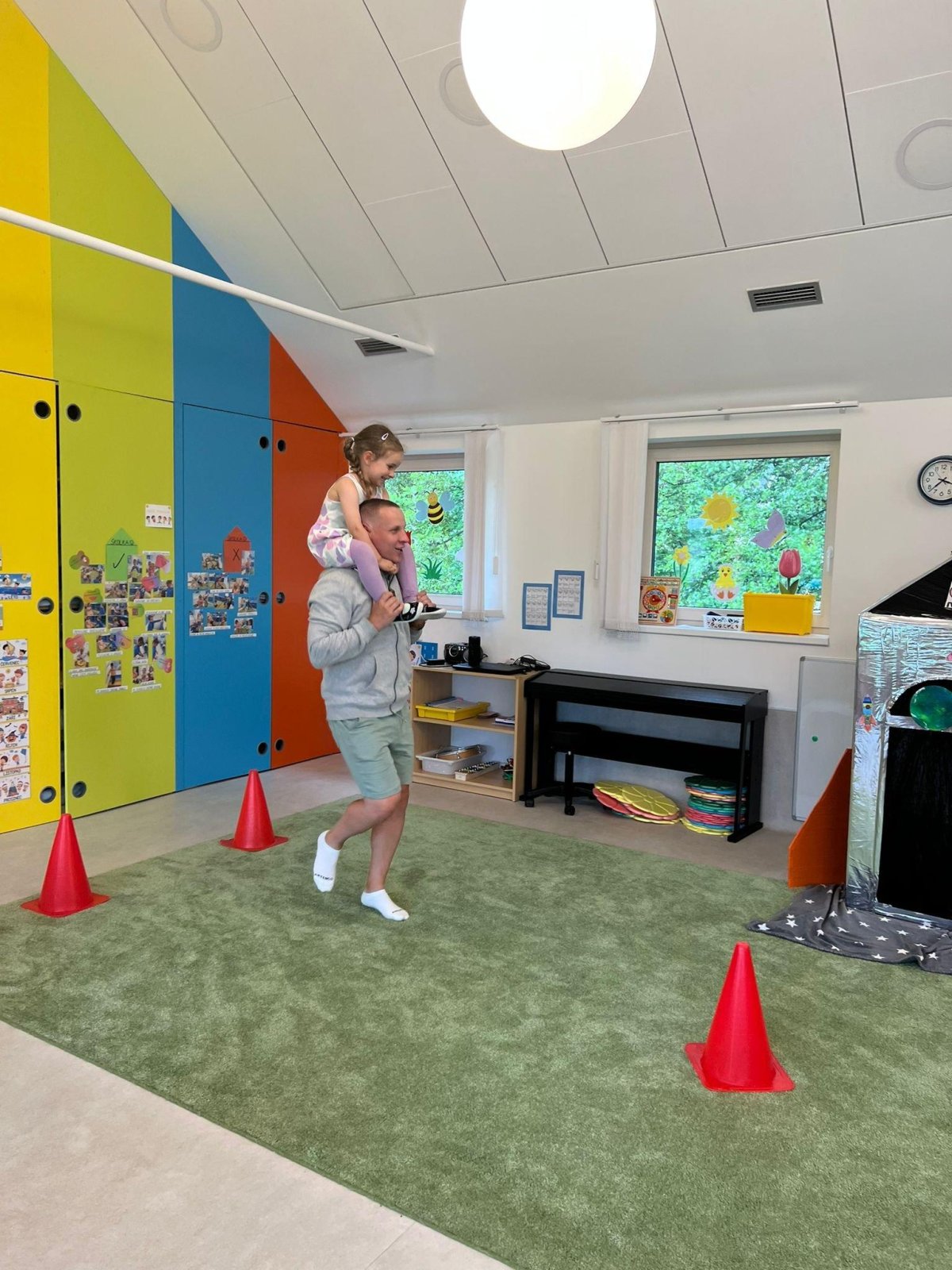 Dne 13.6.2023 jsme uspořádali ve školce akci ke Dni otců. Pro děti a tatínky byly připraveny tyto úkoly: zatloukání hřebíků, fotbal, střelba z luku, jízda na koníkovi a jako bonus nás navštívila Markétina dopravní výchova s ukázkou, jak se správně a bezpečně poutat při jízdě v autě. Děti si postupně splněné úkoly odškrtávaly a na závěr předaly svým tatínkům dáreček. :-)