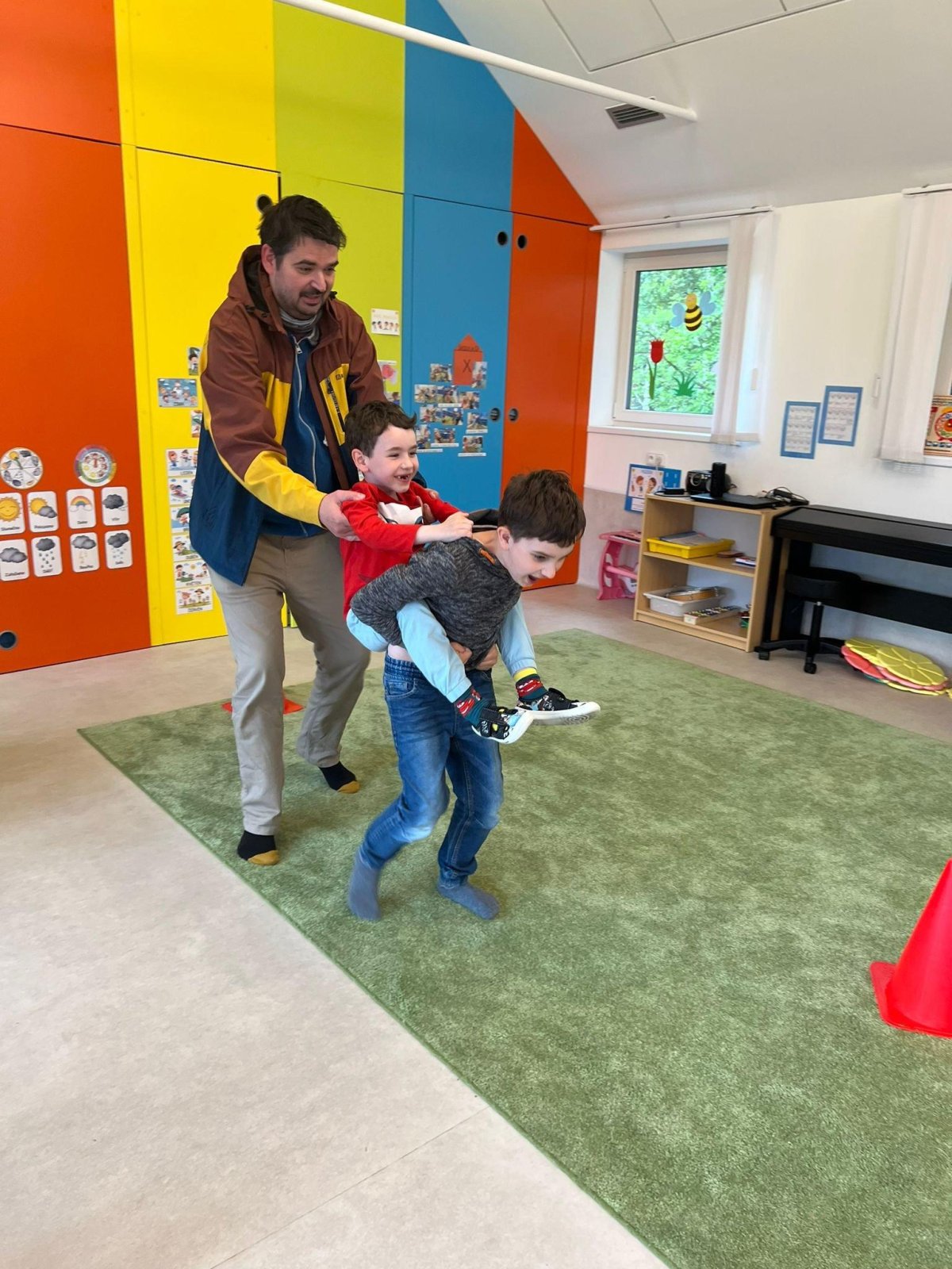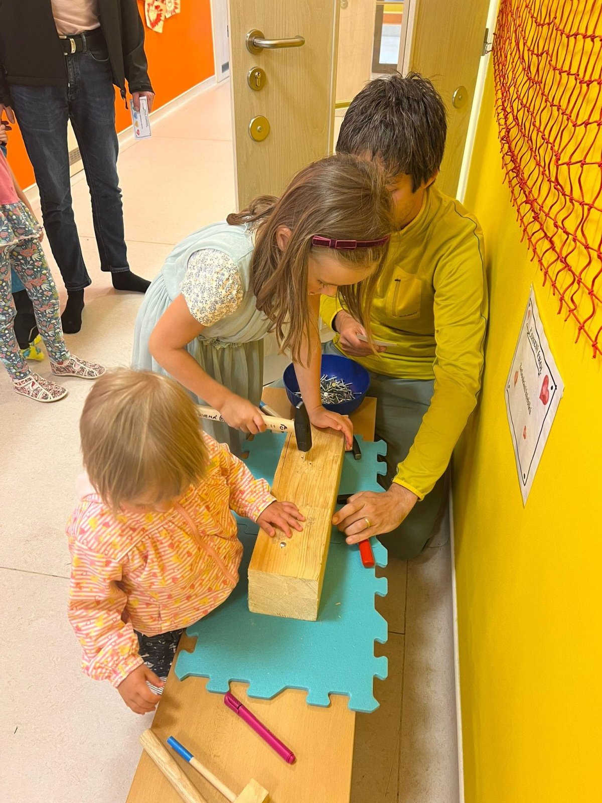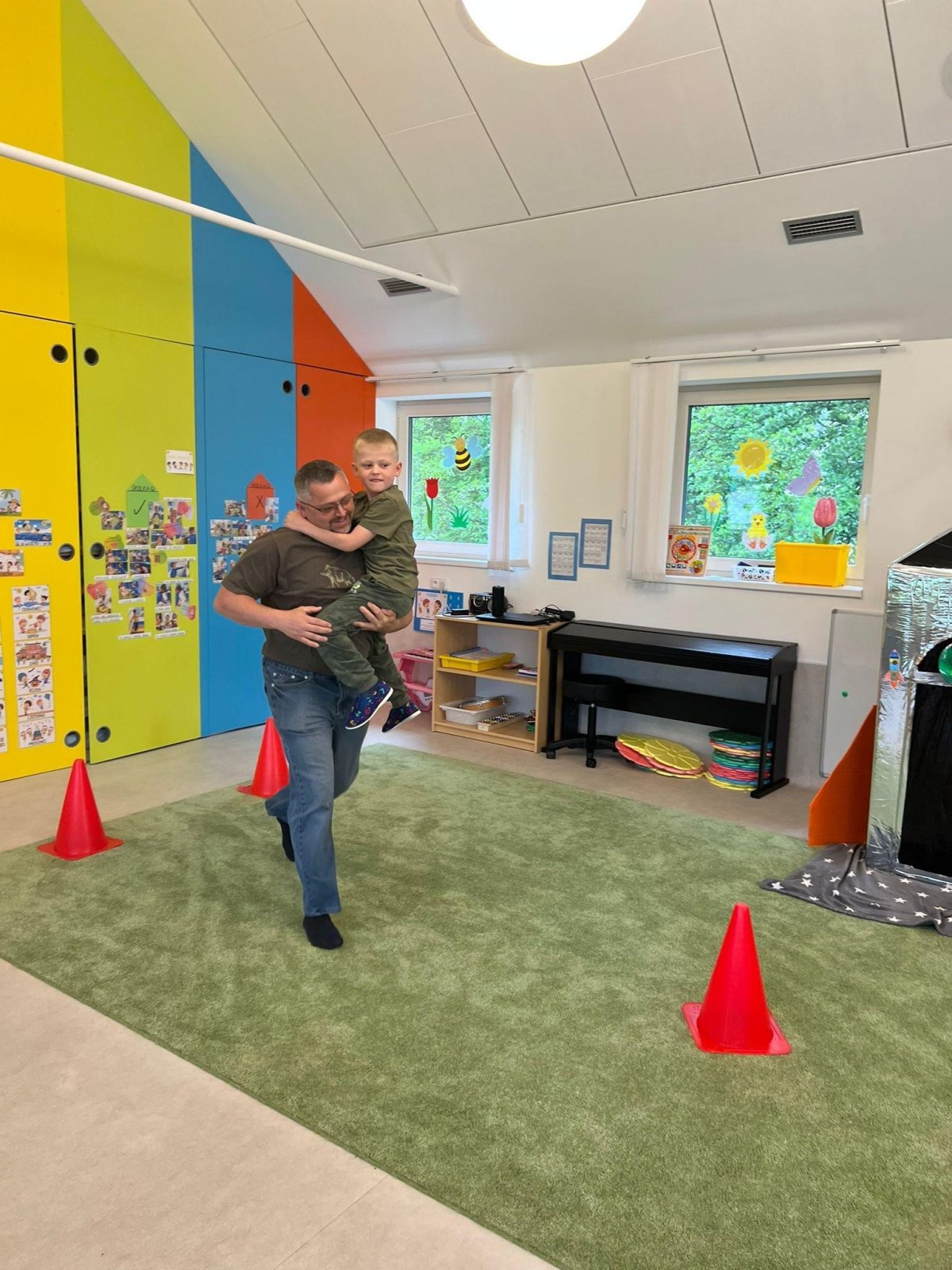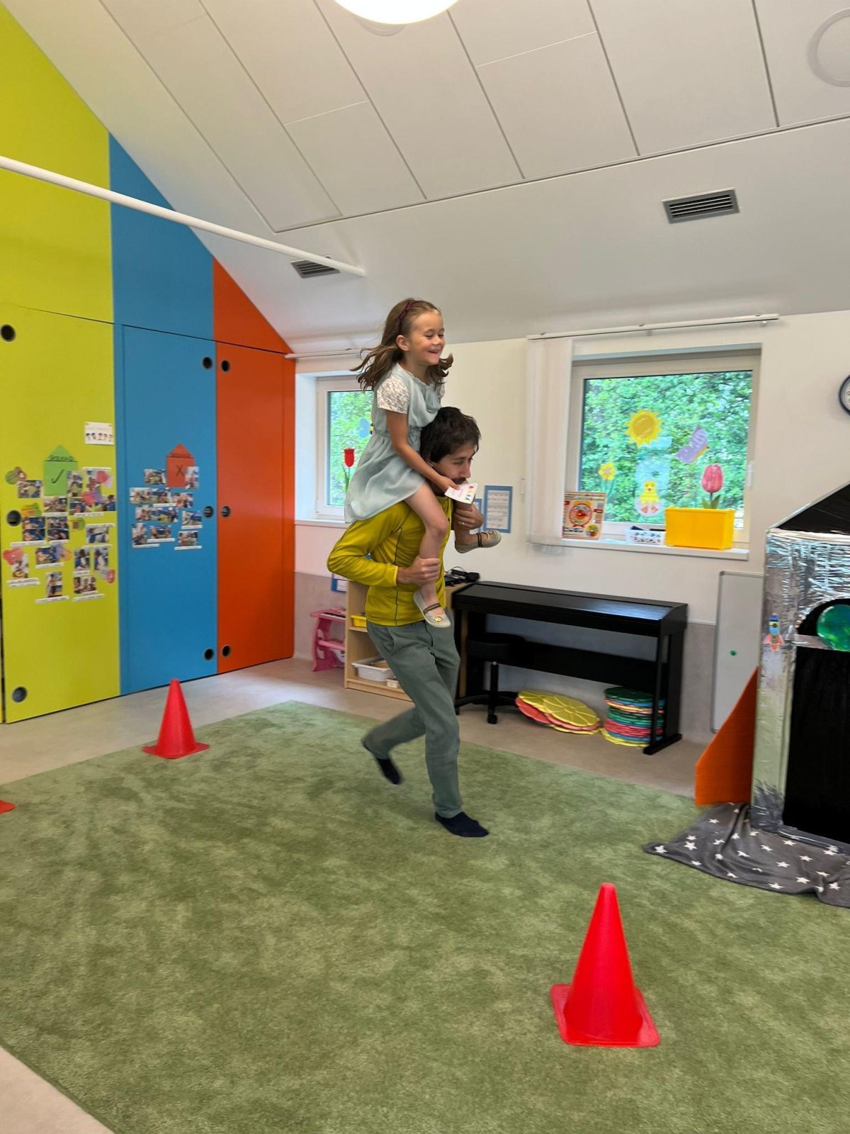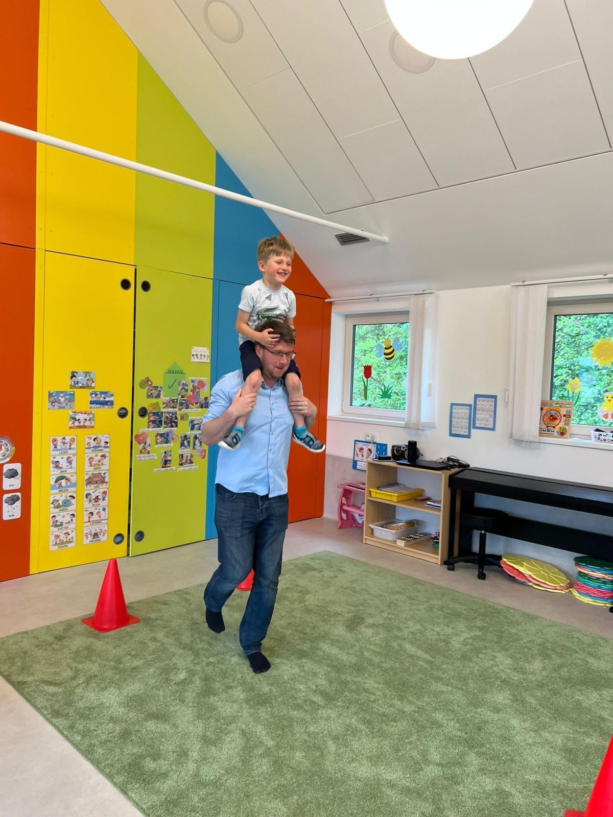 Dne 13.6.2023 jsme uspořádali ve školce akci ke Dni otců. Pro děti a tatínky byly připraveny tyto úkoly: zatloukání hřebíků, fotbal, střelba z luku, jízda na koníkovi a jako bonus nás navštívila Markétina dopravní výchova s ukázkou, jak se správně a bezpečně poutat při jízdě v autě. Děti si postupně splněné úkoly odškrtávaly a na závěr předaly svým tatínkům dáreček. :-)