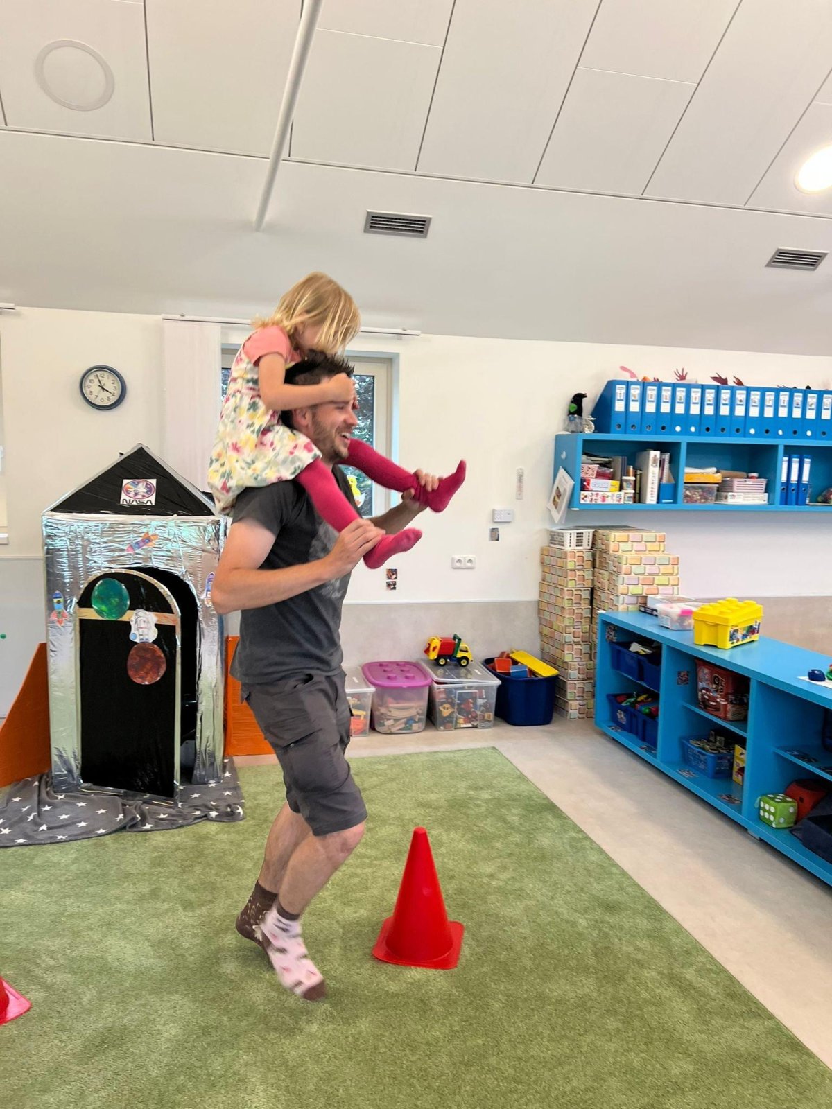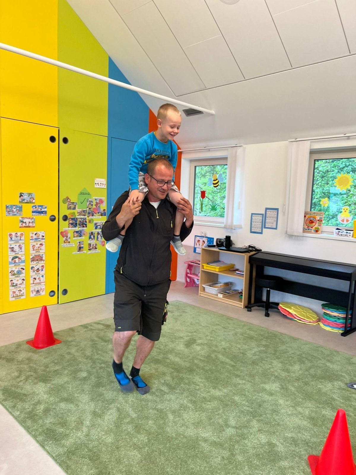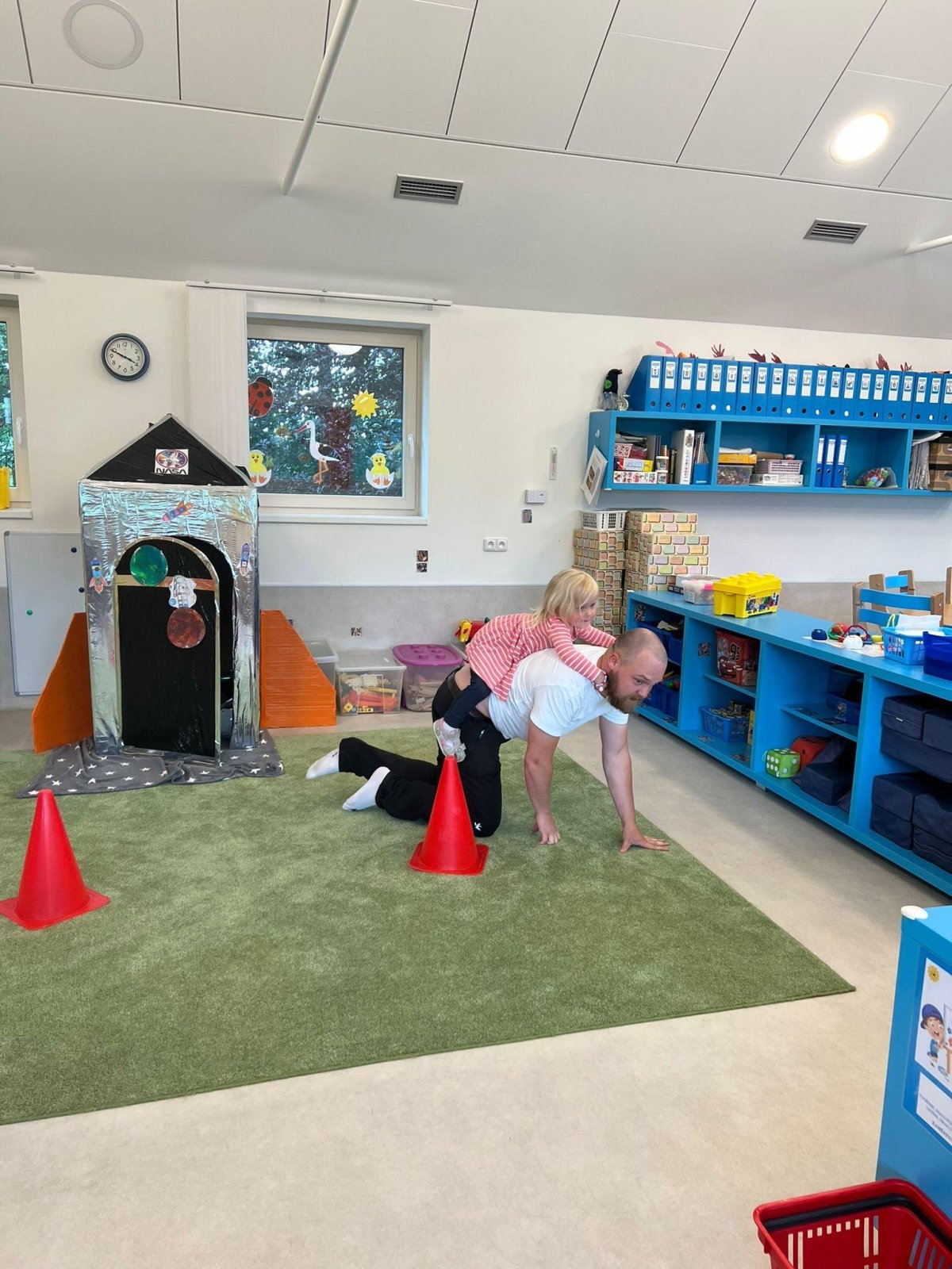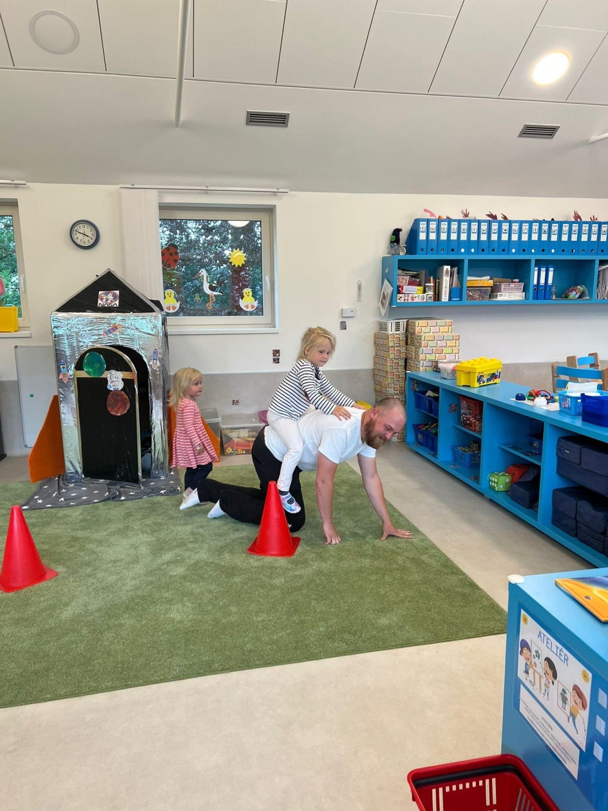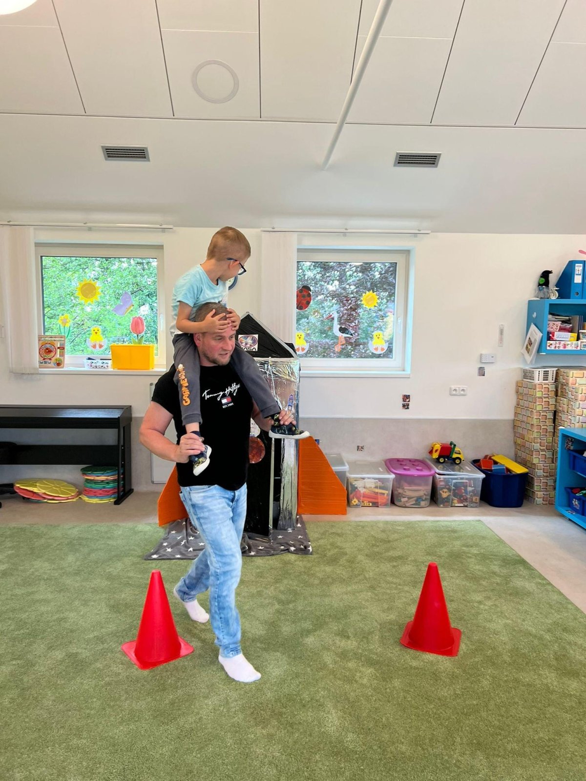 Dne 13.6.2023 jsme uspořádali ve školce akci ke Dni otců. Pro děti a tatínky byly připraveny tyto úkoly: zatloukání hřebíků, fotbal, střelba z luku, jízda na koníkovi a jako bonus nás navštívila Markétina dopravní výchova s ukázkou, jak se správně a bezpečně poutat při jízdě v autě. Děti si postupně splněné úkoly odškrtávaly a na závěr předaly svým tatínkům dáreček. :-)