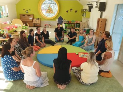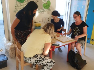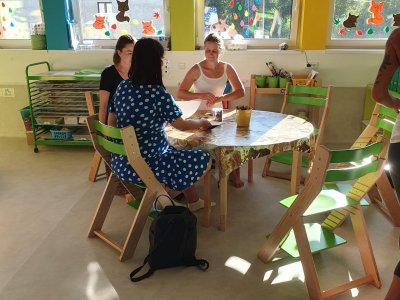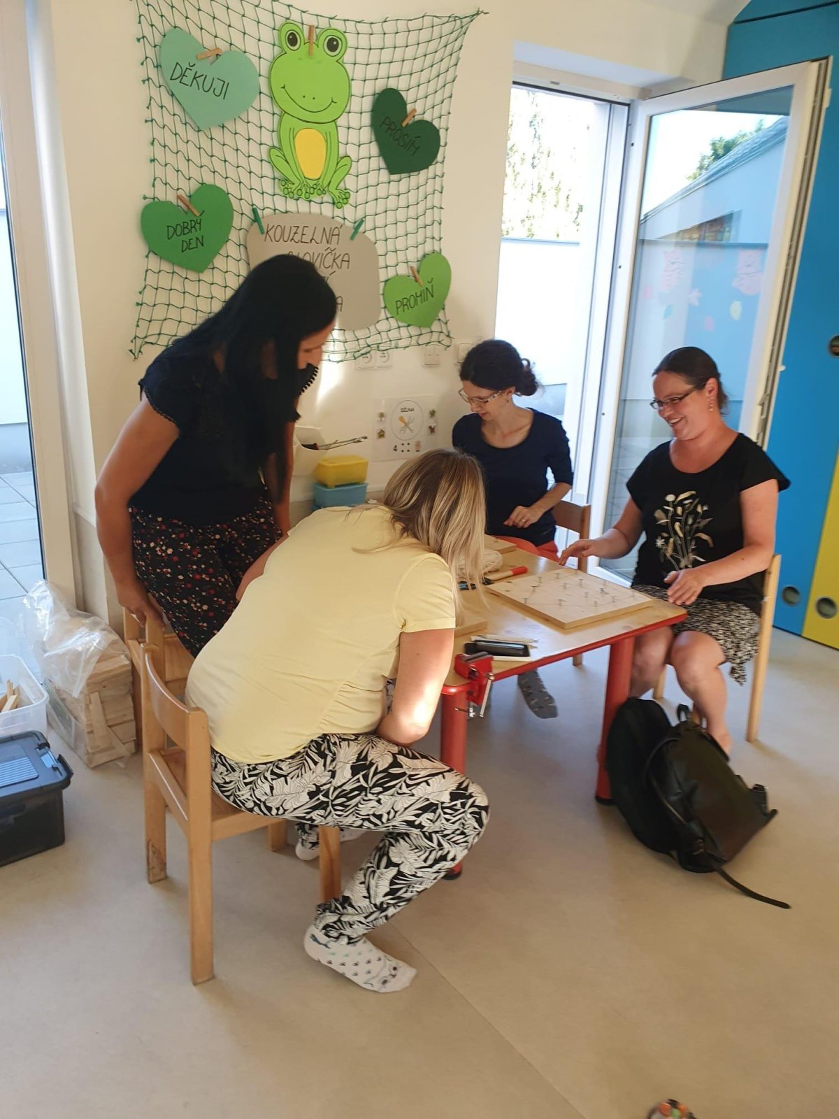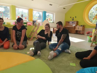 Dnes jsme s rodiči "začali společně "....po třídních schůzkách si rodiče mohli vyzkoušet, jak to u nás ve školce probíhá. Nejprve je čekal odpolední (ranní) úkol, poté jsme se sešli v kroužku, kde jsme se přivítali, pozdravili a blíže seznámili. Po představení činností v jednotlivých centrech aktivit se rodiče rozdělili a celý časový prostor využili k vyrábění, muzicírovaní, objevování a stavéní. Na závěr jsme si vše zhodnotili v kroužku, někteří rodiče s námi sdíleli své pocity z odvedené práce. Všem moc děkujeme a vážíme si toho, jak jste šli do všeho naplno a nic Vás neodradilo. Děkujeme a budeme se těšit na další společná setkání.