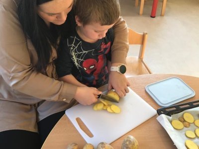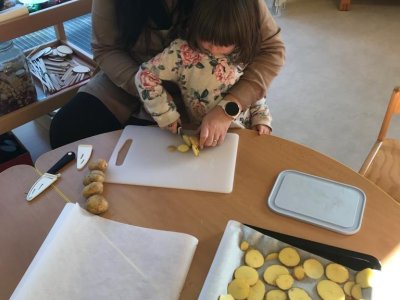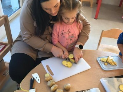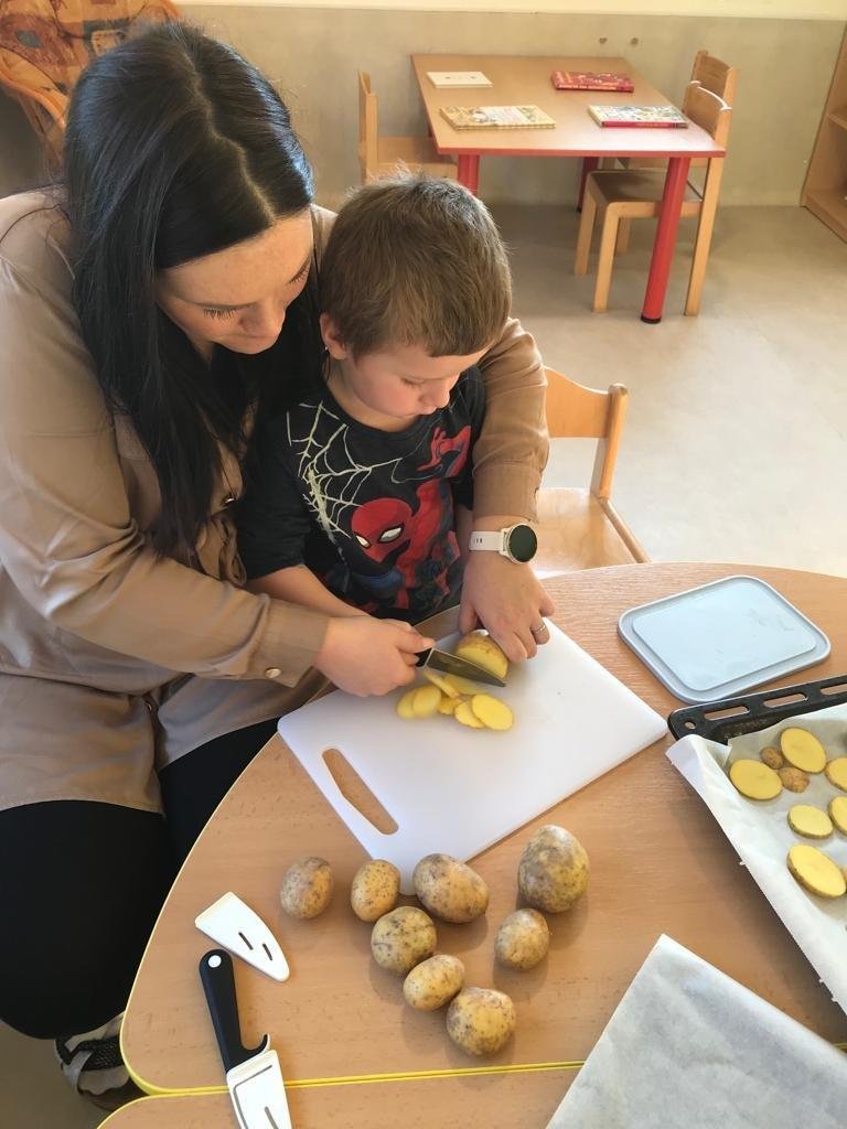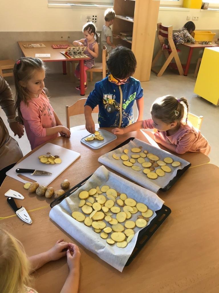 V rámci tématu, kdy si povídáme o zelenině jsme si s dětmi upekli zdravé chipsy :)