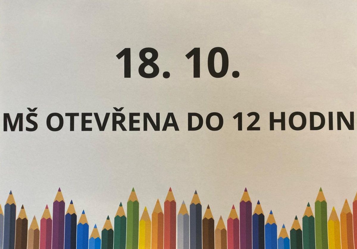 DNE 18.10.2024 JE PROVOZ MŠ OMEZEN POUZE DO 12:00 HODIN. DĚKUJEME