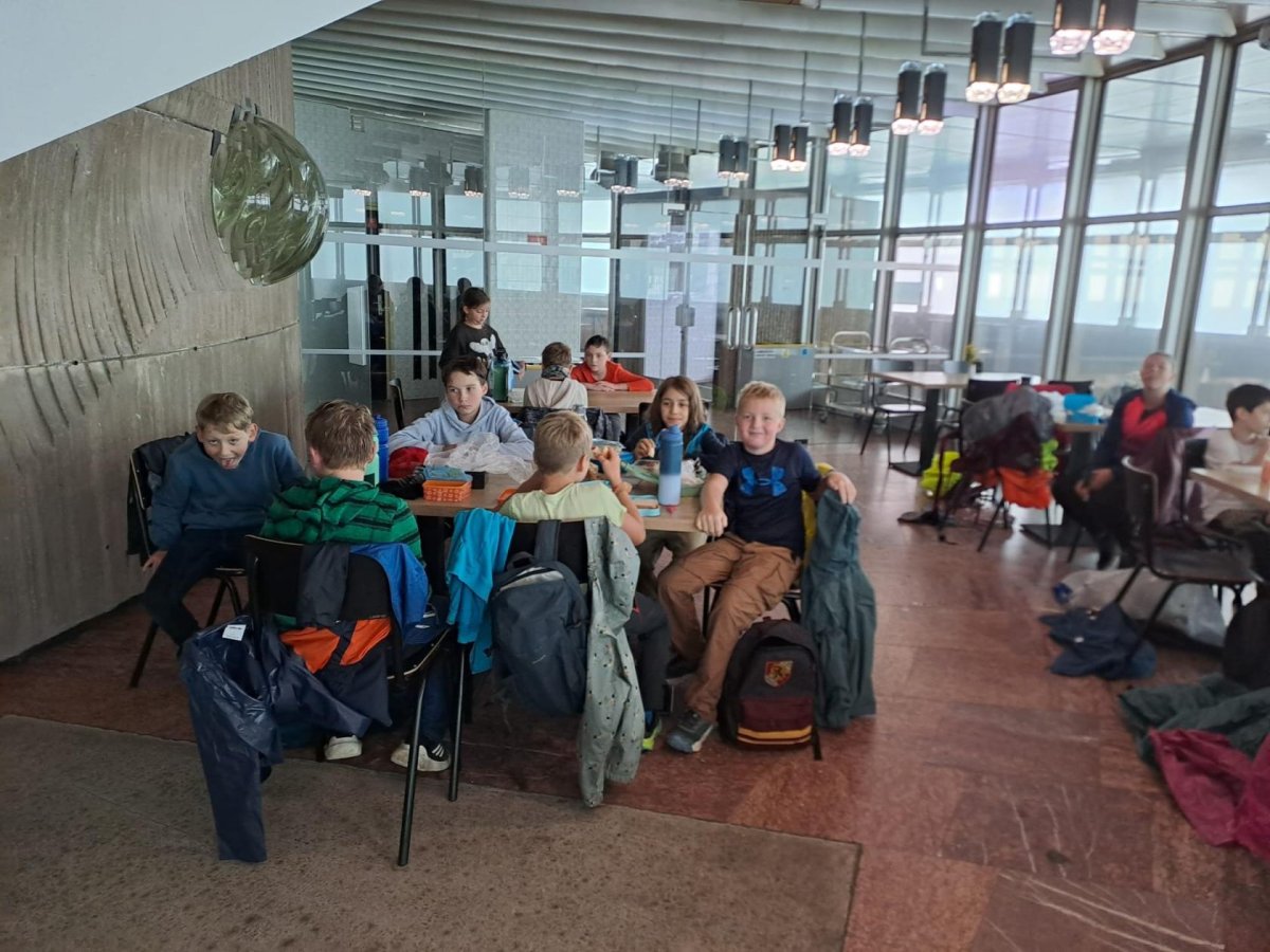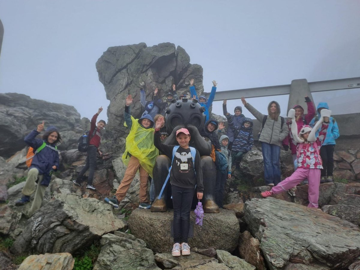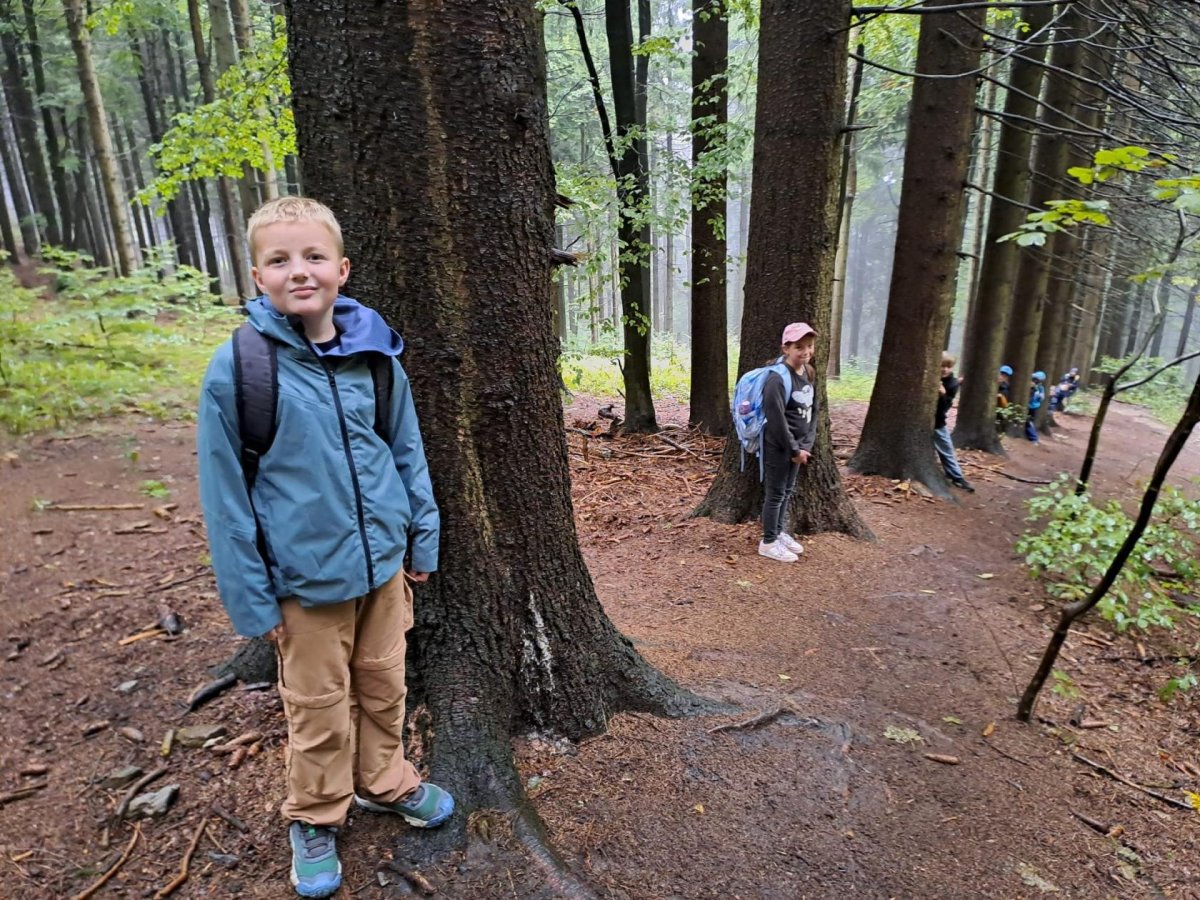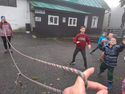 Předpověď nebyla úplně vlídná a meteoradar se měnil každou chvíli. V průběhu dopoledne střídavě pršelo více, méně anebo vůbec. Dobýt vrchol Ještědu jsme se rozhodli metodou/cestou "rychlá smrt" - tudíž pod lany. Viděli jsme svou trasu asi jen prvních 100 metrů, pak se vše zahalilo do mlhy a Ještěd jsme spatřili, až když jsme byli těsně u něho. I přes nepřízeň počasí jsme zvládli utratit kapesné za magnetky, pamětní mince a tužky. Když jsme v půl dvanácté vylezli ven z útulného bezvětří a tepla vysílače, neviděli jsme téměř nic a k tomu foukalo. Ani na Pláních se viditelnost nezlepšila, a tak hra jménem "Letadla v mlze" měla opravdu autentickou kulisu. Po svačině jsme ji ještě zahráli ringo, a pak už svištěli dolů na tramvaj. Když jsme přijížděli do Machnína, krásně svítilo sluníčko. Jestli se to nemohlo otočit?!? Nemohlo! Takhle máme důvod se vyškrábat nahoru i za hezkého počasí, abychom vyzkoušeli cestu číslo 2 a konečně se mohli rozhlédnout po kraji :-).