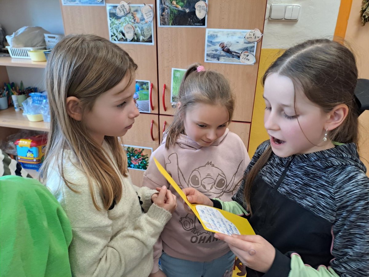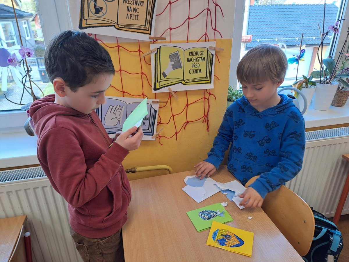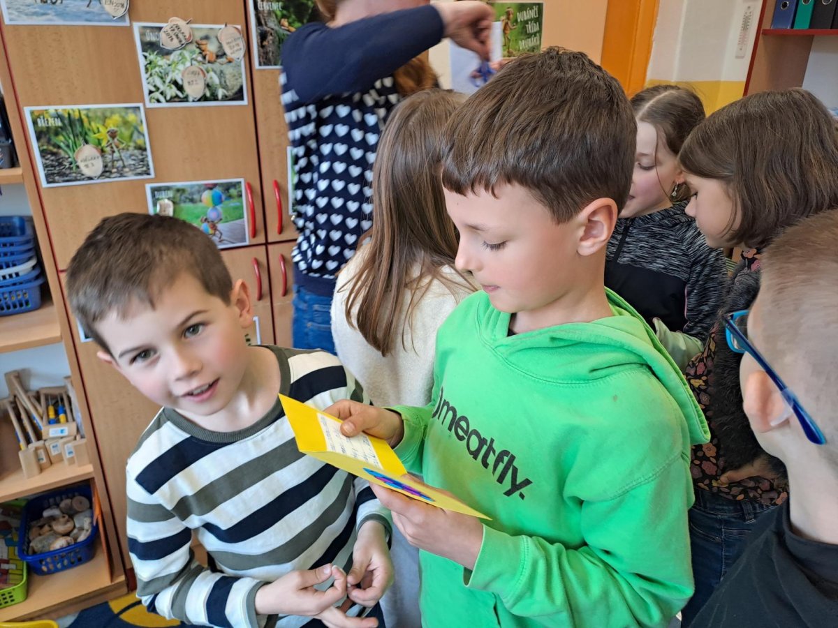 Ta nejhezčí část nás však čekala na konci. Když k nám dorazily velikonoční pozdravy od našich kamarádů, ve třídě zavládlo obrovské nadšení. Bylo krásné sledovat, s jakým zájmem si děti prohlížely barevná díla ostatních a s jakou radostí četly vzkazy, které jim přišly. Tato spolupráce nám znovu ukázala, že i malý kousek papíru dokáže vykouzlit velký úsměv na tváři.