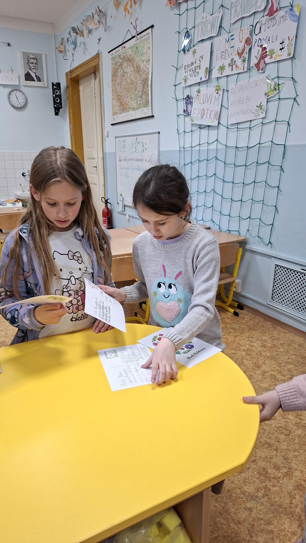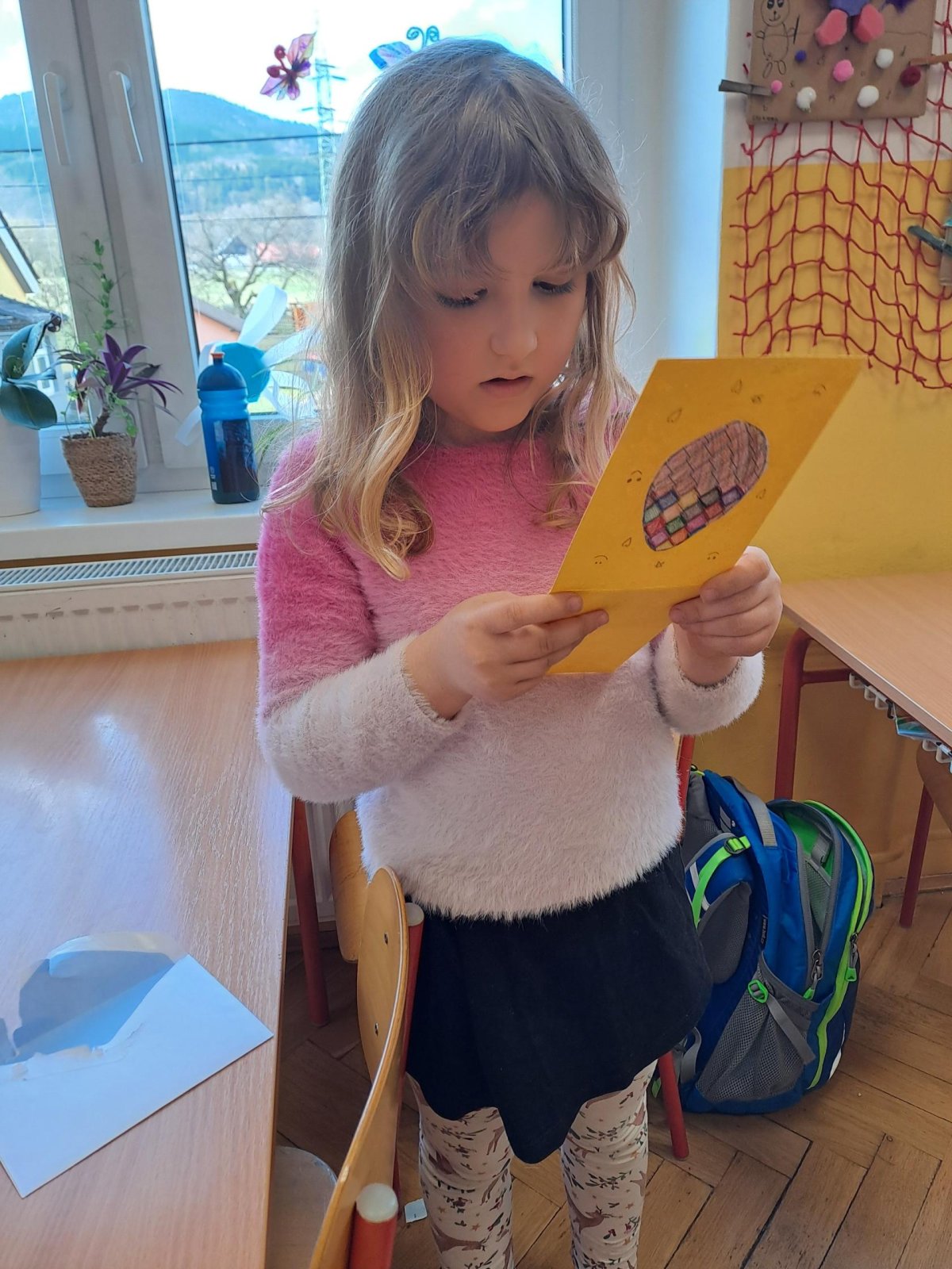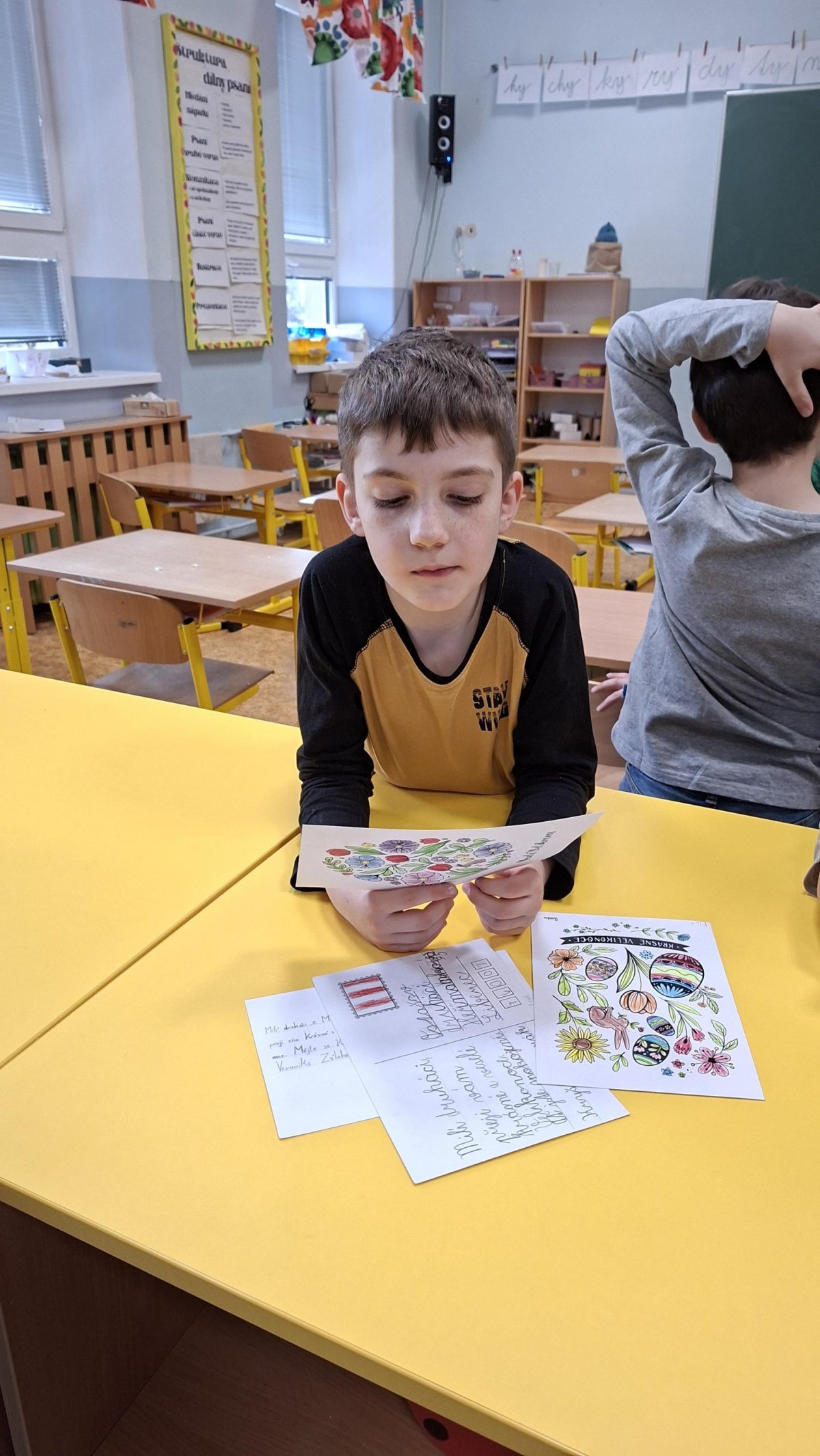 Ta nejhezčí část nás však čekala na konci. Když k nám dorazily velikonoční pozdravy od našich kamarádů, ve třídě zavládlo obrovské nadšení. Bylo krásné sledovat, s jakým zájmem si děti prohlížely barevná díla ostatních a s jakou radostí četly vzkazy, které jim přišly. Tato spolupráce nám znovu ukázala, že i malý kousek papíru dokáže vykouzlit velký úsměv na tváři.