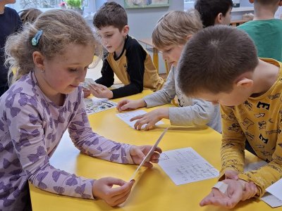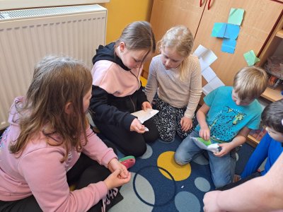 V rámci mezitřídní spolupráce mezi druháky z Ostašova a z Machnína jsme se rozhodli vyměnit si vlastnoručně vyrobené velikonoční pozdravy. Pro děti to byla nejen zábava, ale i velká výzva. Musely si totiž poradit s mnoha úkoly najednou – od pečlivého nadepsání adresy až po samotnou výrobu přáníček a pohlednic.