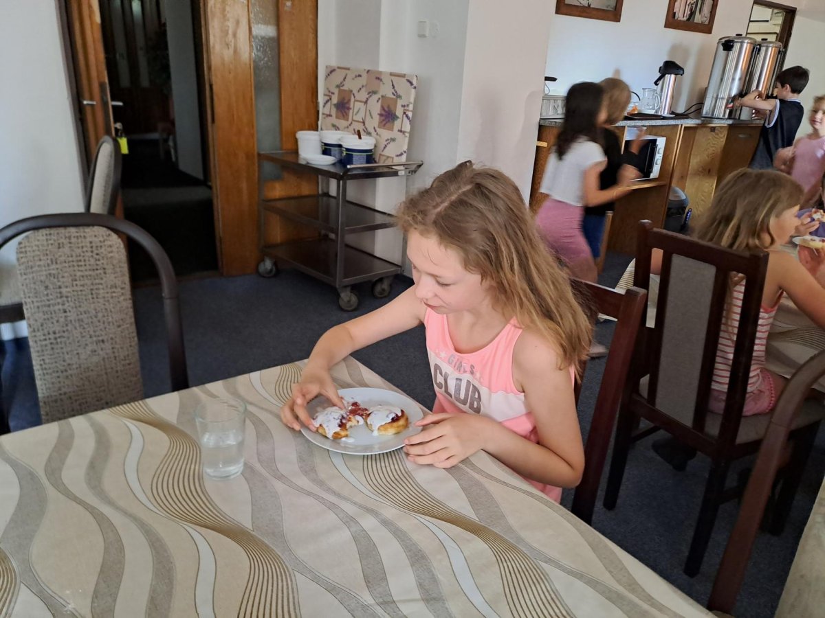 Dnešní den začal překvapením ...sladkým :-). Pan kuchař nelenil, přivstal si a udělal nám ke snídani lívance. Byly skvělé a bylo jich hodně!!! Dalším milým chutným překvapením byly kuřecí nugetky, které byly v obědovém balíčku. Všem se dělaly boule za ušima.