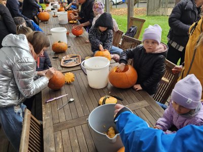 Kdo měl chuť tvořit, mohl vydlabávat dýně nebo si vyrobit vlastního draka. U ohniště se pekly brambory, jablíčka i voňavé buřty a všude kolem zněl smích, povídání a radost ze společného setkání. I když bylo podzimní počasí trochu rozmarné, slavnost se proměnila v příjemné, hřejivé odpoledne plné pohody. Všichni si odnesli spoustu krásných zážitků, na které se bude dlouho vzpomínat. Tak zase brzy na viděnou! Více fotografií zde.
