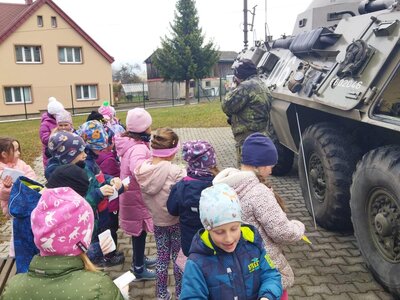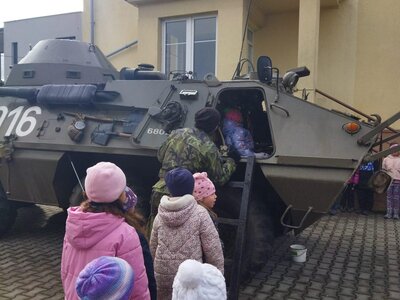 Na naší škole proběhla atraktivní ukázka historické vojenské techniky spojená s představením letního tábora MASH 4077. Žáci mohli zblízka prohlédnout plně funkční a pojízdný obojživelný obrněný transportér OT-64.