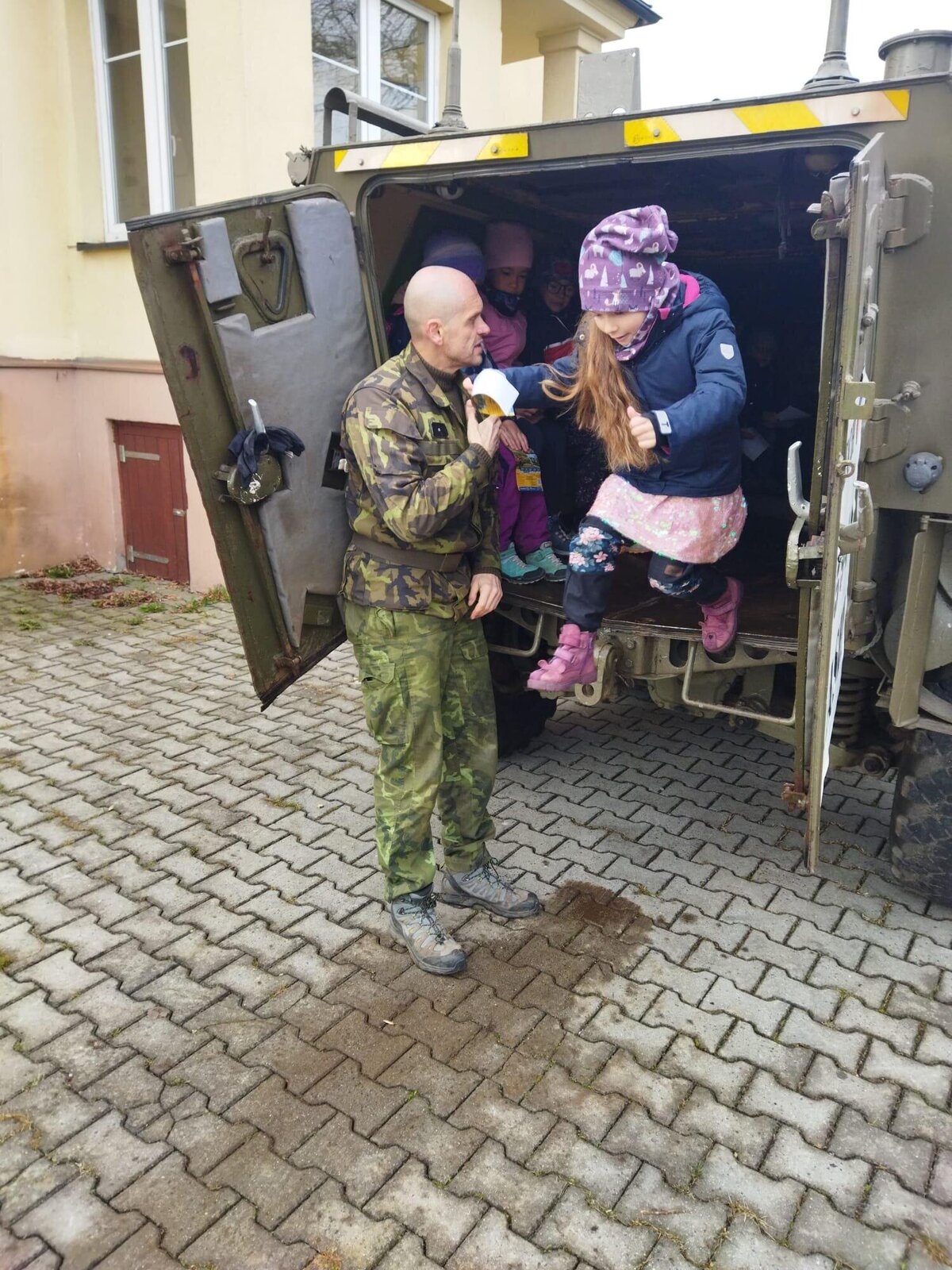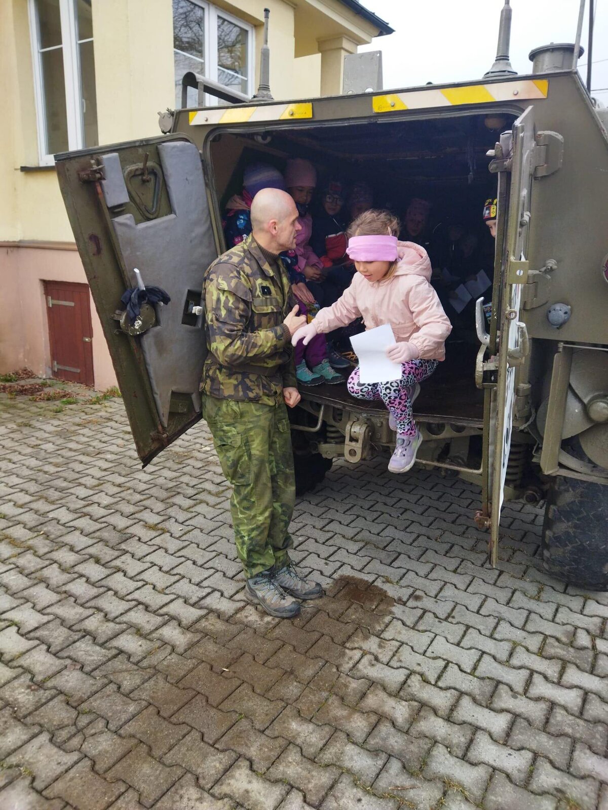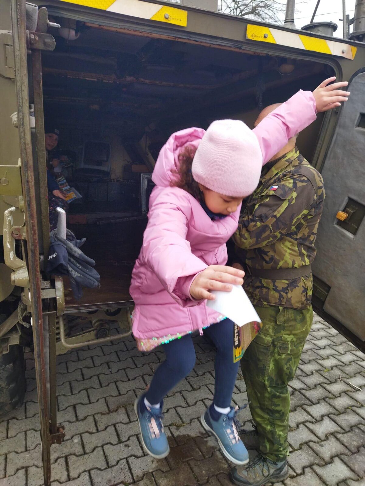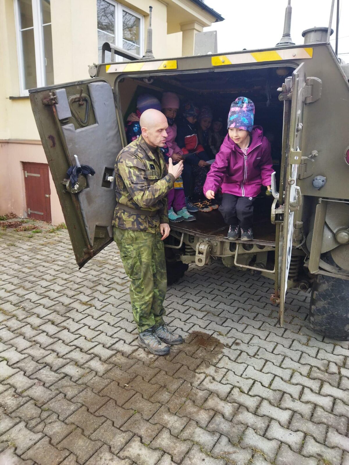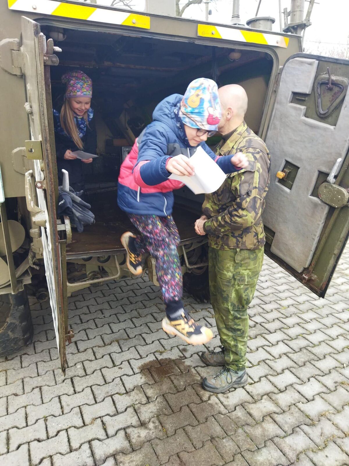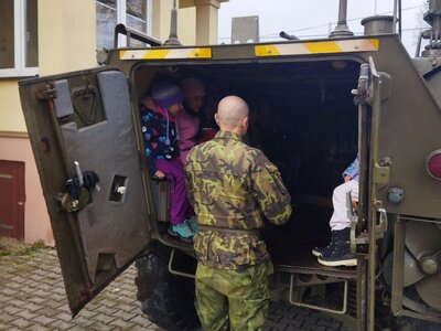 Největší zájem vzbudila možnost nahlédnout přímo do vozidla. Mohli si vyzkoušet místo řidiče i spolujezdce a prozkoumat prostor pro osádku. Velkým lákadlem byla také otočná obrněná věž s nočním periskope. Nechyběla ani autentická zkušenost – děti si mohly vyzkoušet, jaké to je být uvnitř transportéru při jeho uzavření.