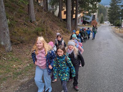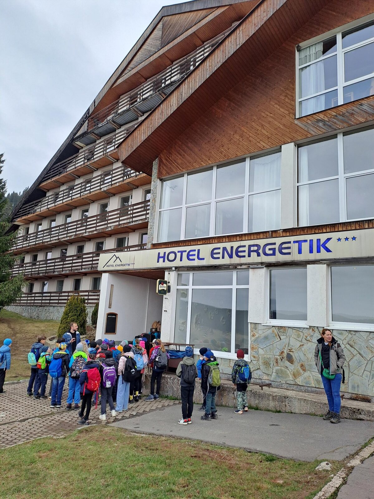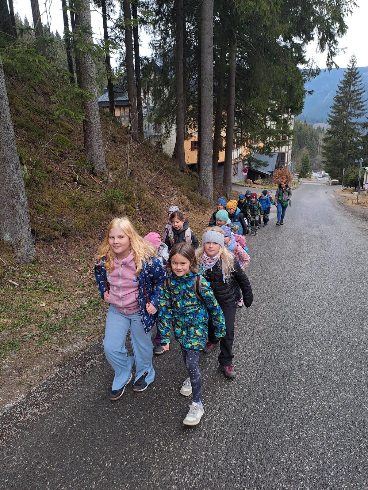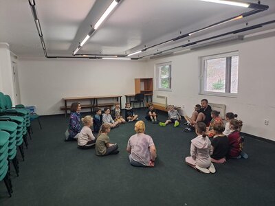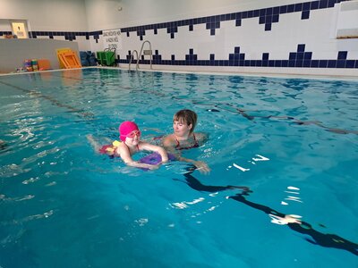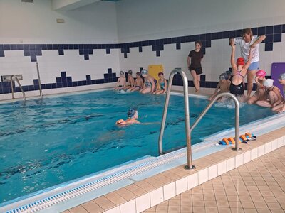 Cesta autobusem nebyla úplně krátká, ale ustály jsme ji s „prázdnými pytlíky“ a k tomu viděli kus severu Čech. Trochu nás zaskočil výšlap strmě vzhůru od parkoviště k hotelu, nicméně byl dobrou rozcvičkou. Také díky němu měly příležitost slehnout svačiny a udělat prostor vskutku vřelému přivítání – řízek s kaší a okurkou (mizeli v nás závratnou rychlostí, takže jejich fotodokumentace chybí!)!!!! Rozdělení pokojů, vybalování, chvíle relax a pak už první lekce v bazénu. Samozřejmě po domluvení nezbytných pravidel, rozcvičce.... Někteří projevili zpočátku z vody trochu respekt nebo nejistotu, v průběhu lekce ale odhazovali pásky a na konci lekce už ve vodě řádili všichni se širokým úsměvem! Trenéři kteří nás mají na starosti, jsou vážně moc prima!
