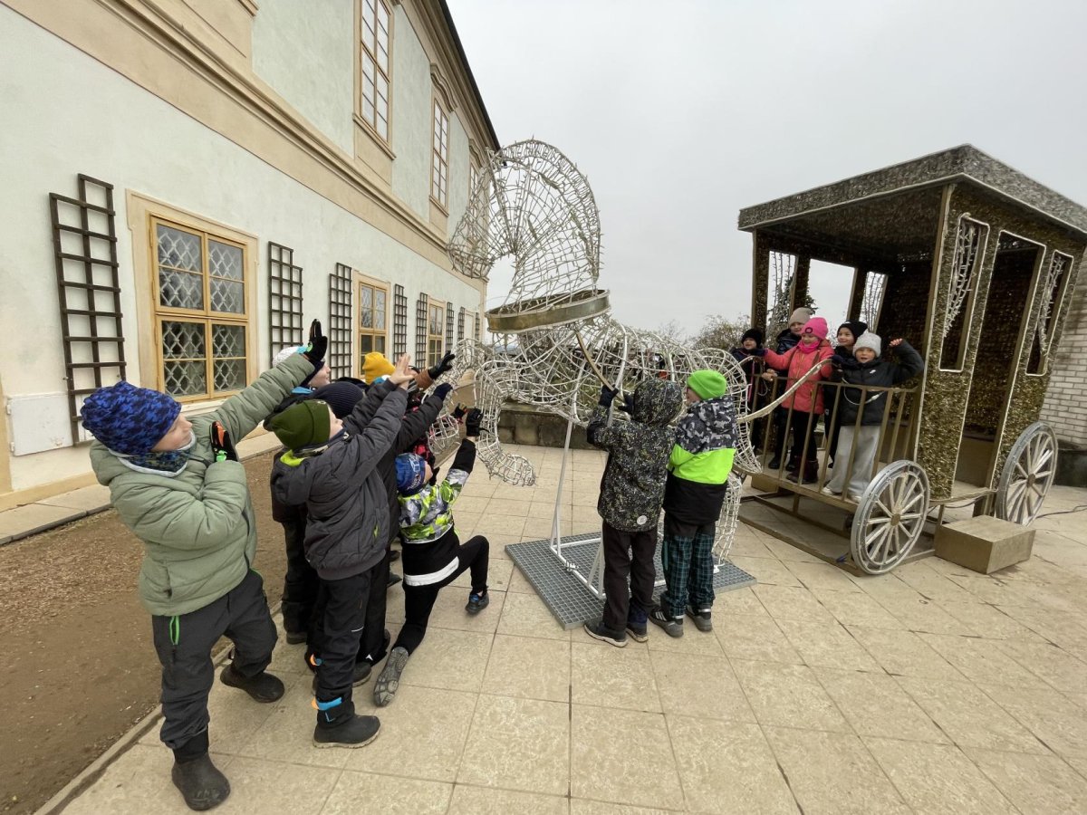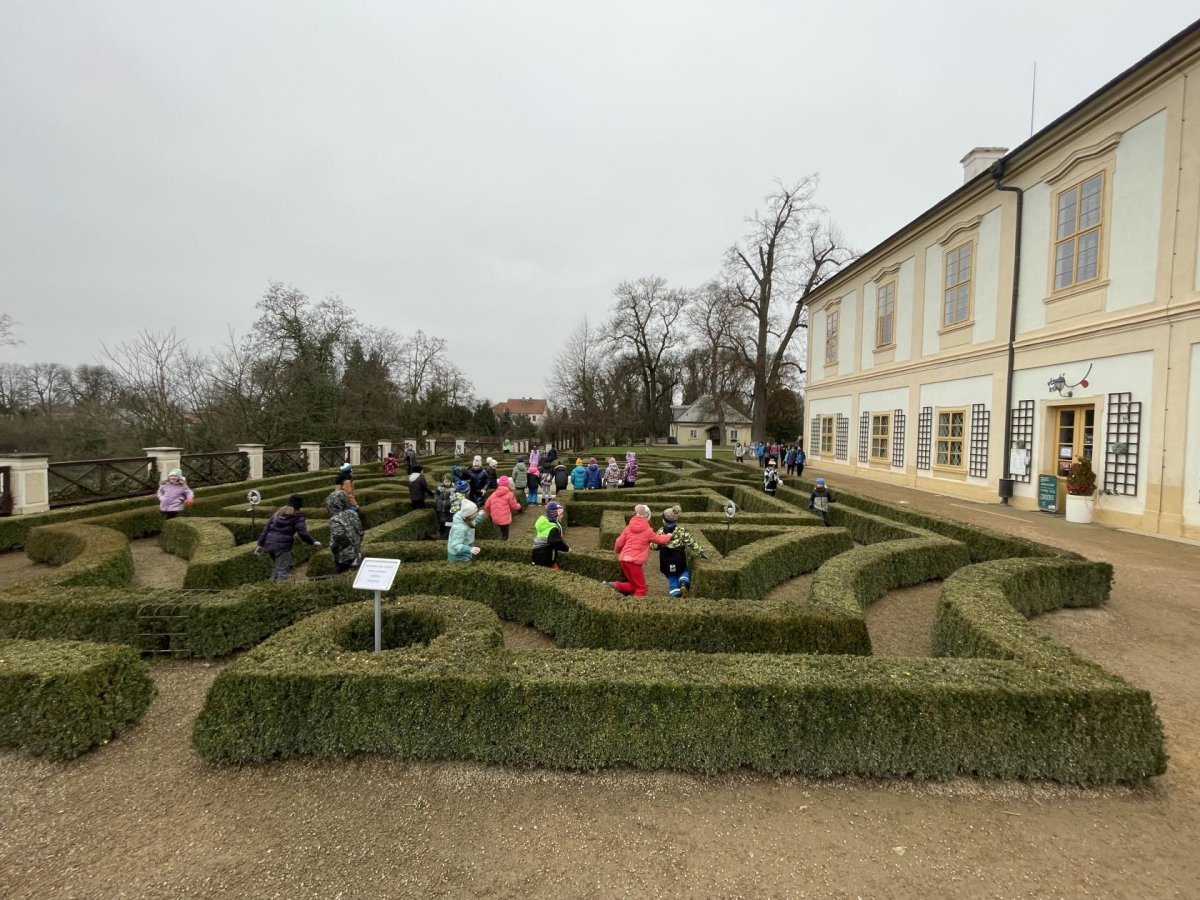 Po prohlídce jsme se přesunuli do venkovních prostor, kde jsme si užili krásné vánoční dekorace a procházku zámeckým parkem. Velkým zážitkem byly také labyrinty různých druhů, které děti s nadšením procházely a objevovaly.