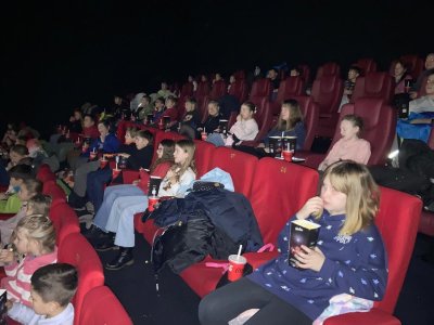 V posledních týdnech jsme si společně užili dvě kulturní akce. Po rozdání vysvědčení jsme vyrazili do kina jako odměnu za naši půlroční práci. Zhlédli jsme film Vynálezce. Přestože měl zajímavý námět i pěkné výtvarné zpracování, tentokrát nás příběh příliš nezaujal. I tak jsme si ale společný čas v kině užili a ocenili možnost strávit odpoledne trochu jinak než ve školních lavicích.