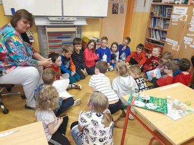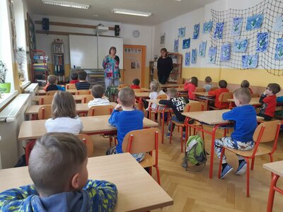 Dnes jsme se byli poprvé podívat na základní školu. Seznámili jsme se s paní učitelkou a paní vychovatelkou budoucich prvňáčků. Zahráli jsme si hry, zkusili první úkoly a zazpívali jsme si. Těšíme se opět za týden...hurá do školy!
